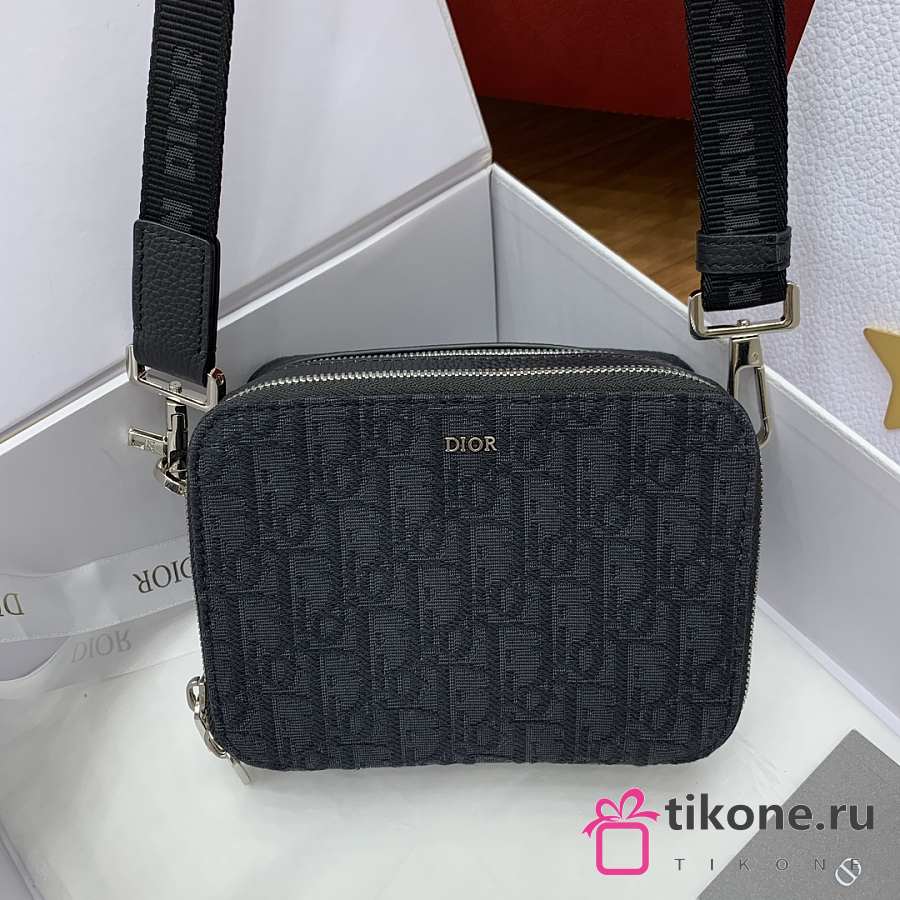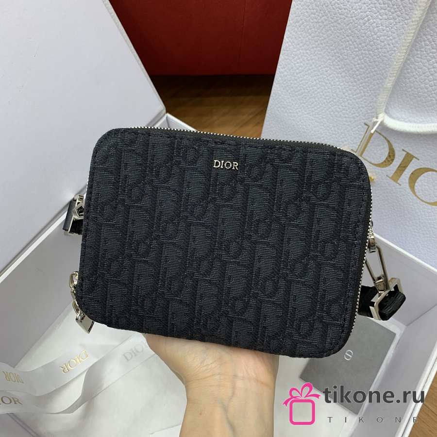 Dior Zipped Pouch with Strap Black Dior Oblique Jacquard - 17x12.5x6cm