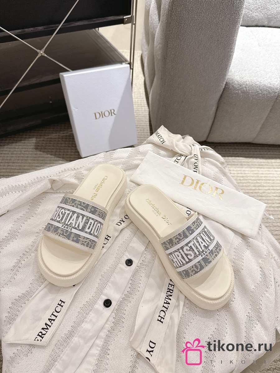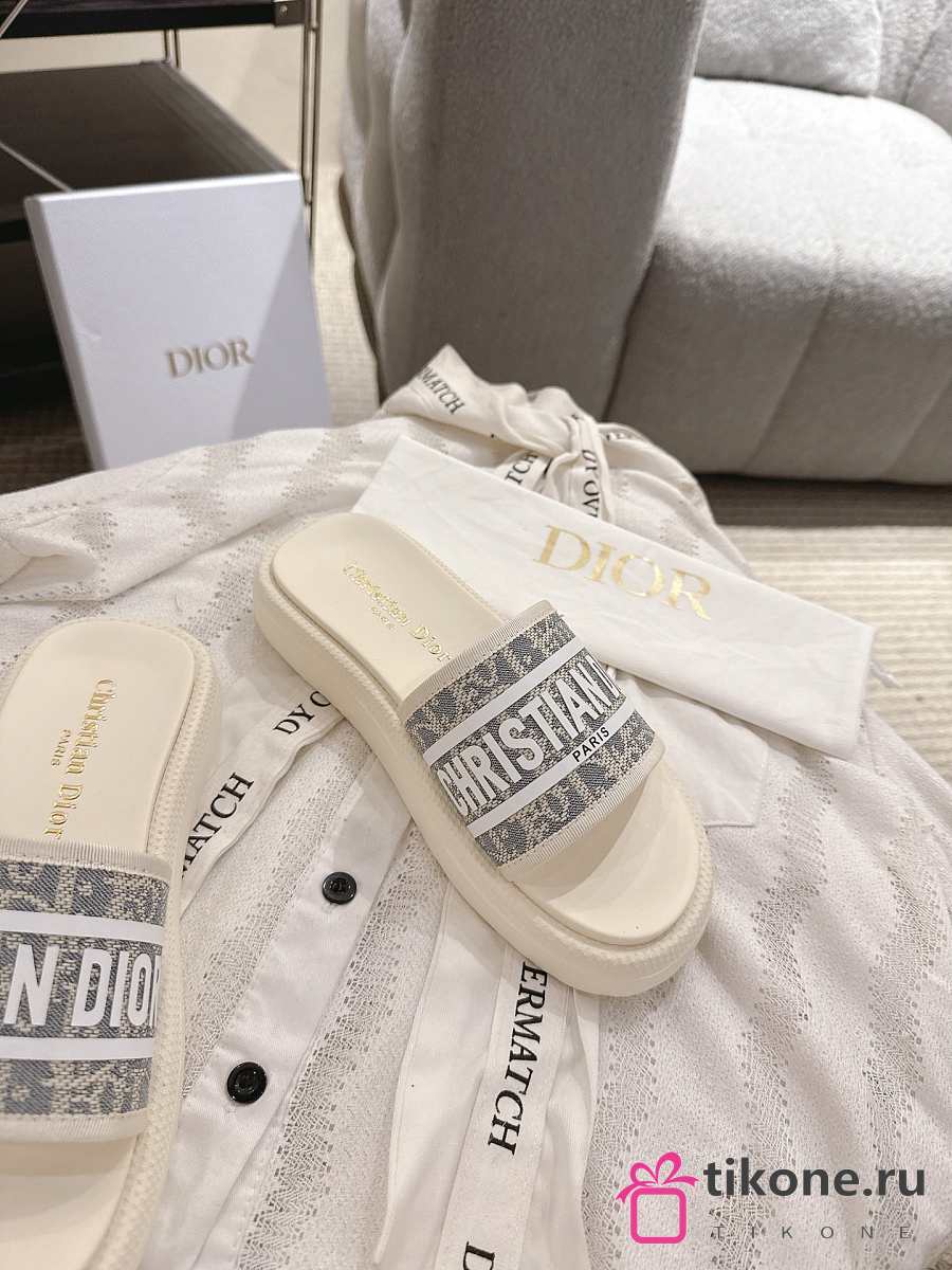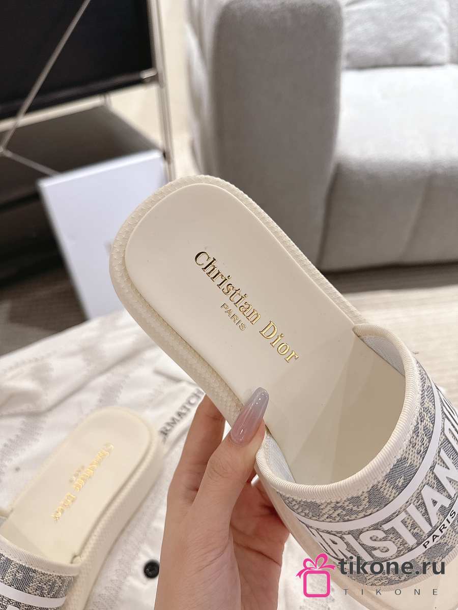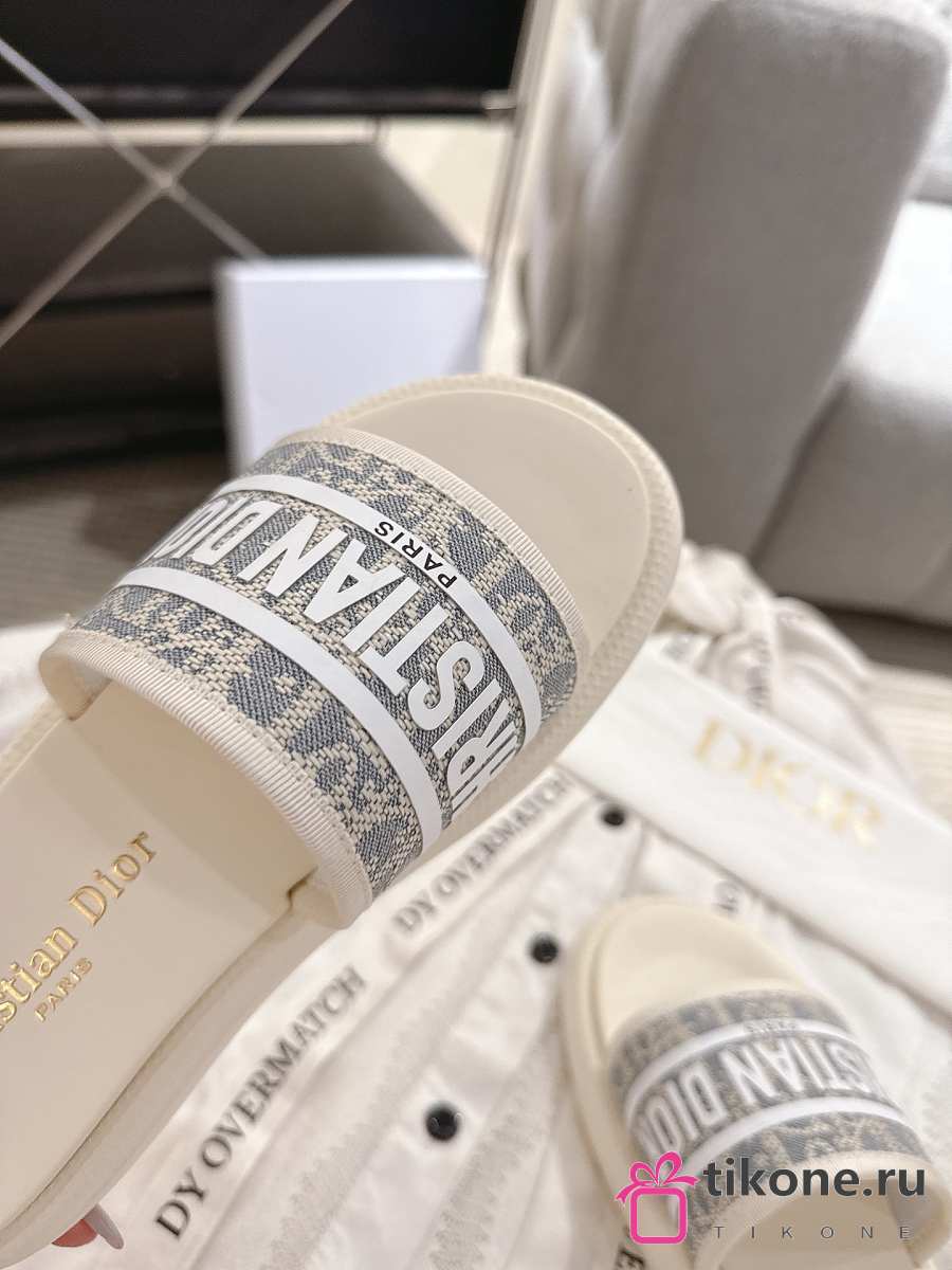 Dioriviera Dway Slide Chambray Blue Jacquard with Ecru Raffia Dior Oblique Motif and White Rubber