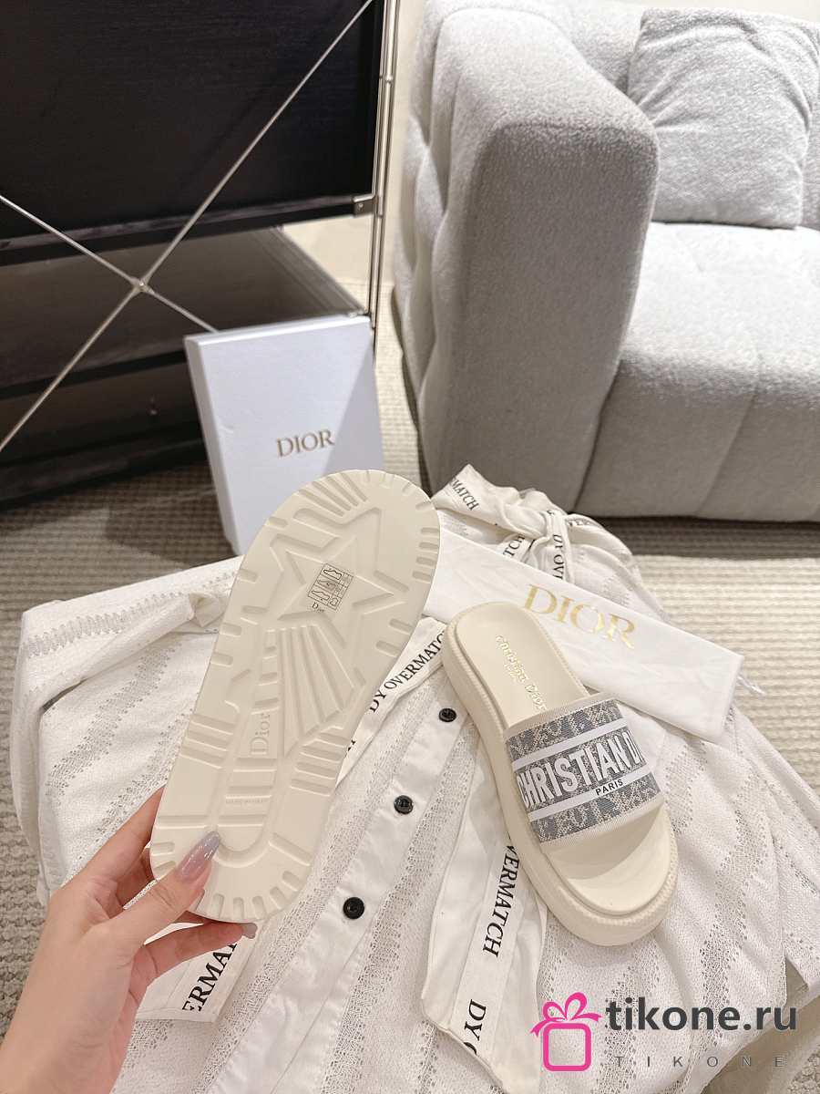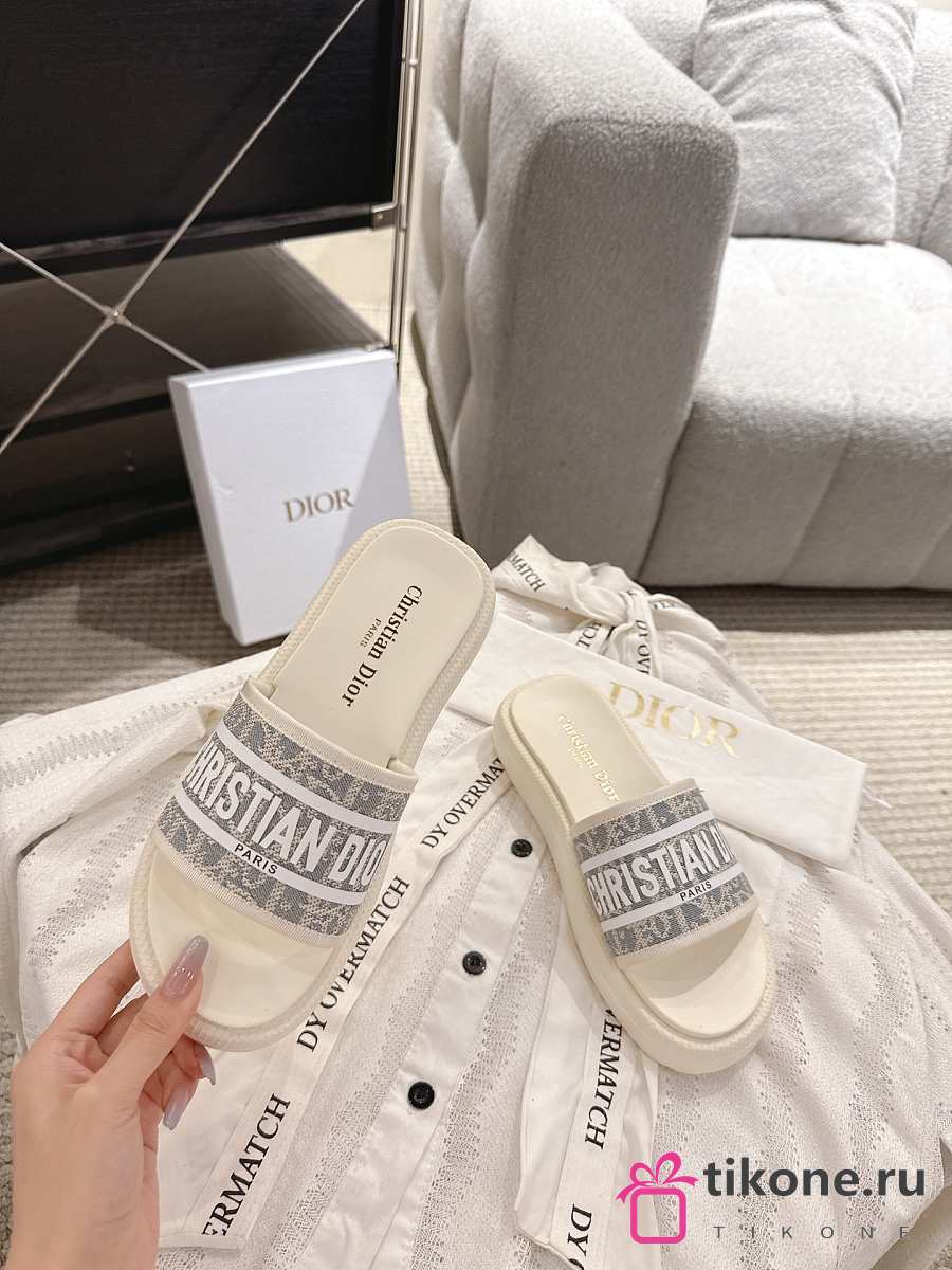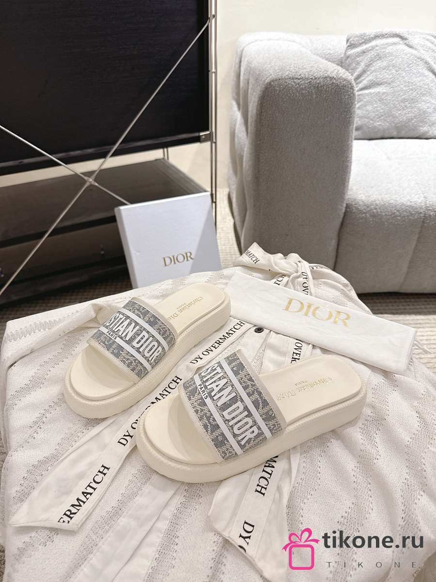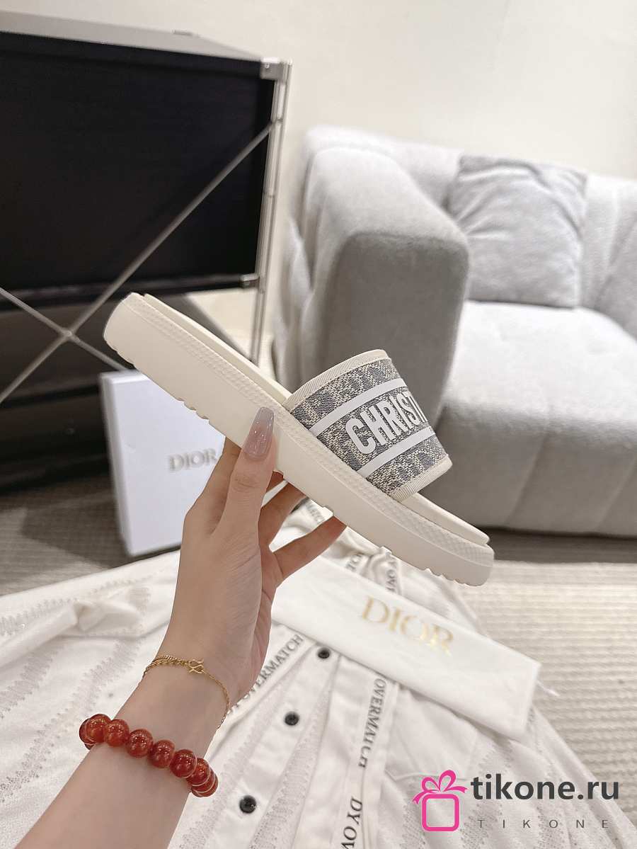 Dioriviera Dway Slide Chambray Blue Jacquard with Ecru Raffia Dior Oblique Motif and White Rubber