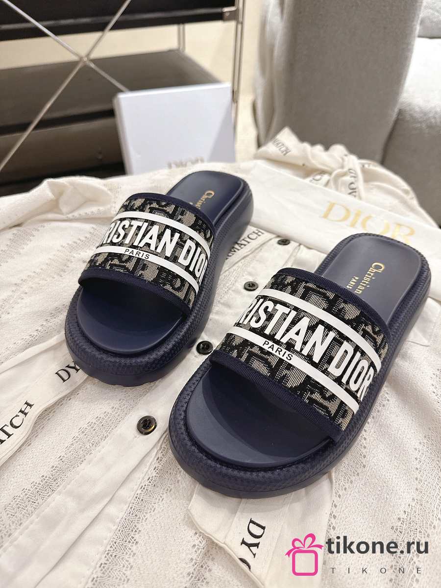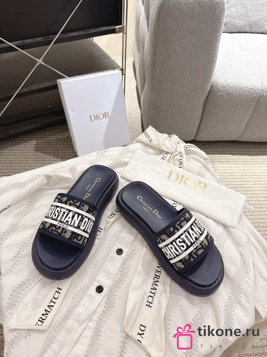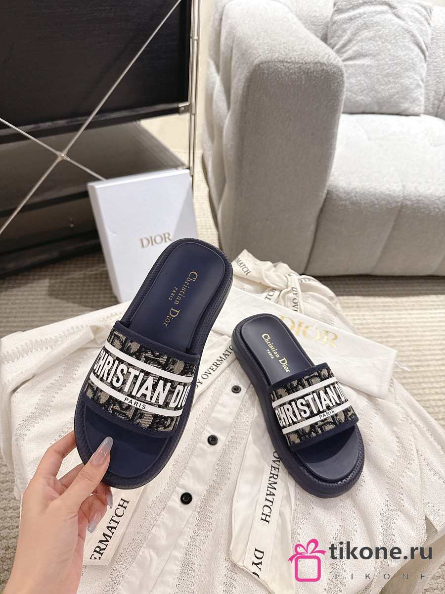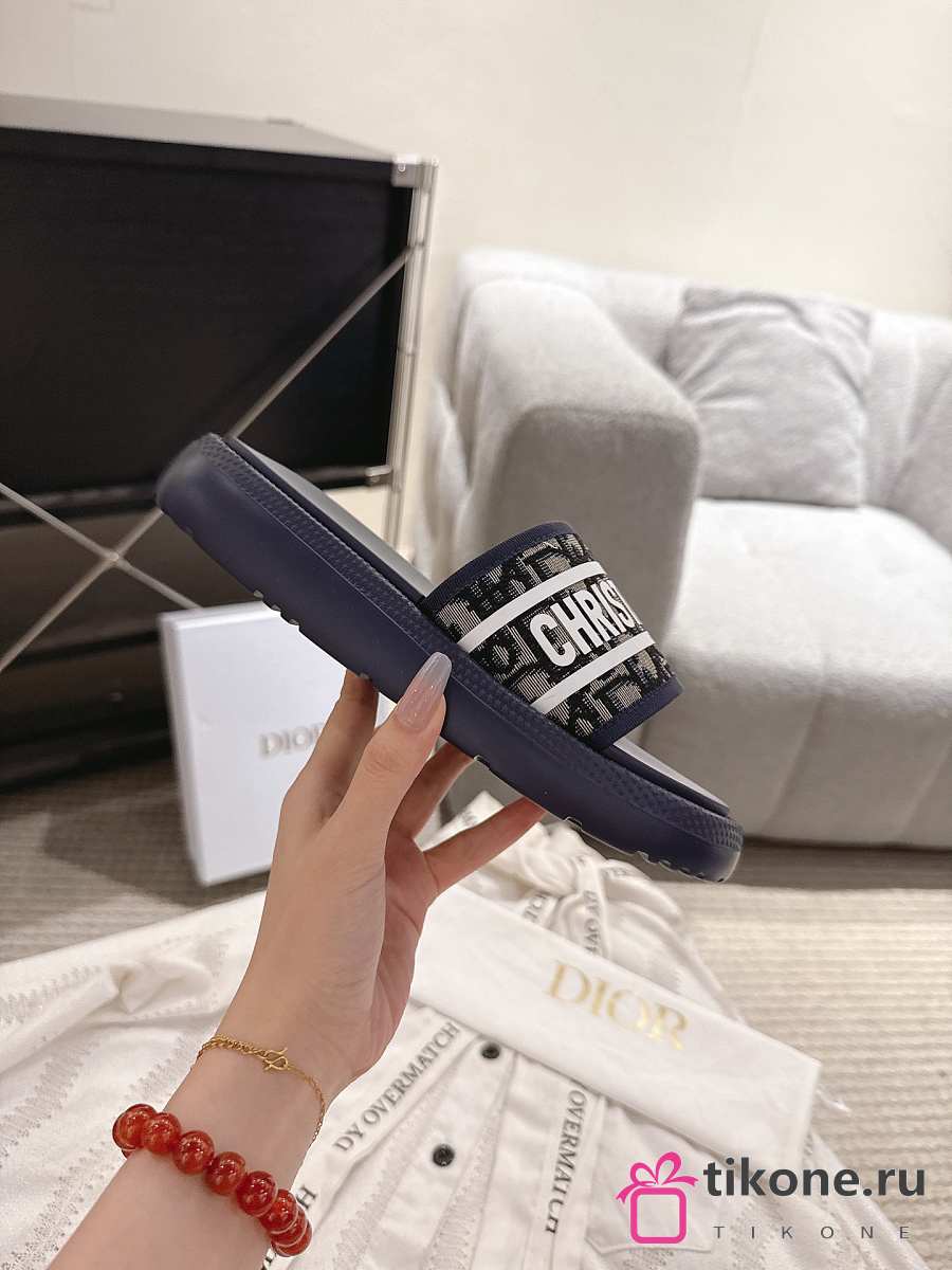 Dioriviera Dway Slide Deep Blue Dior Oblique Embroidered Cotton and White Rubber
