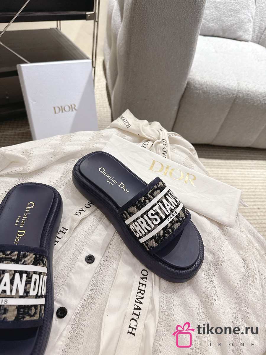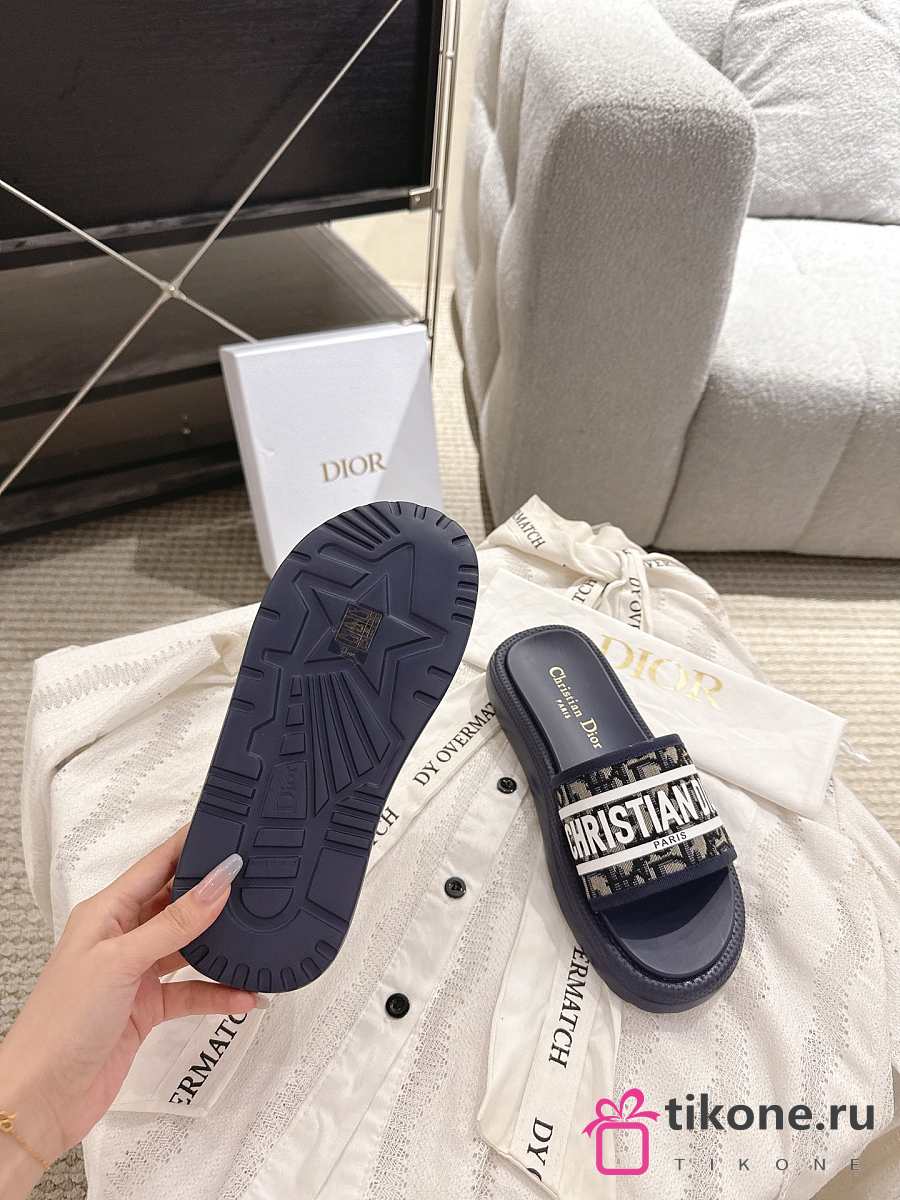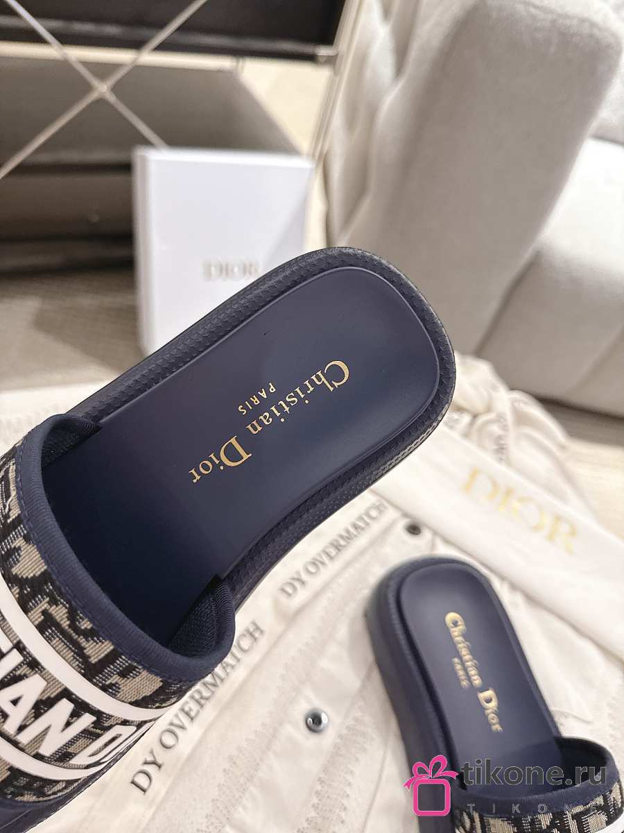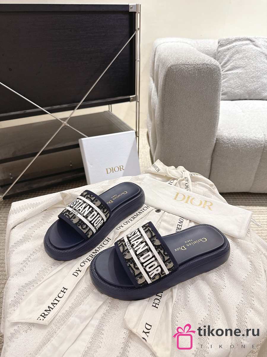 Dioriviera Dway Slide Deep Blue Dior Oblique Embroidered Cotton and White Rubber