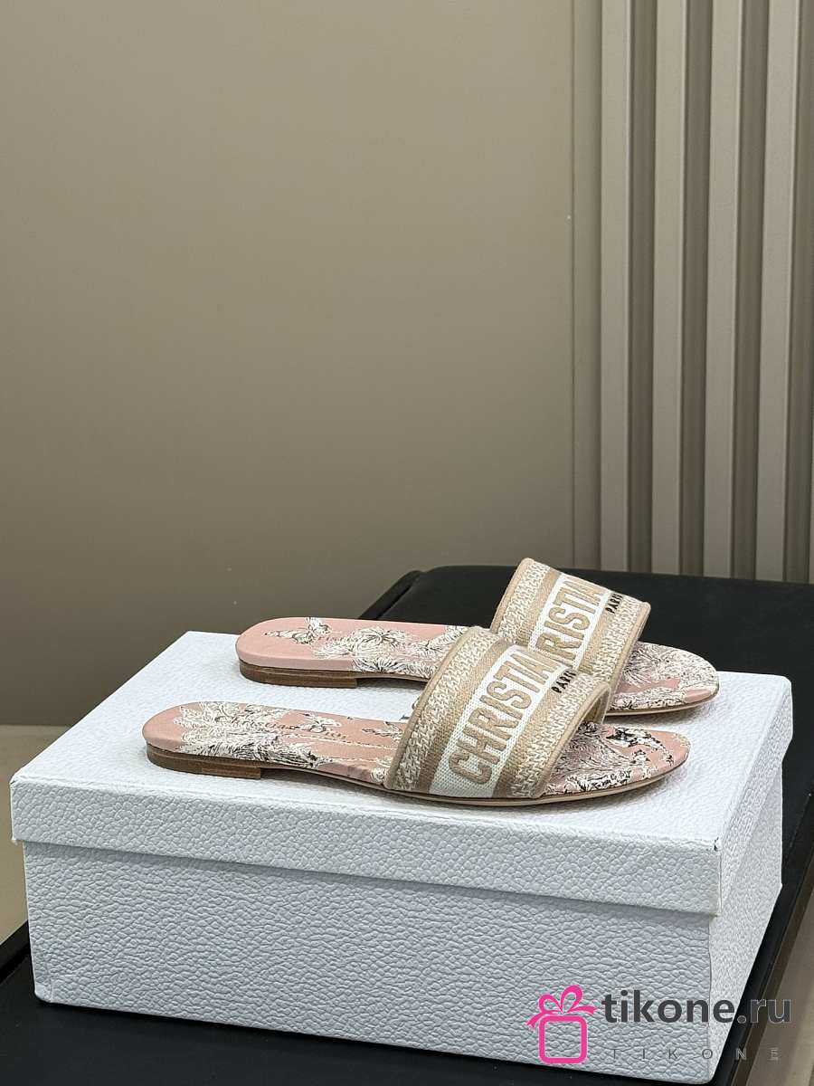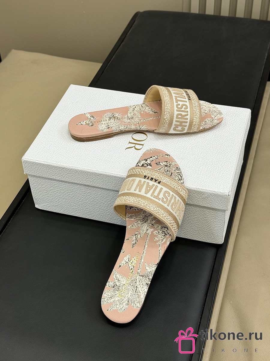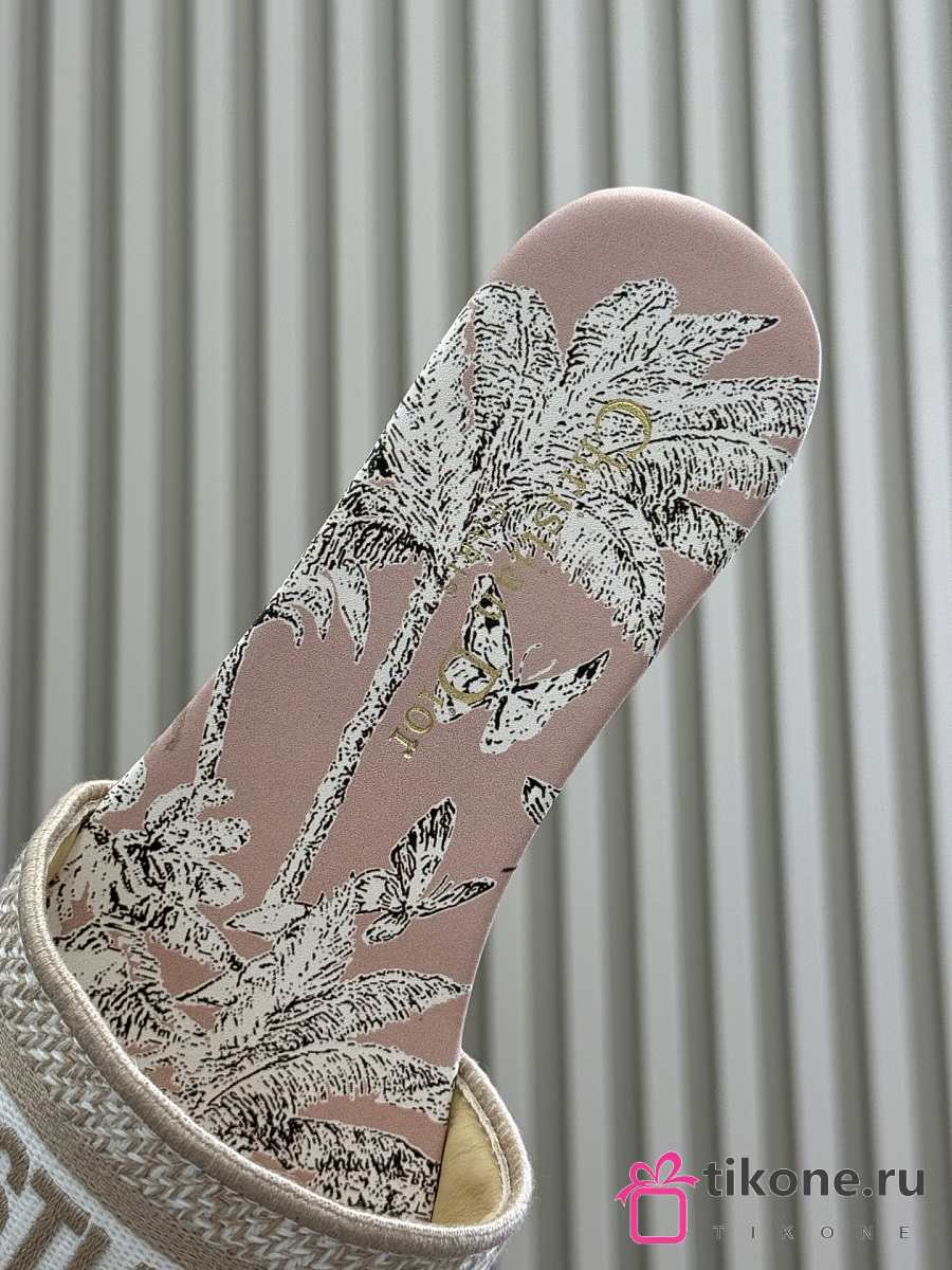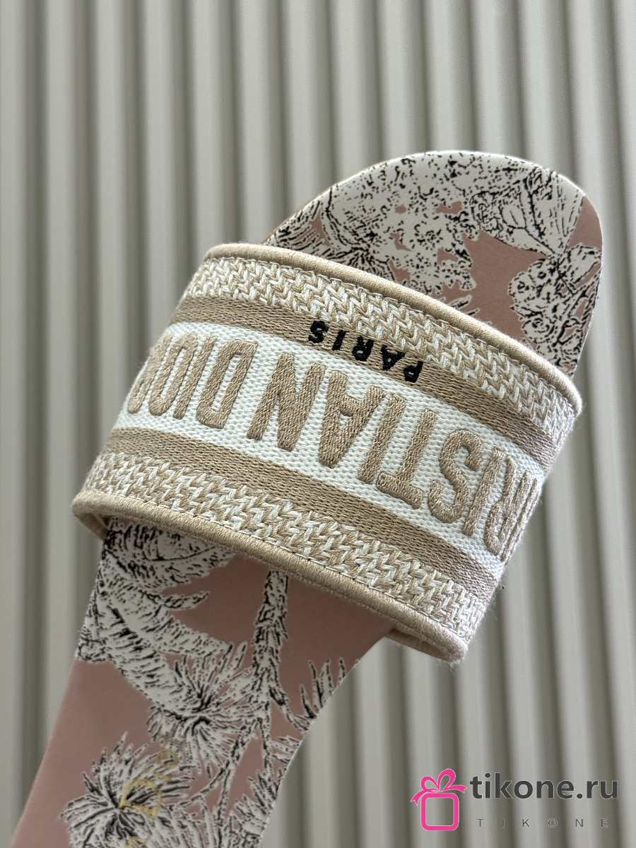 Dioriviera Dway Slide Embroidered Cotton and Beige and White Toile de Jouy Palms Motif
