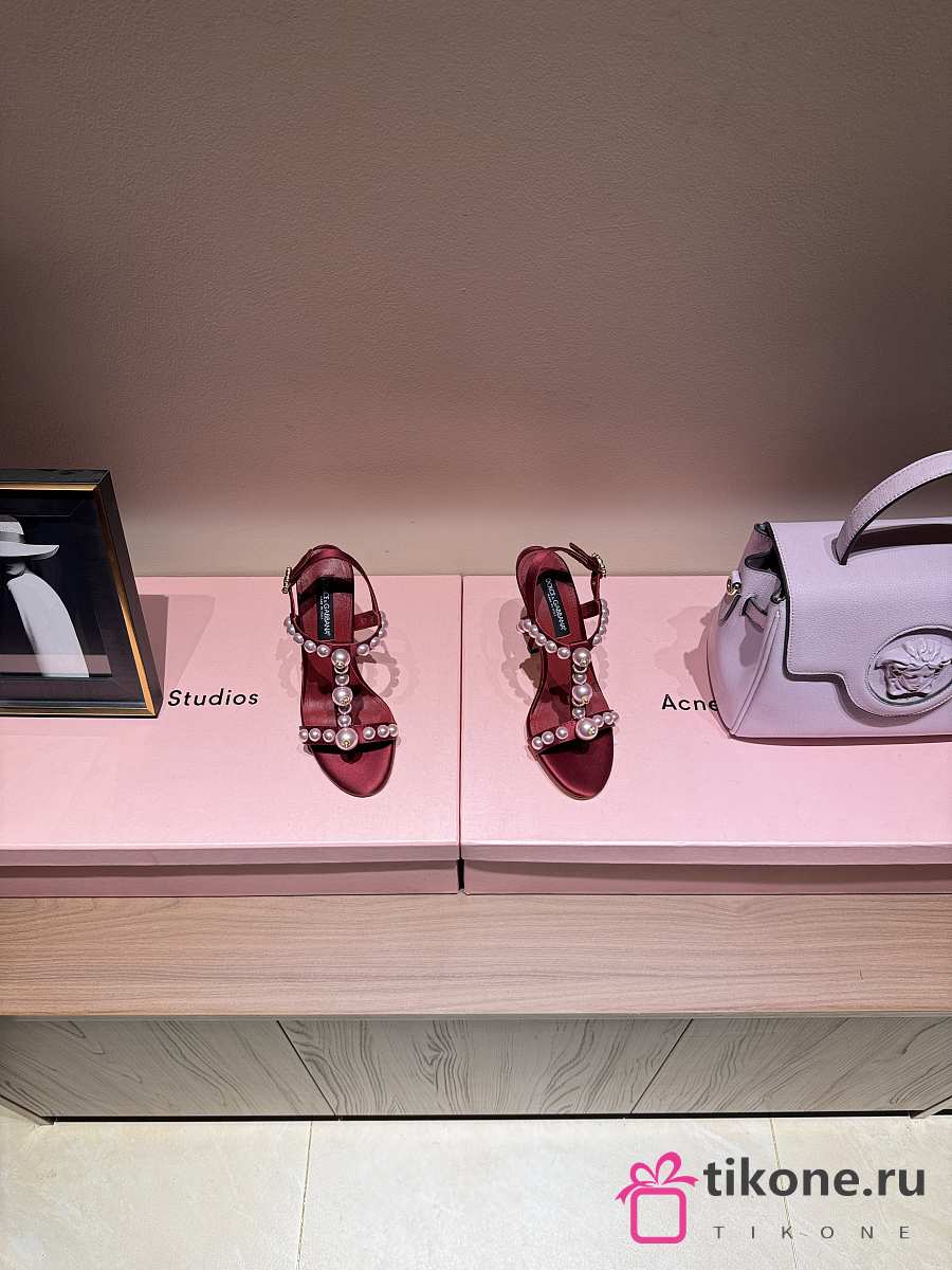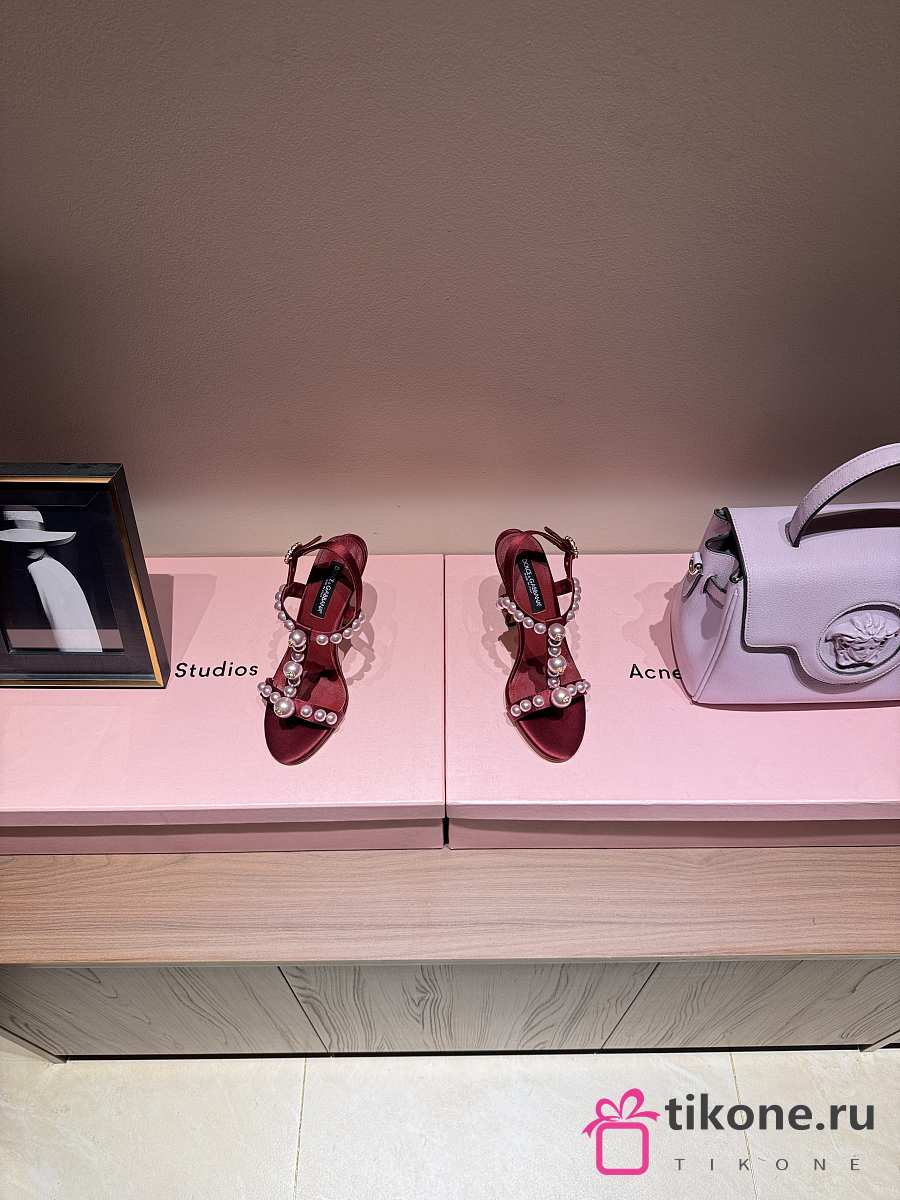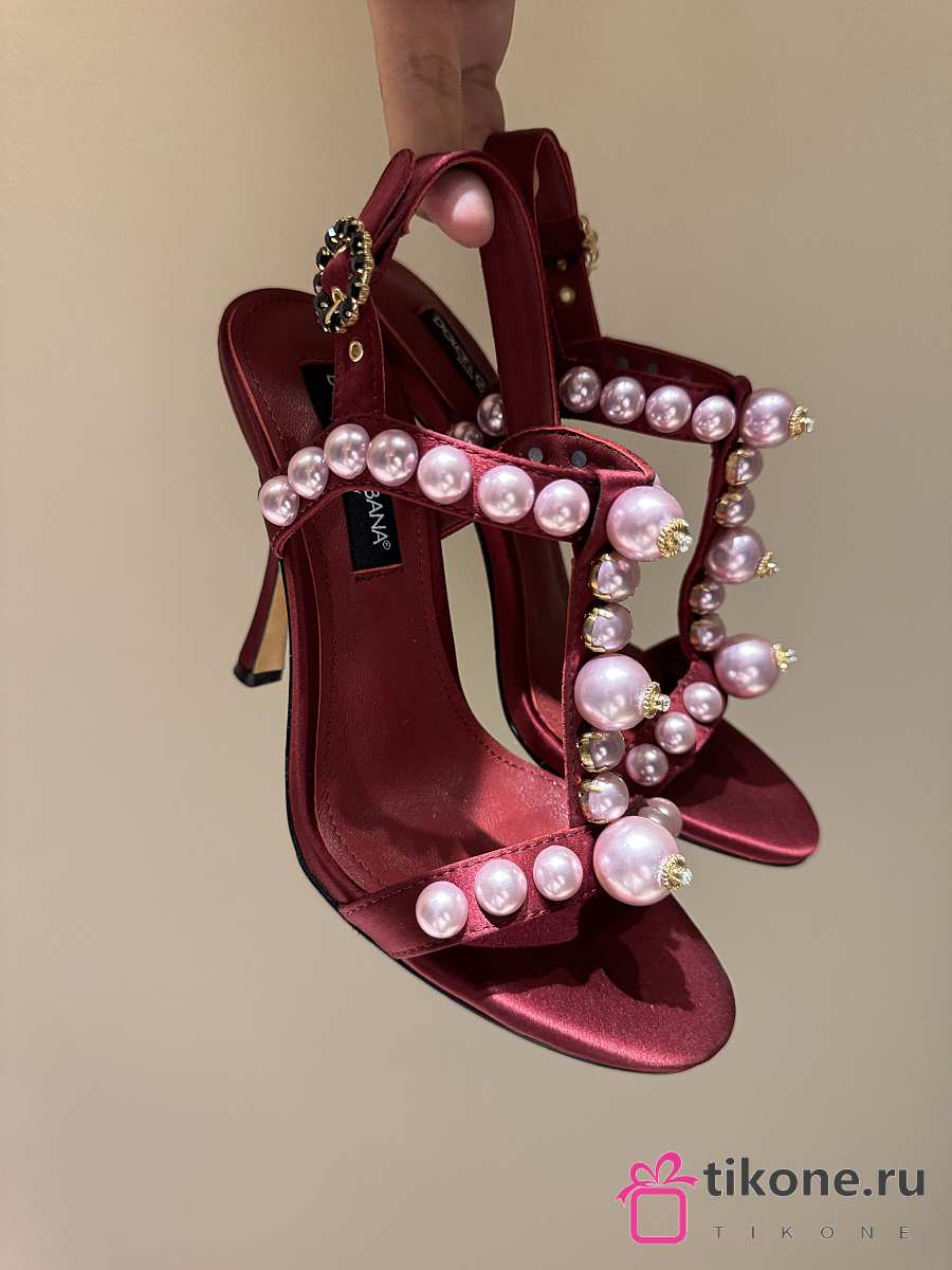 Dolce&Gabbana Bejeweled Satin Sandals With Pearl Embroidery Red 90mm