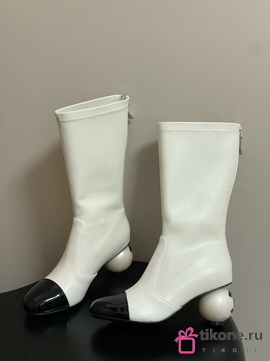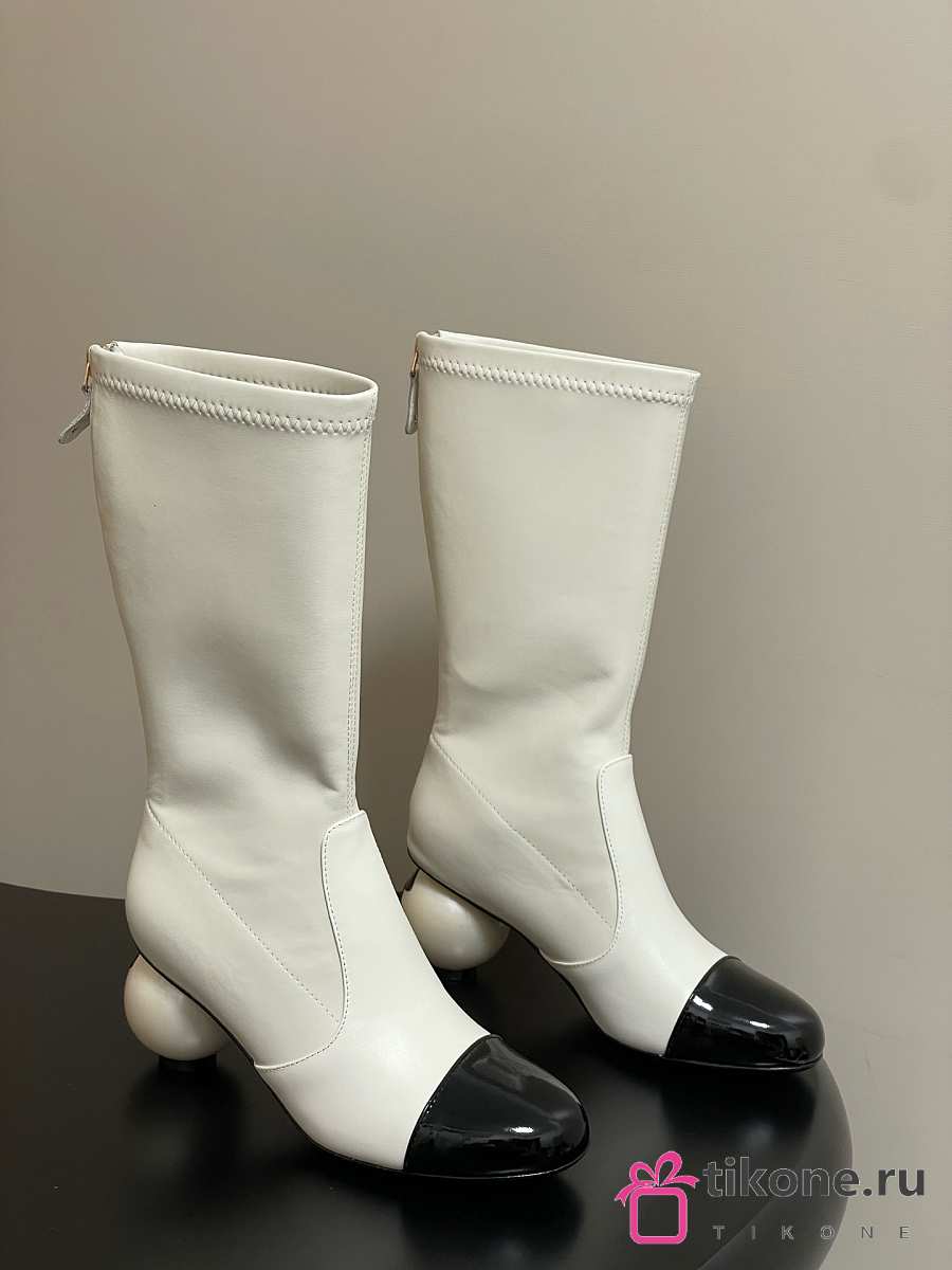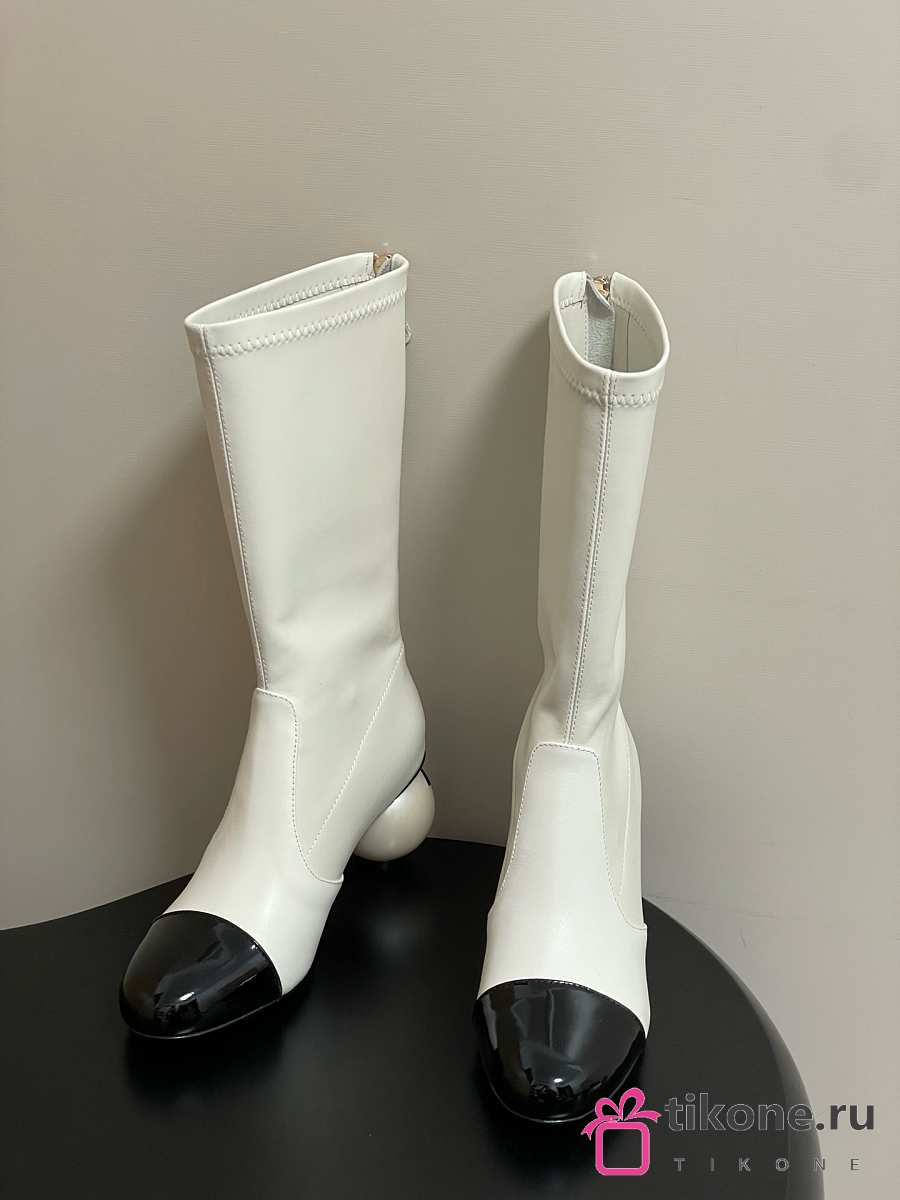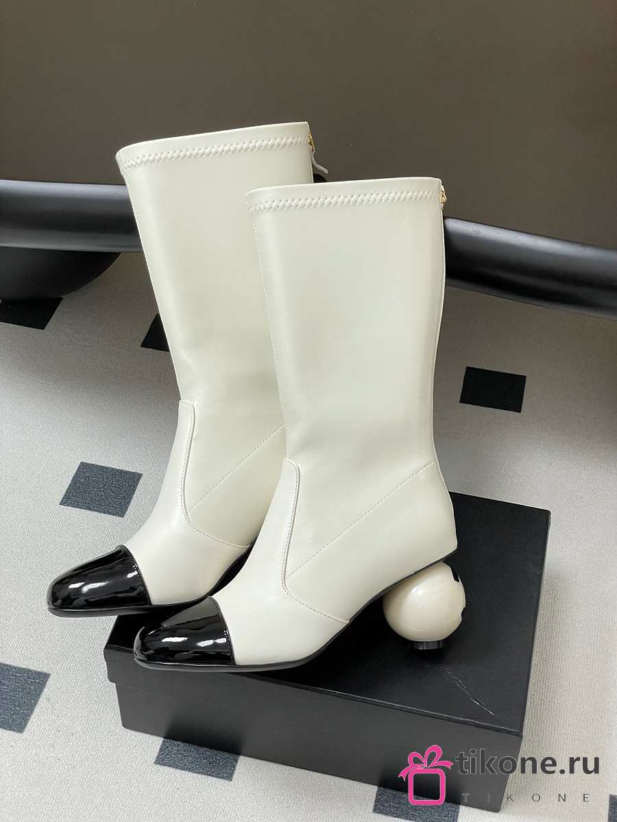 Chanel Short Boots White Calfskin Heel