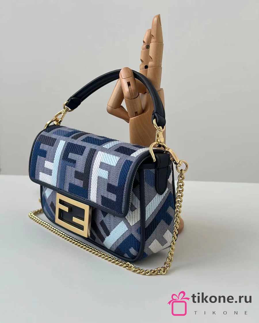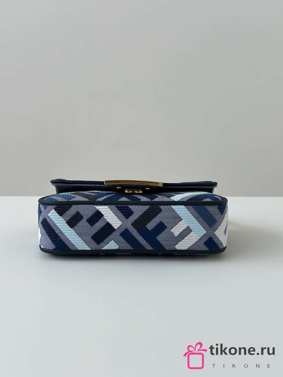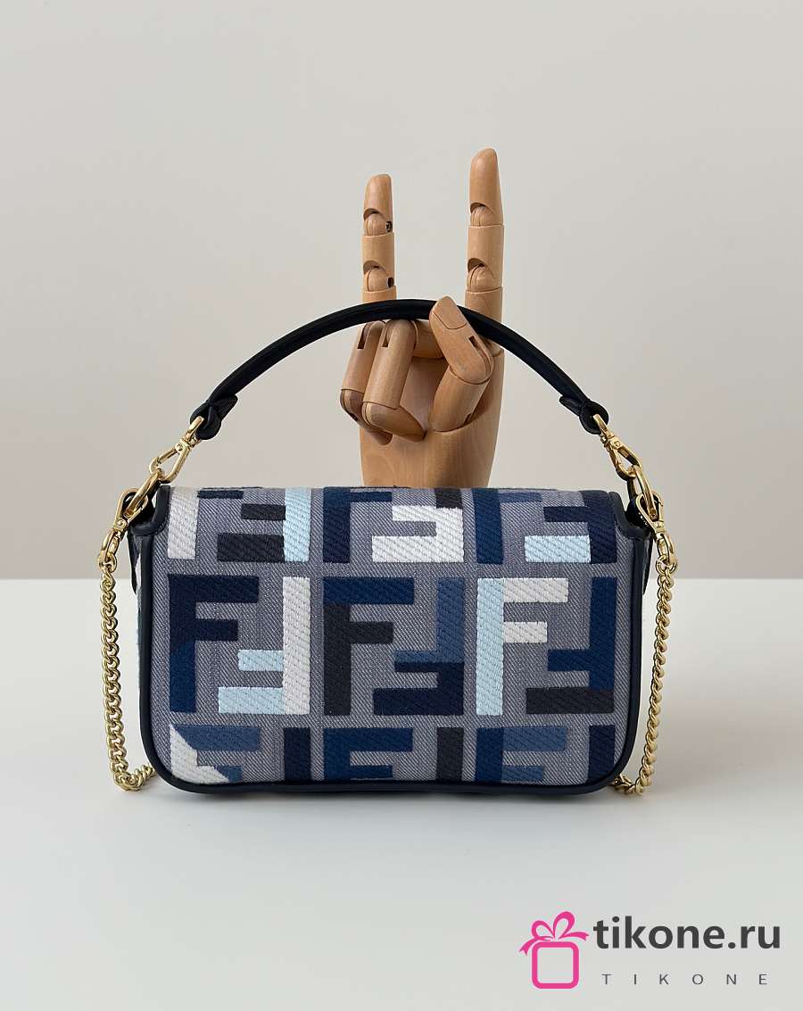 Fendi Baguette Mini Blue Canvas Bag with FF Embroidery - 20x13x5cm