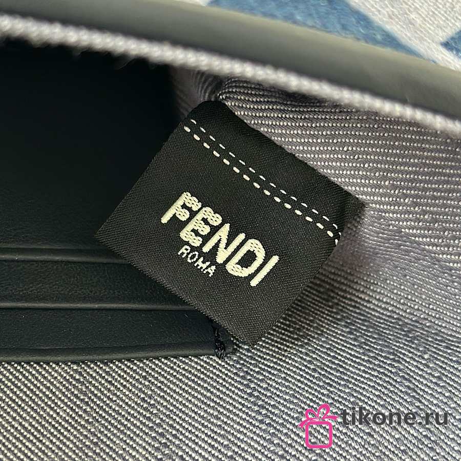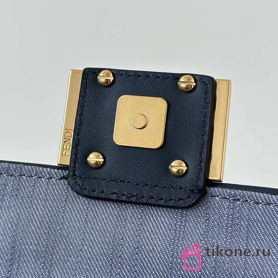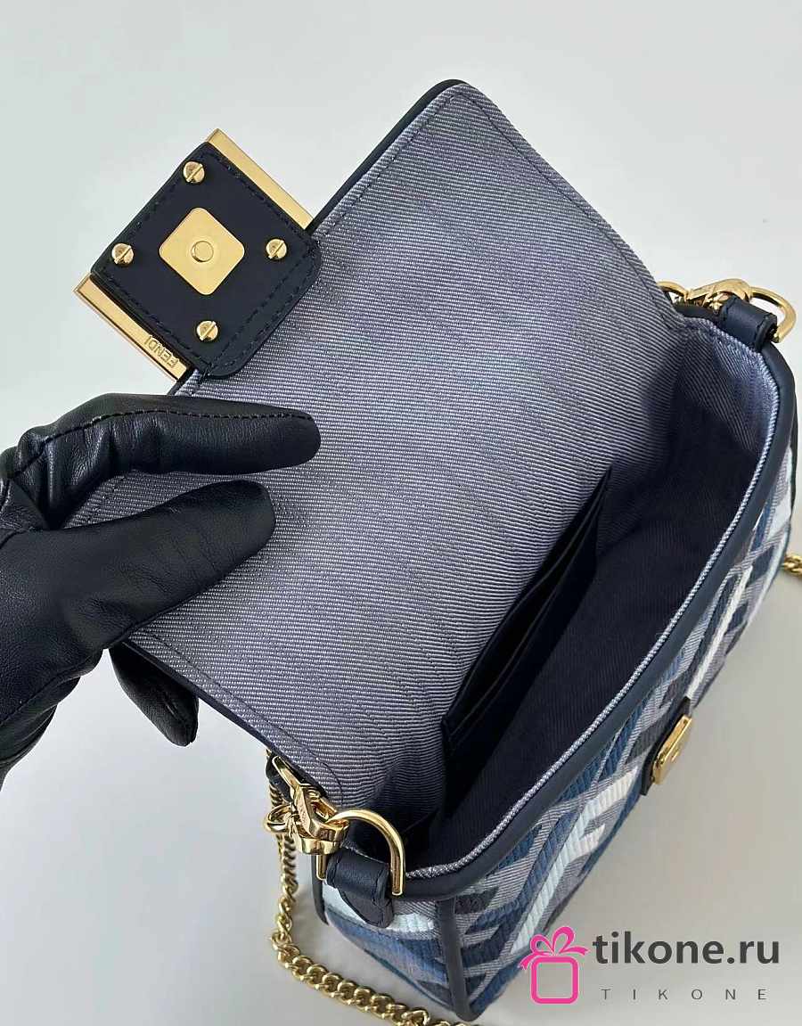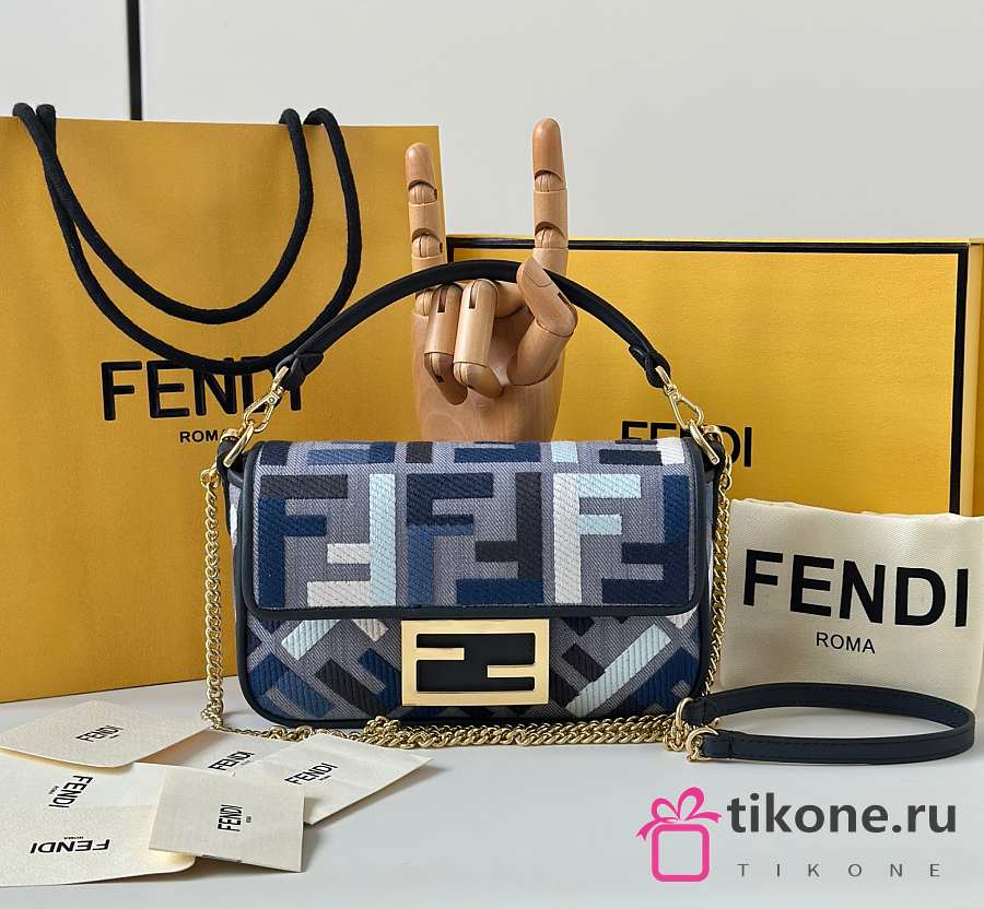 Fendi Baguette Mini Blue Canvas Bag with FF Embroidery - 20x13x5cm