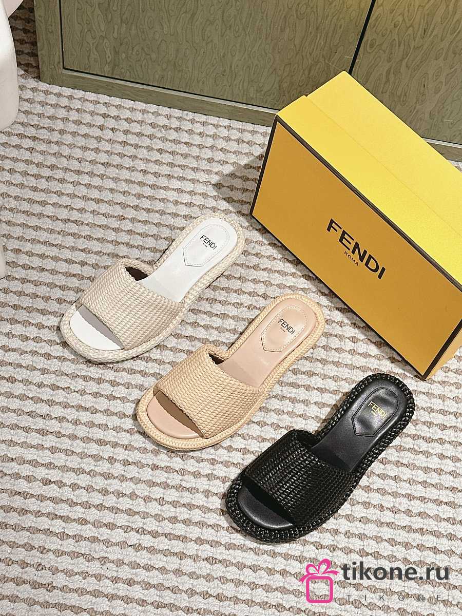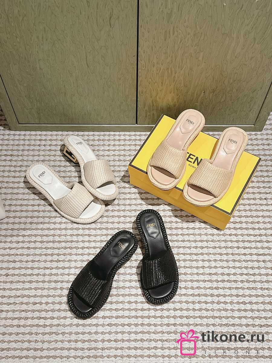 Fendi FF Baguette Motif Wide-Band Slides Black/ Beige/ White Raffia