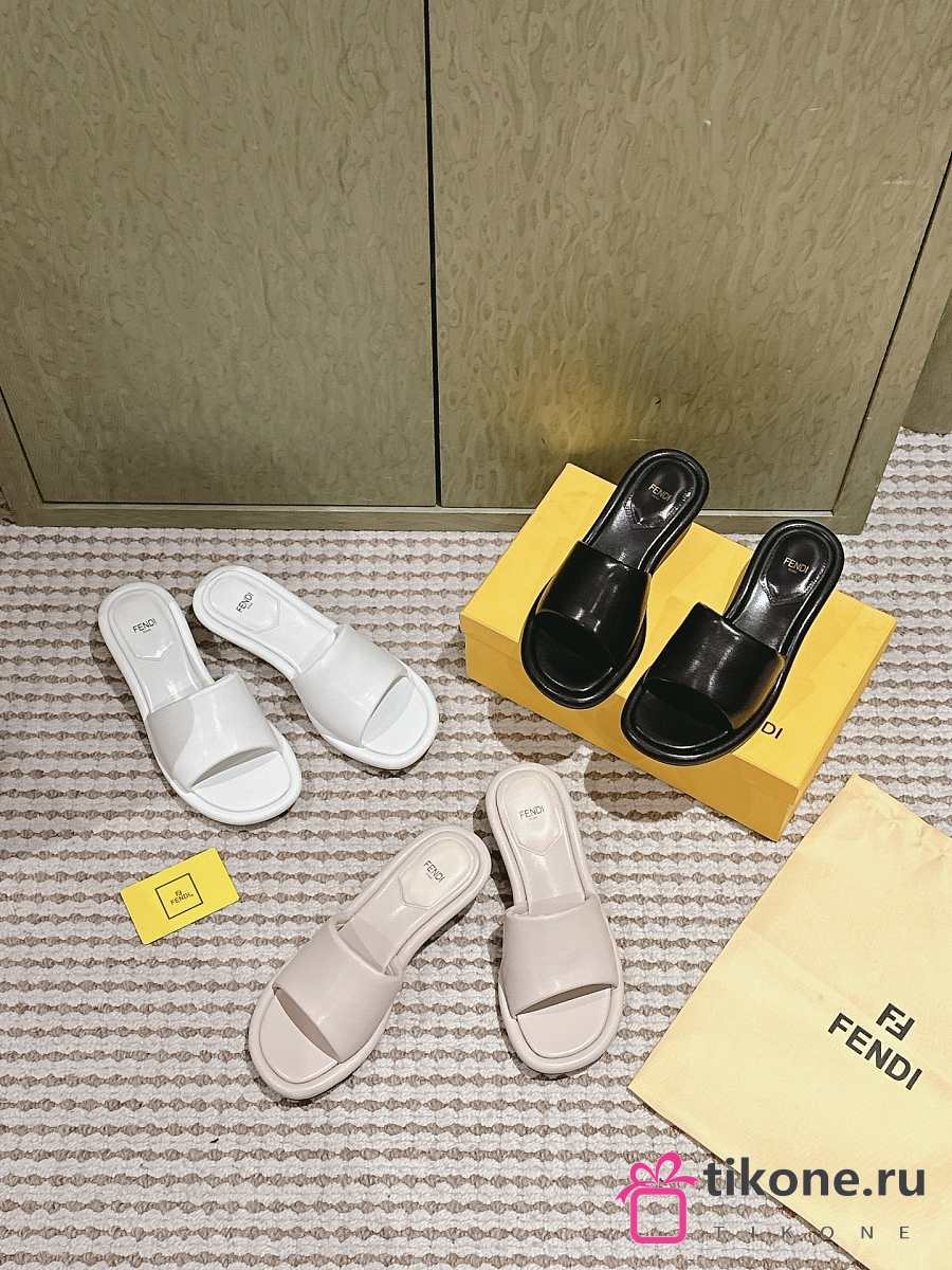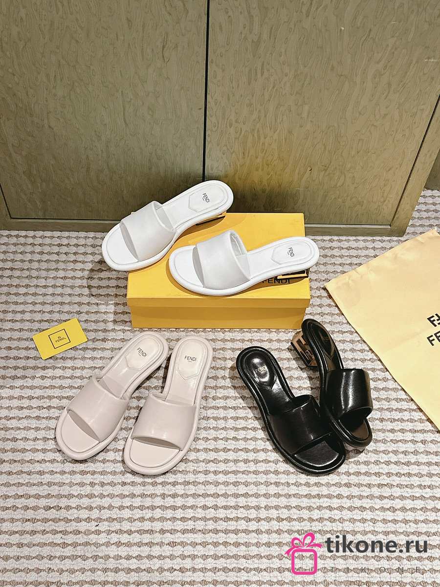 Fendi FF Baguette Motif Wide-Band Slides Black/ Beige/ White
