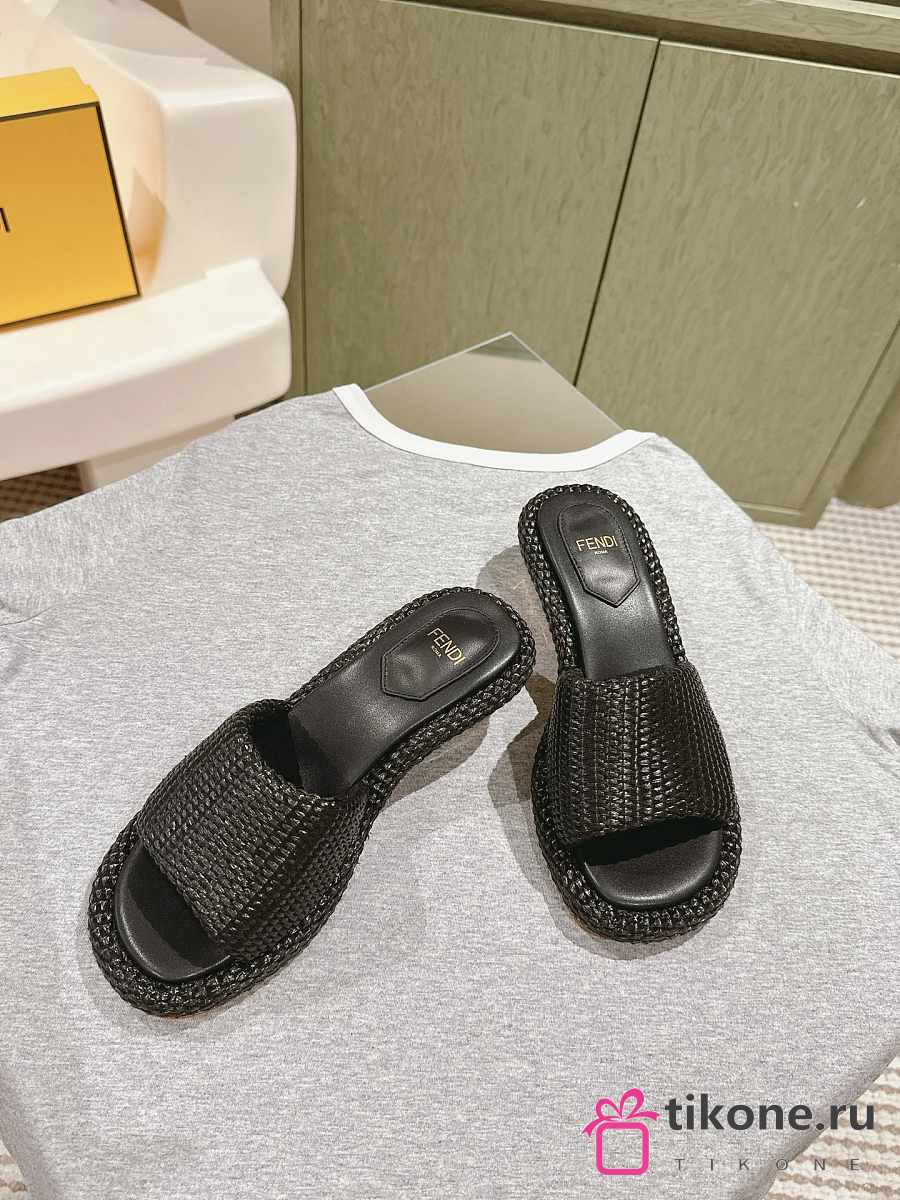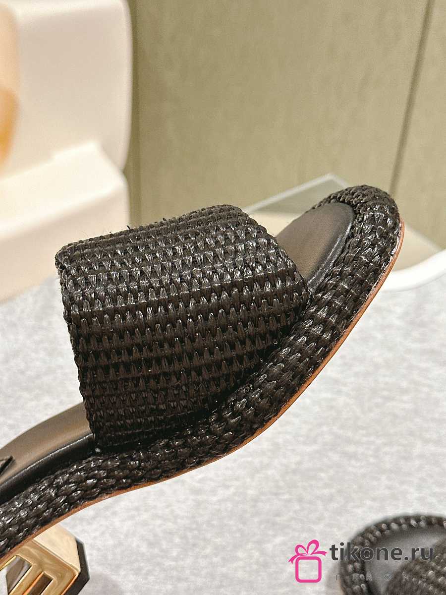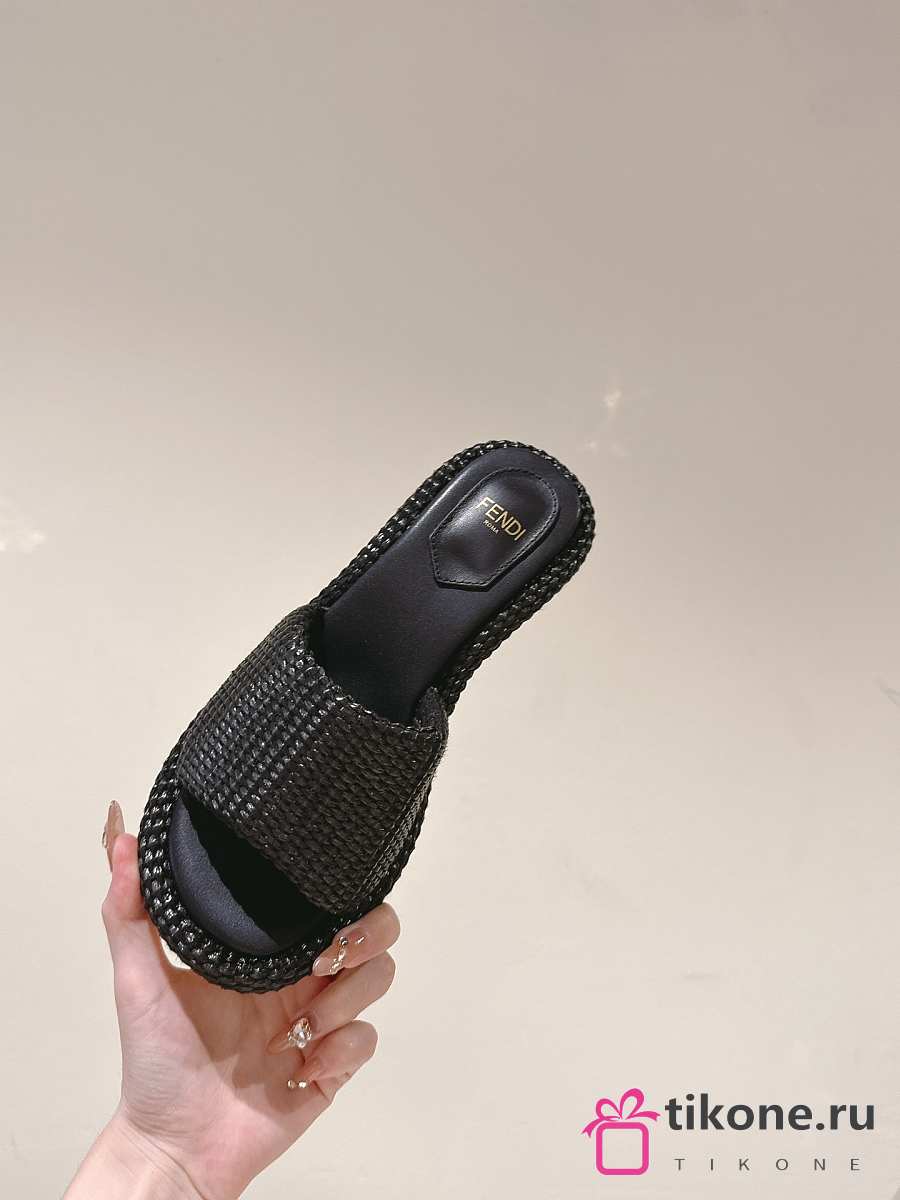Fendi FF Baguette Motif Wide-Band Slides Black Raffia