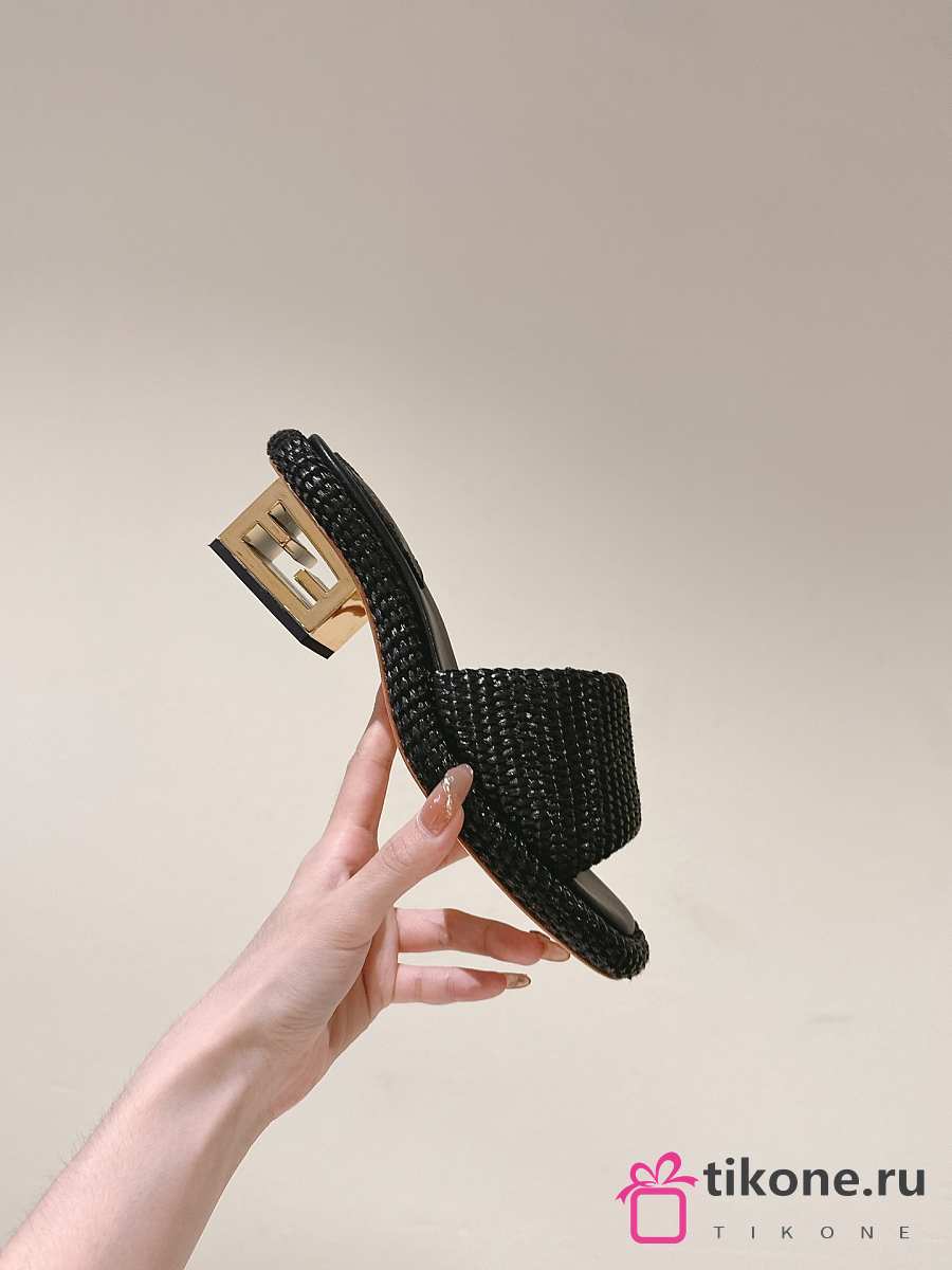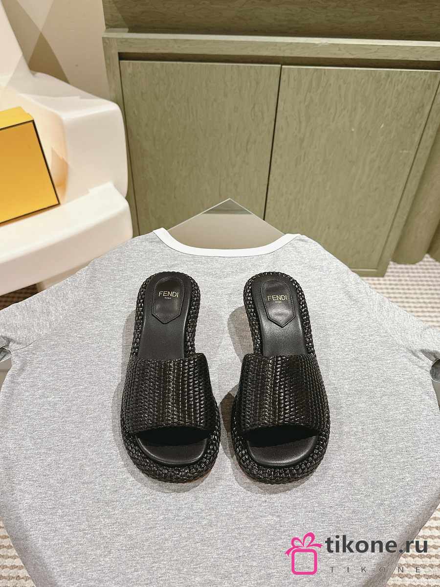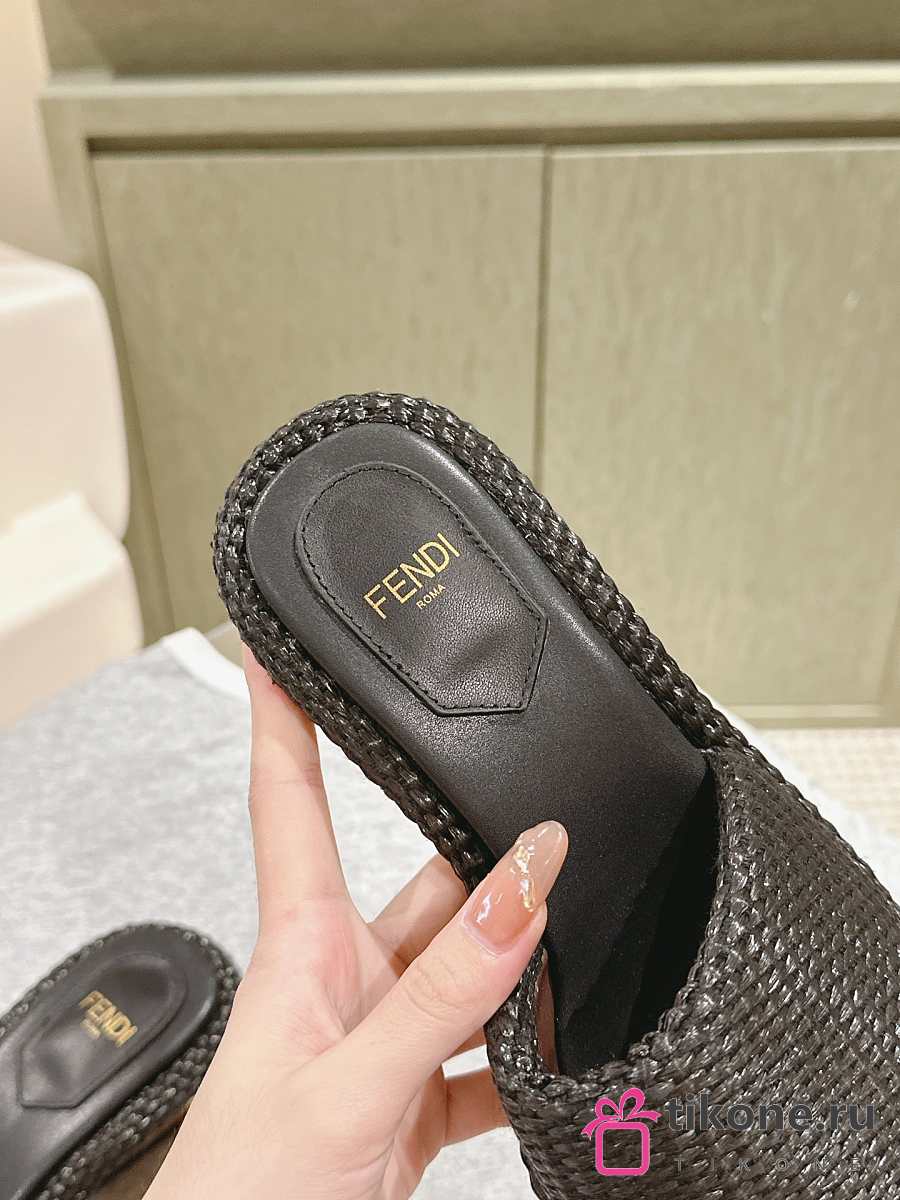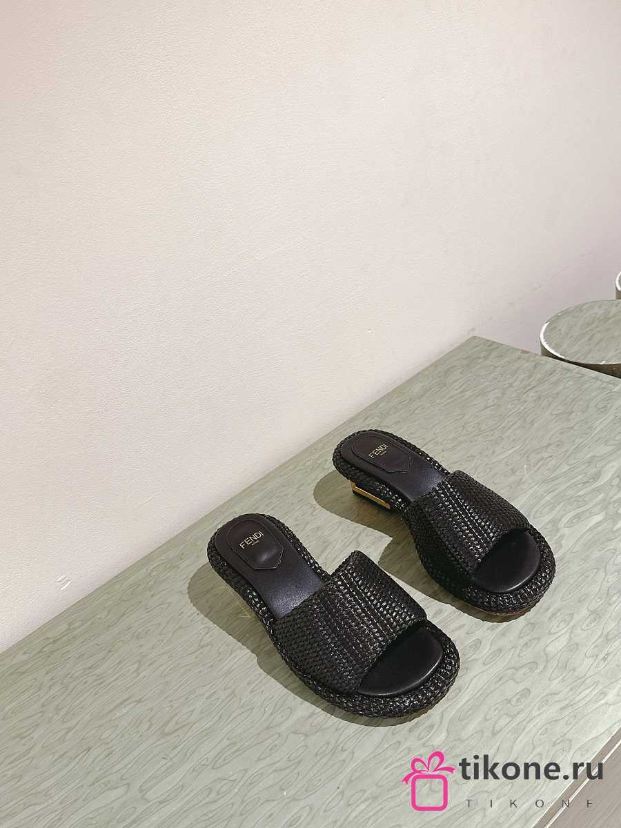 Fendi FF Baguette Motif Wide-Band Slides Black Raffia