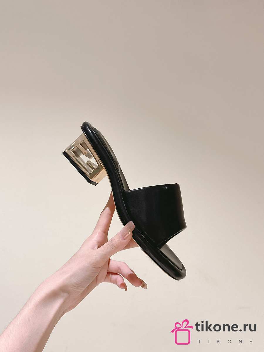 Fendi FF Baguette Motif Wide-Band Slides Black