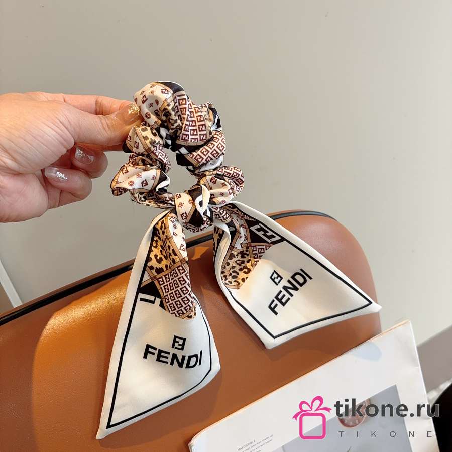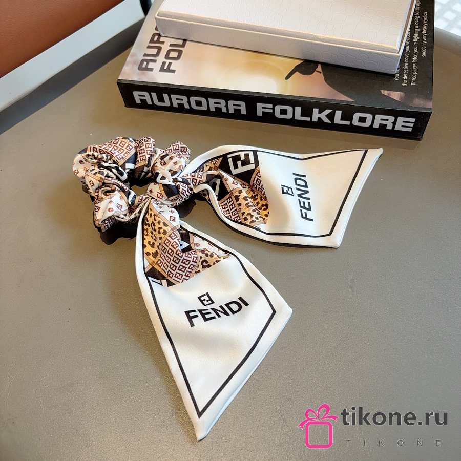 Fendi FF Ribbon Scrunchie White 22704