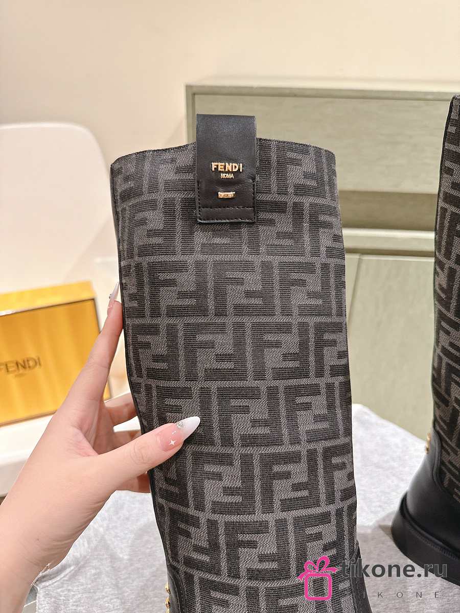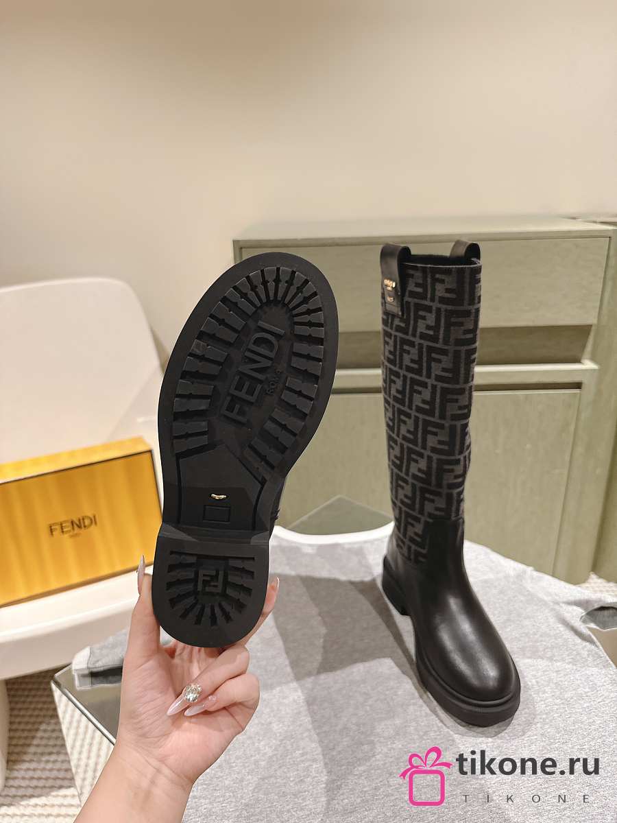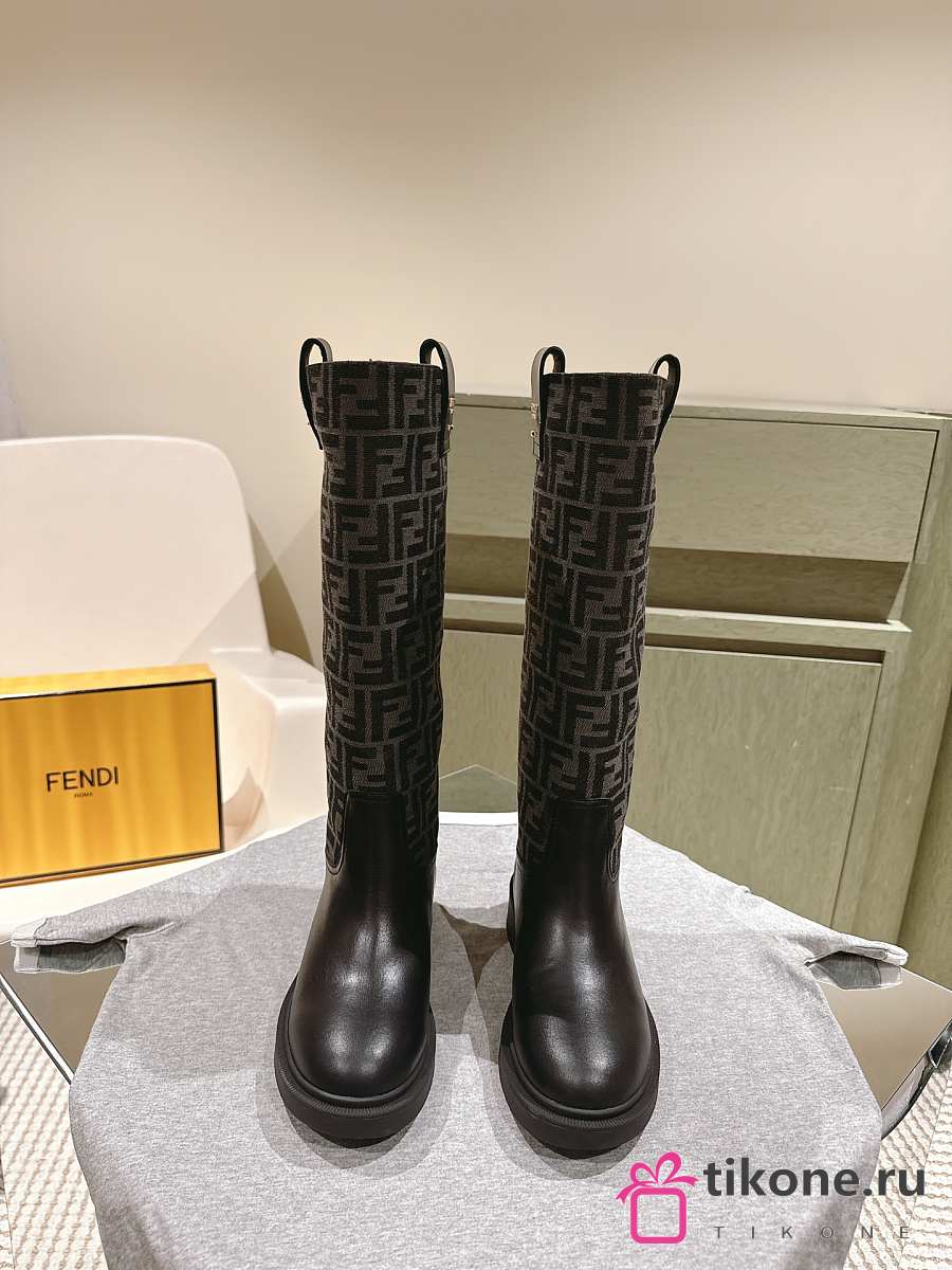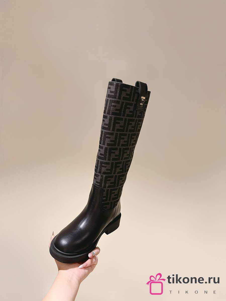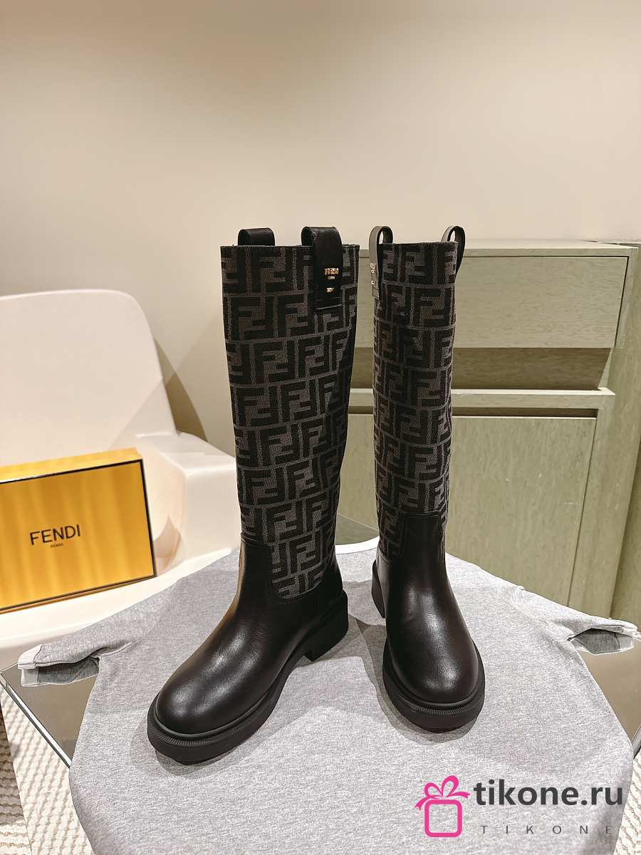 Fendi Filo Black Leather And FF Fabric Boots