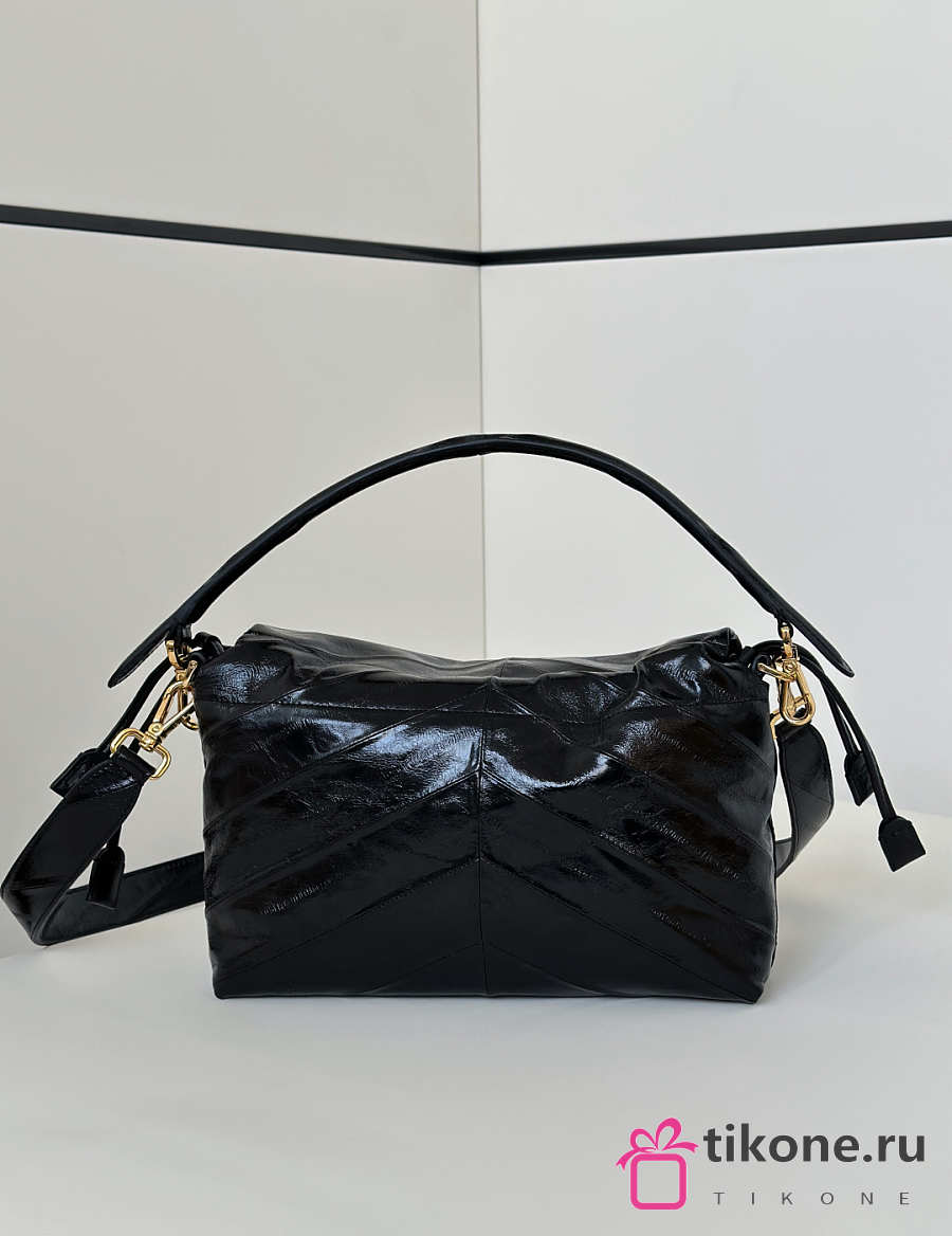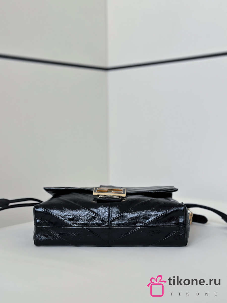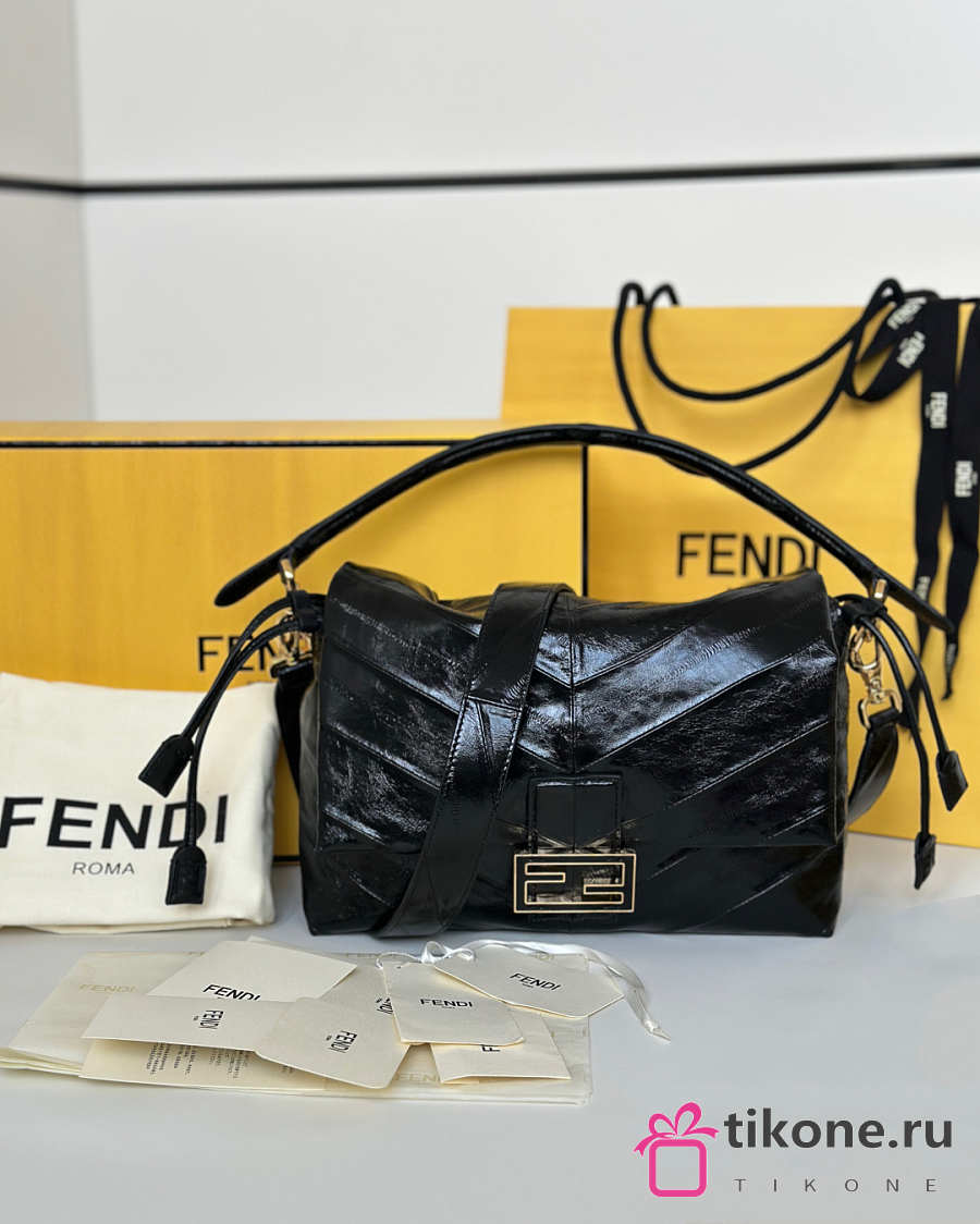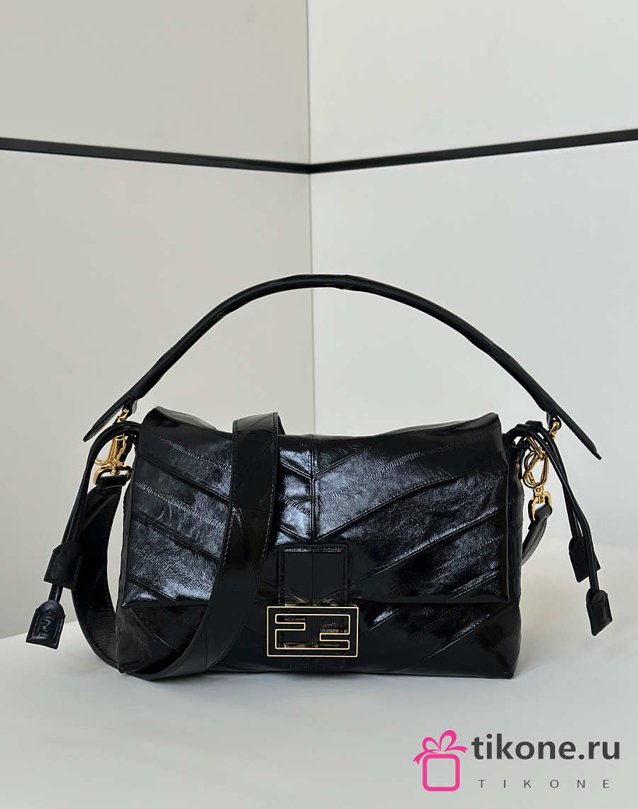 Fendi Mamma Baguette Medium Black Inlaid Hagfish Leather - 26.5x18x8.5cm