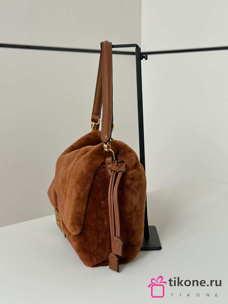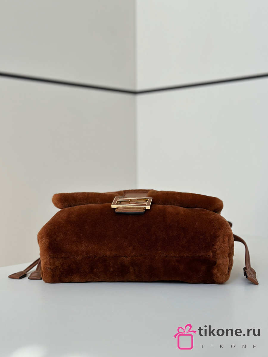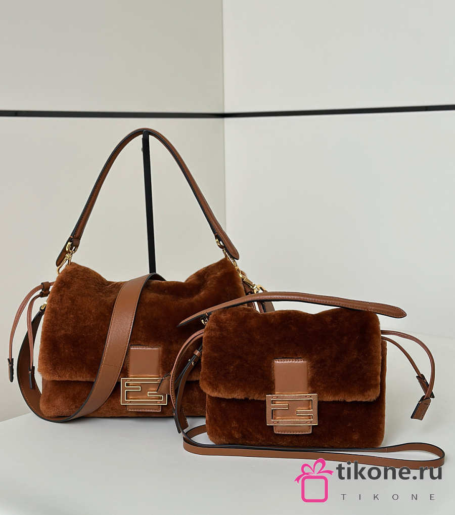 Fendi Mamma Baguette Medium Brown Shearling Bag - 26.5x18x8.5cm