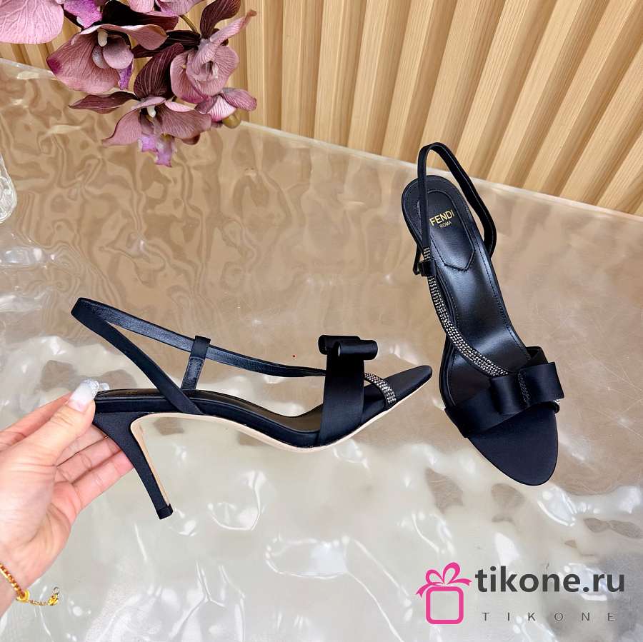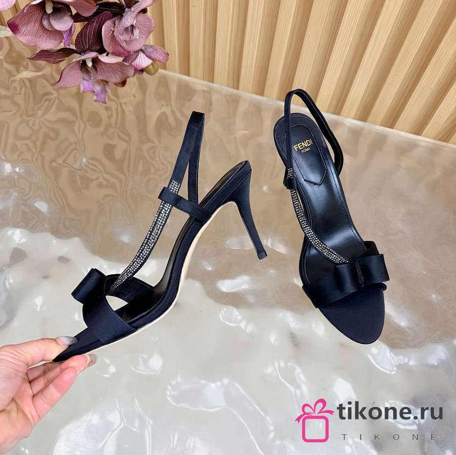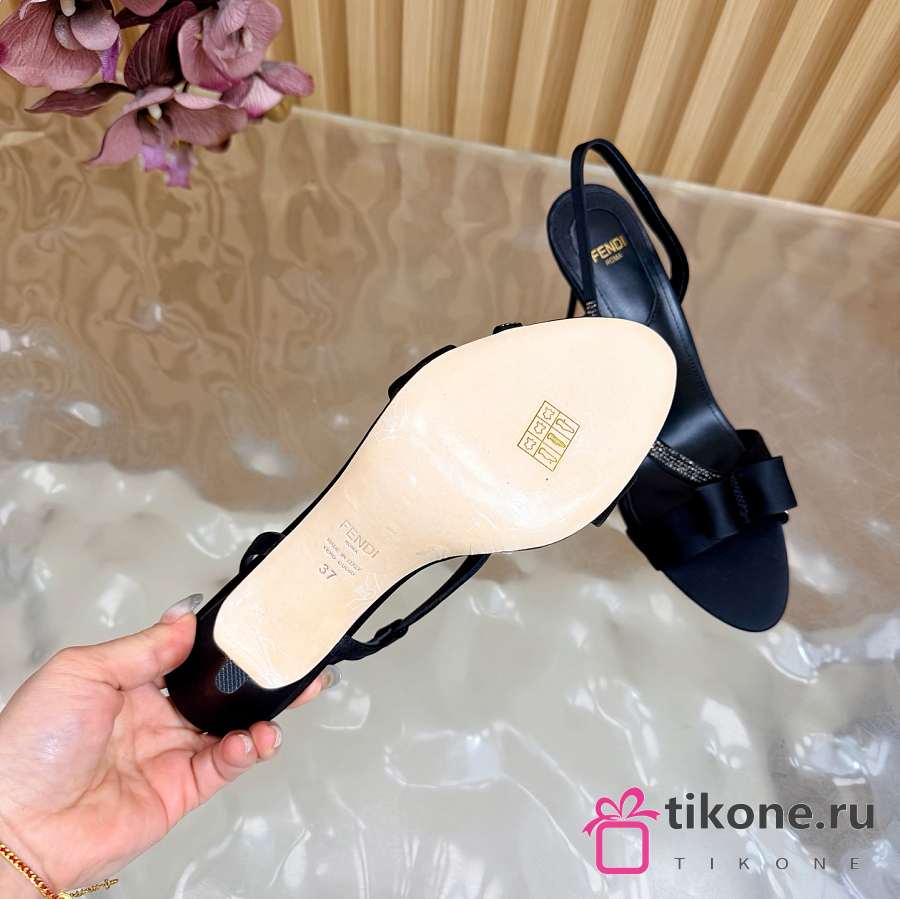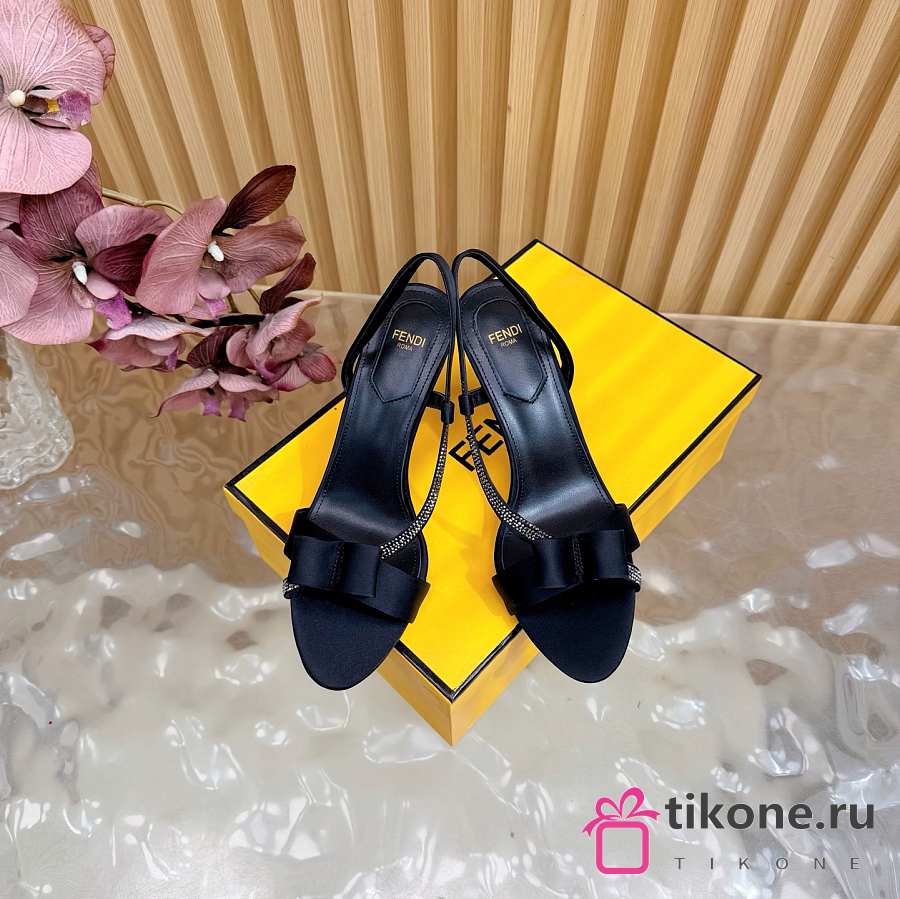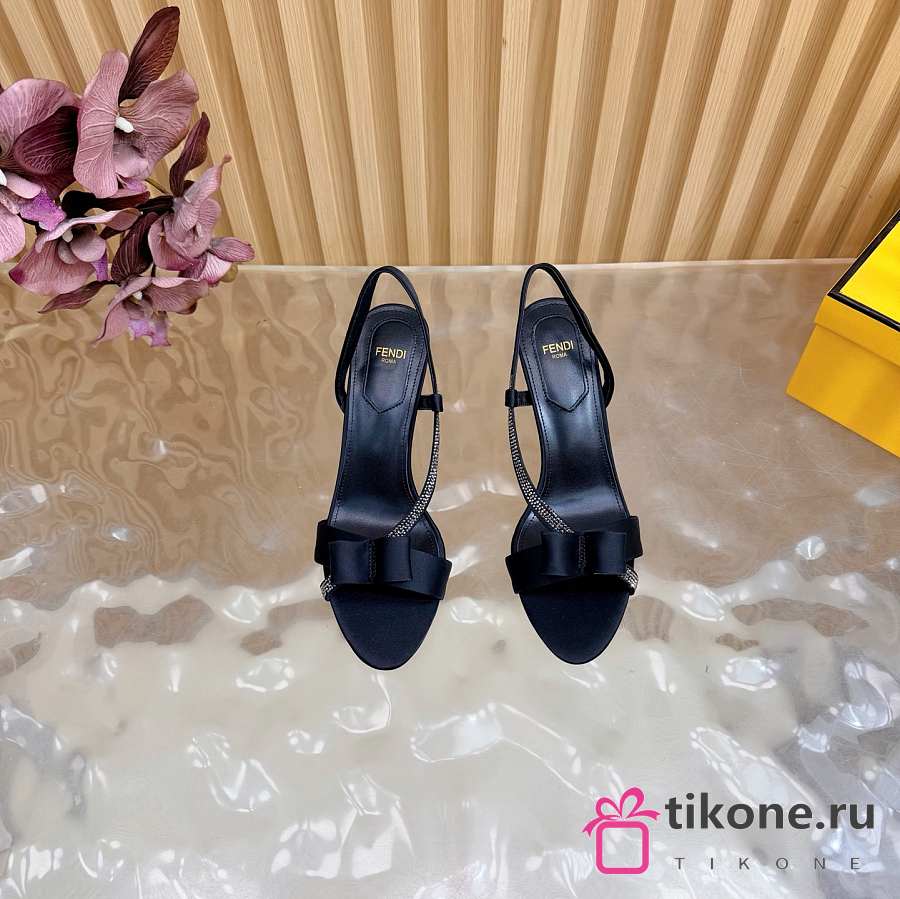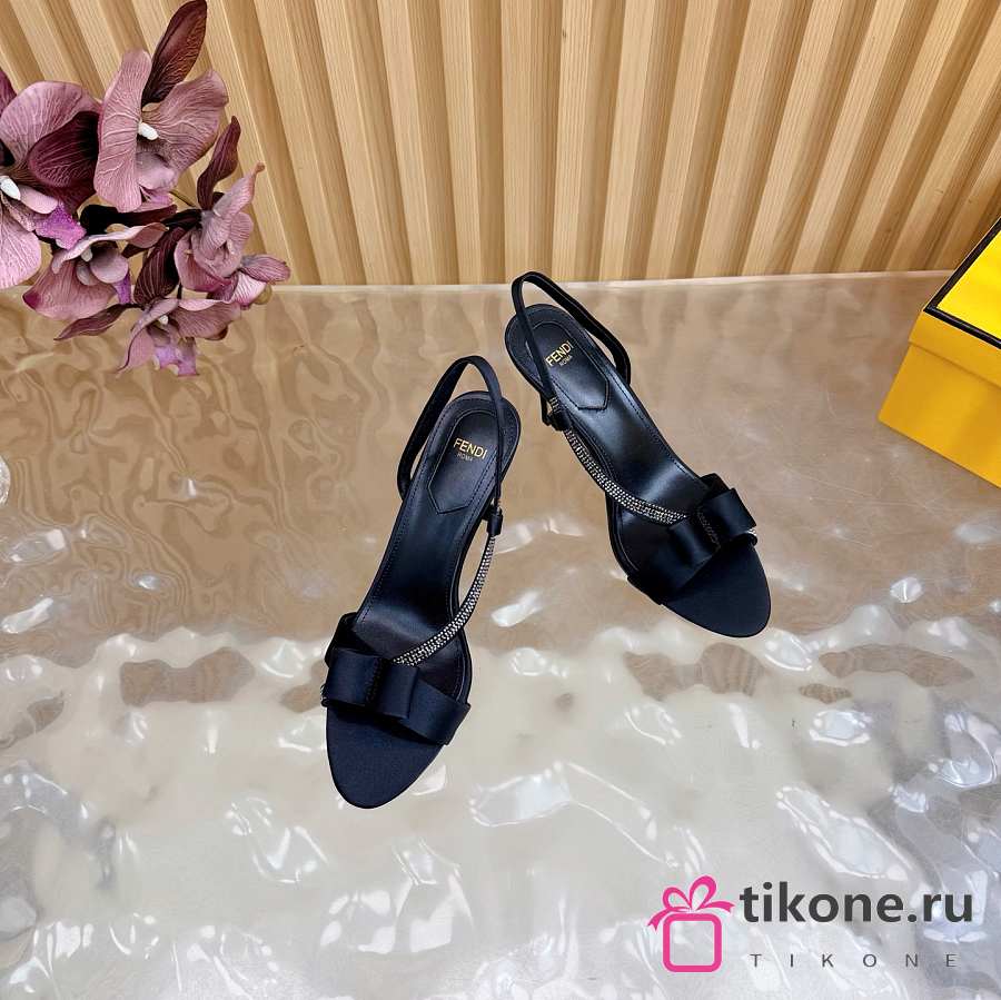 Fendi Satin Crystal Embellished Bow Slingback Black 9cm