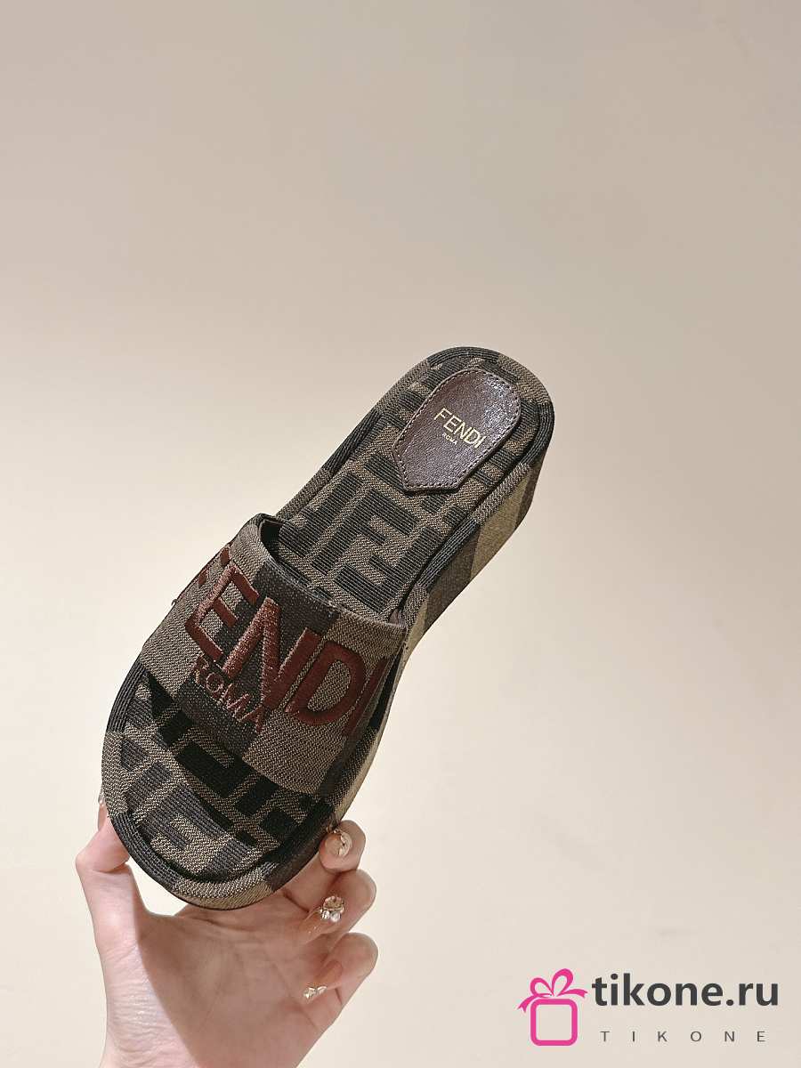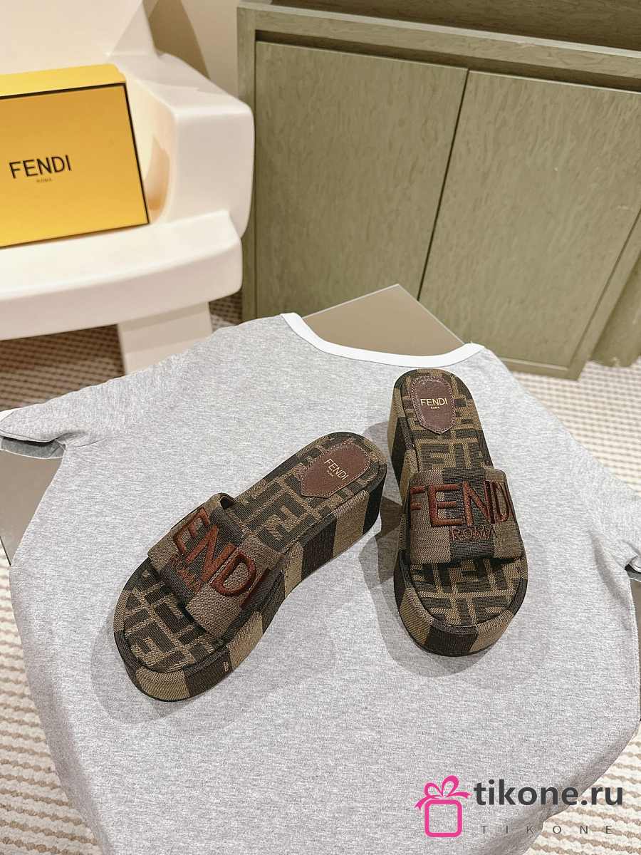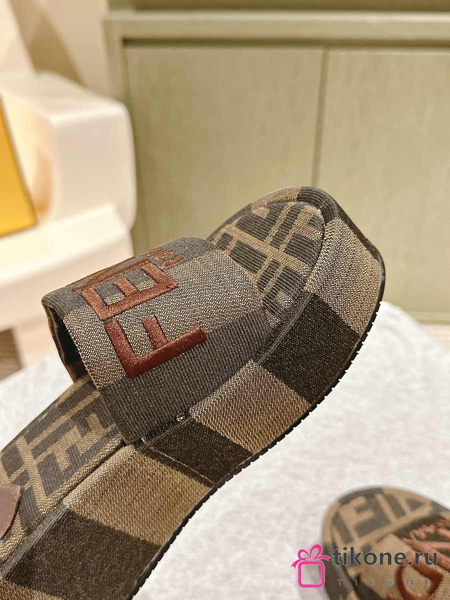 Fendi Sunshine Brown Fabric Flatform Slides 60mm