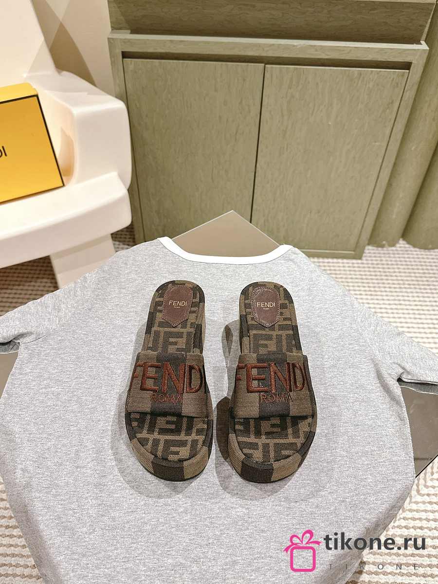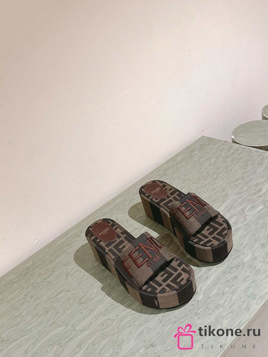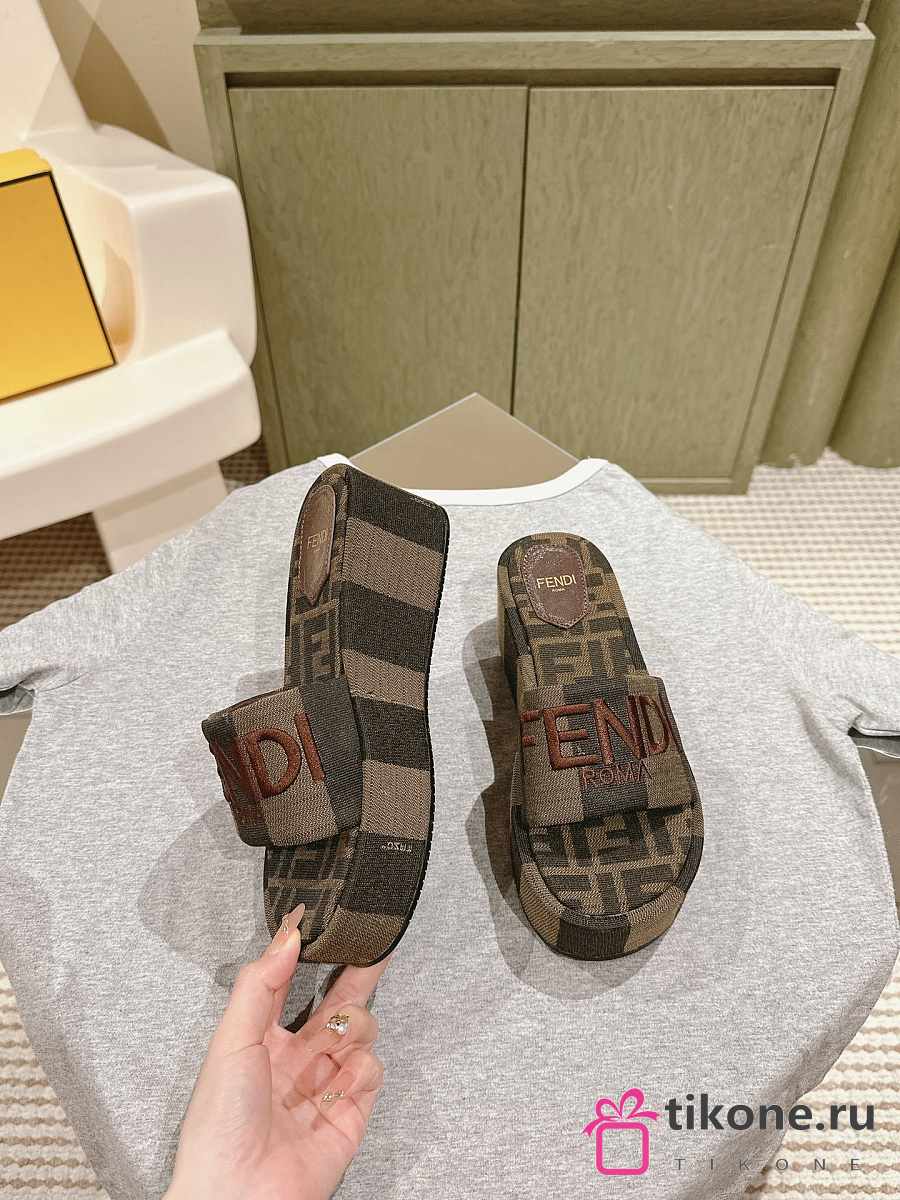 Fendi Sunshine Brown Fabric Flatform Slides 60mm