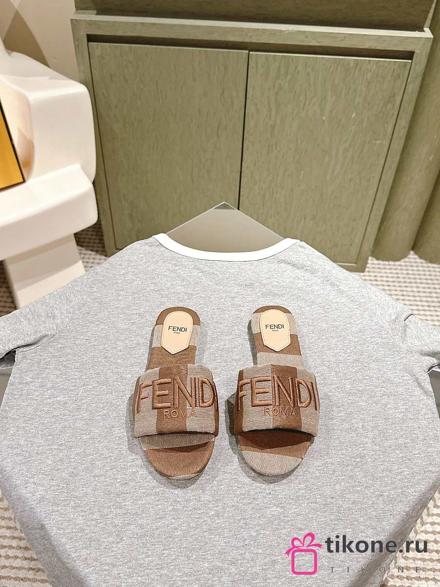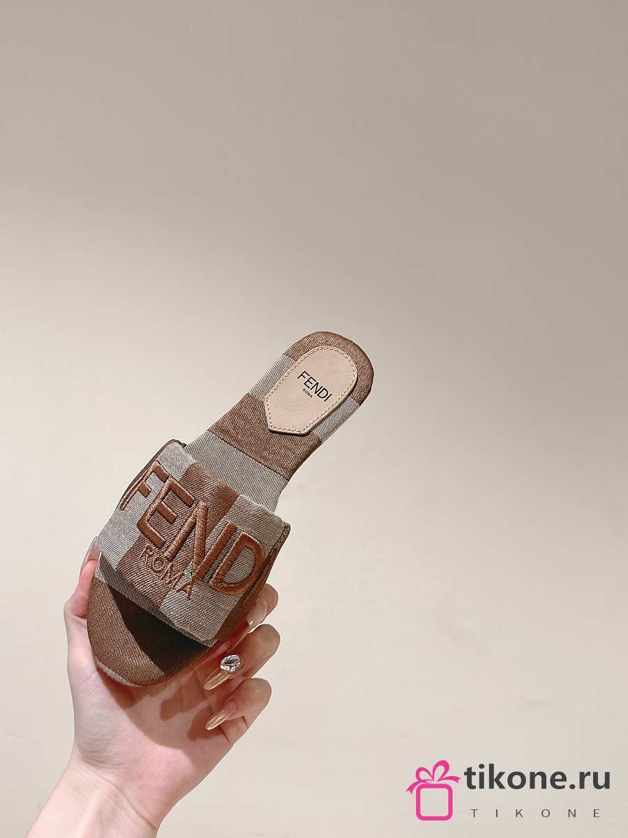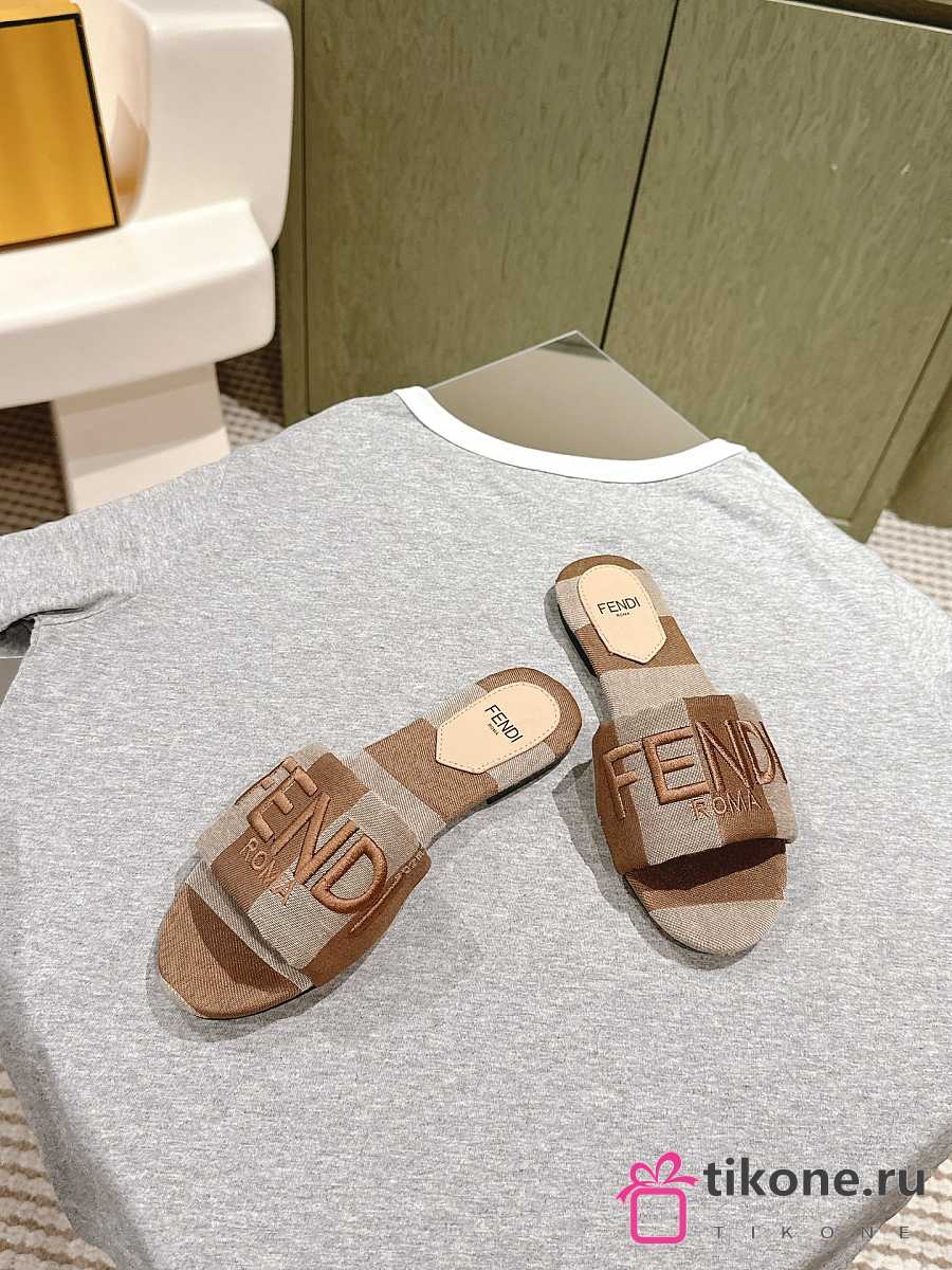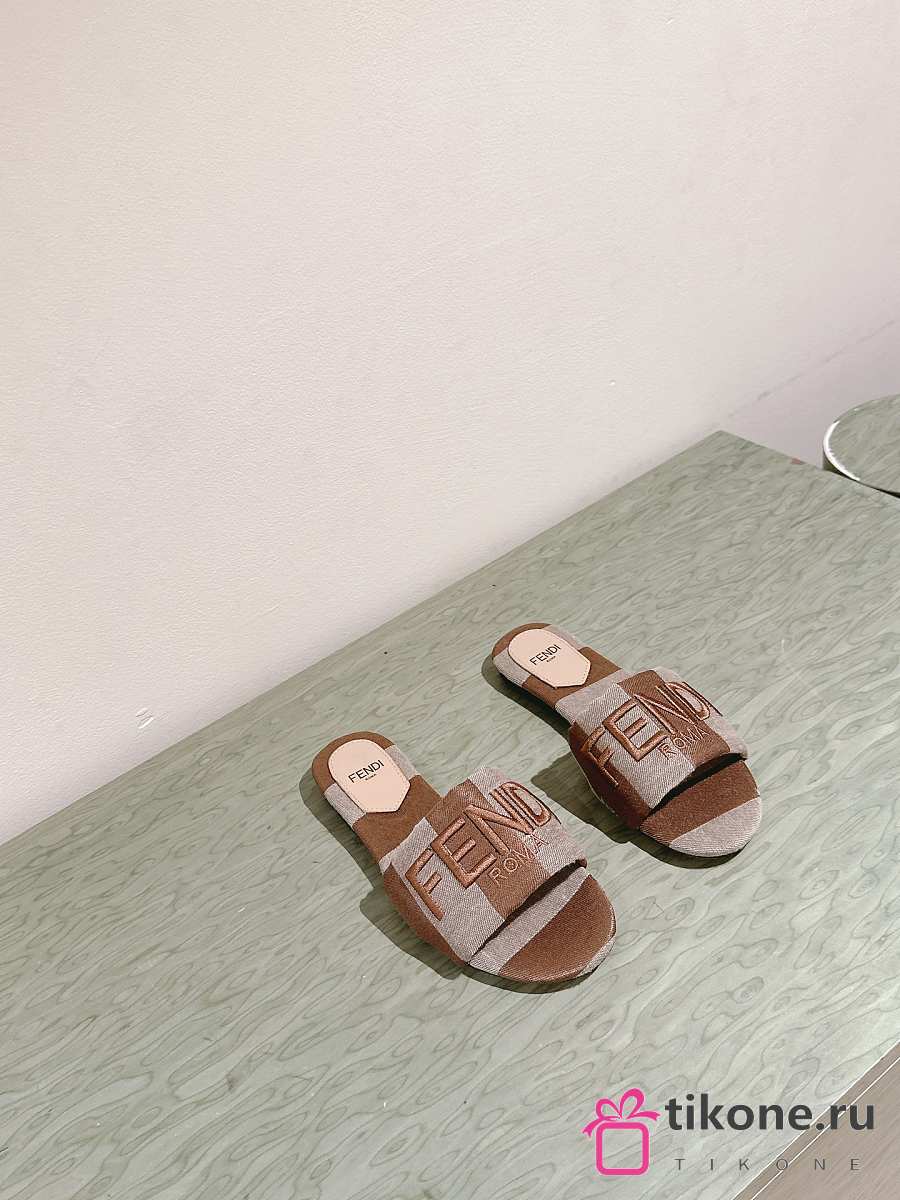 Fendi Sunshine Dove Grey Denim-Effect Jacquard Slides