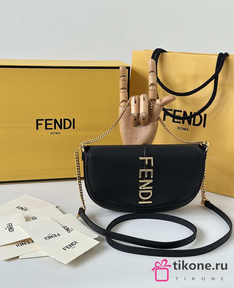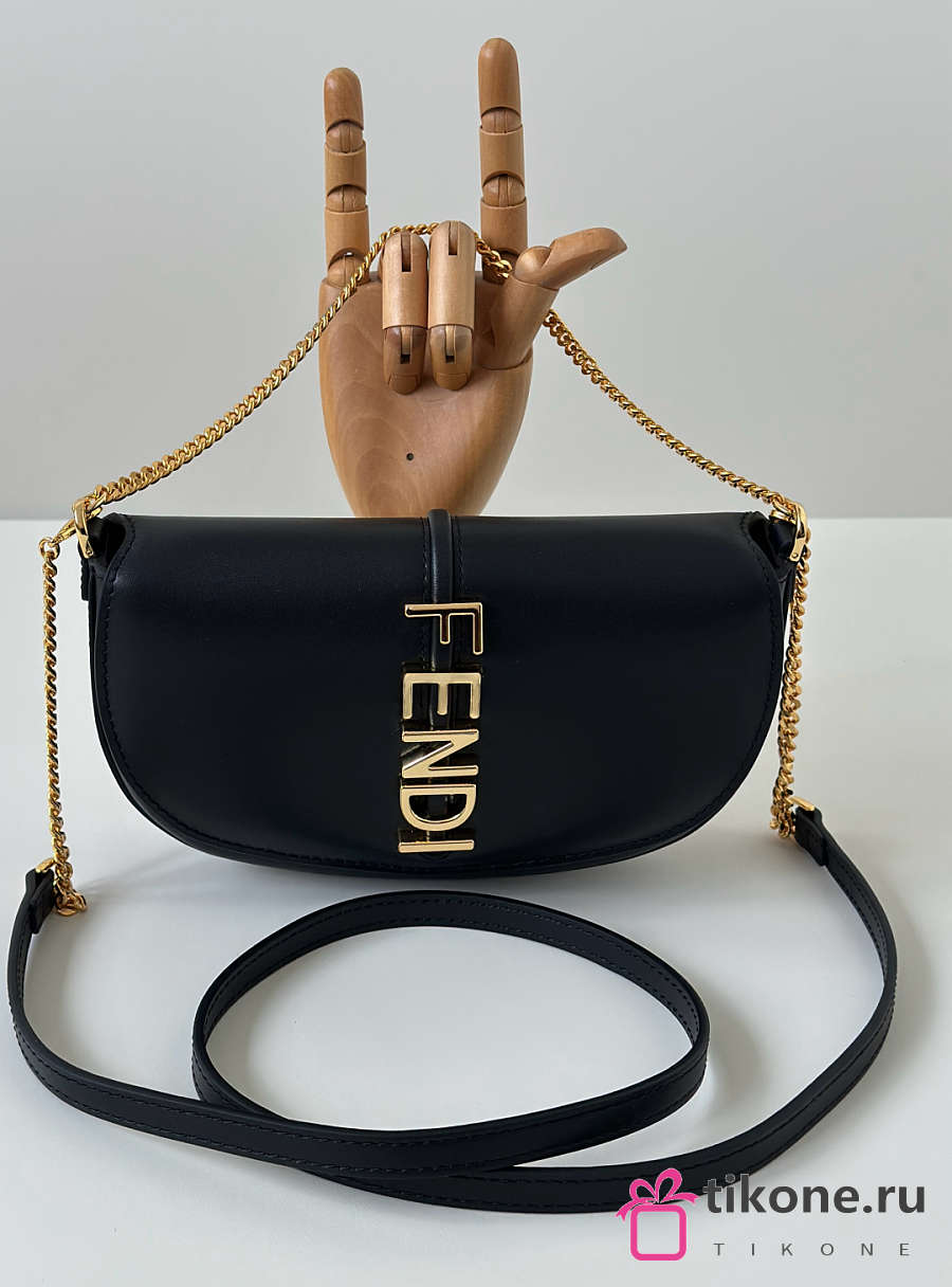 Fendigraphy Wallet on Chain Black Leather Wallet - 20.5x13x3.5cm