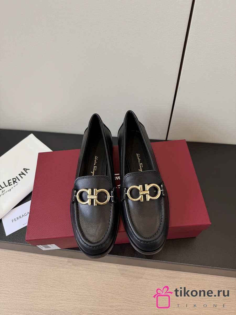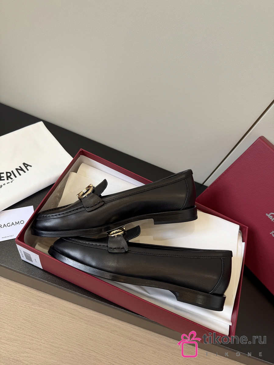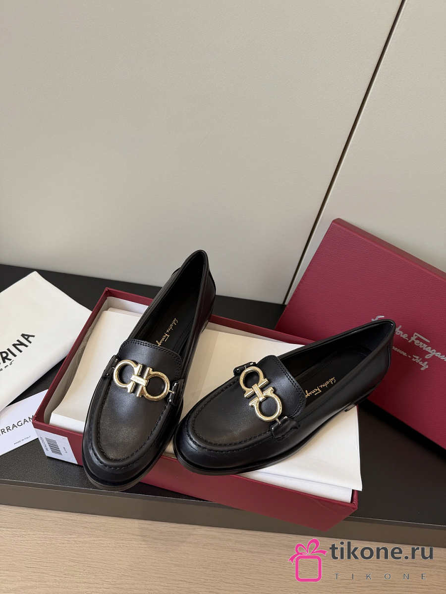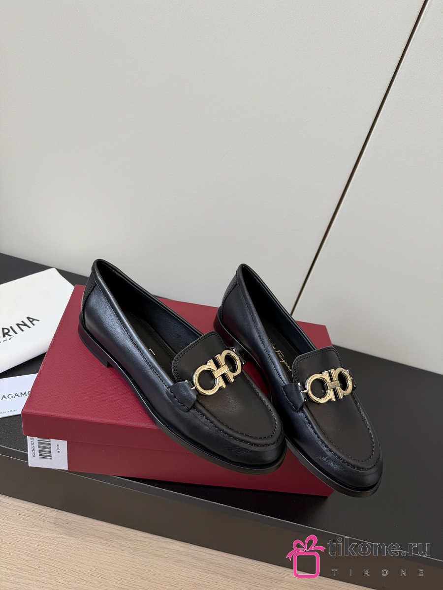 Ferragamo Moccasin With Gancini Ornament Calfskin Black