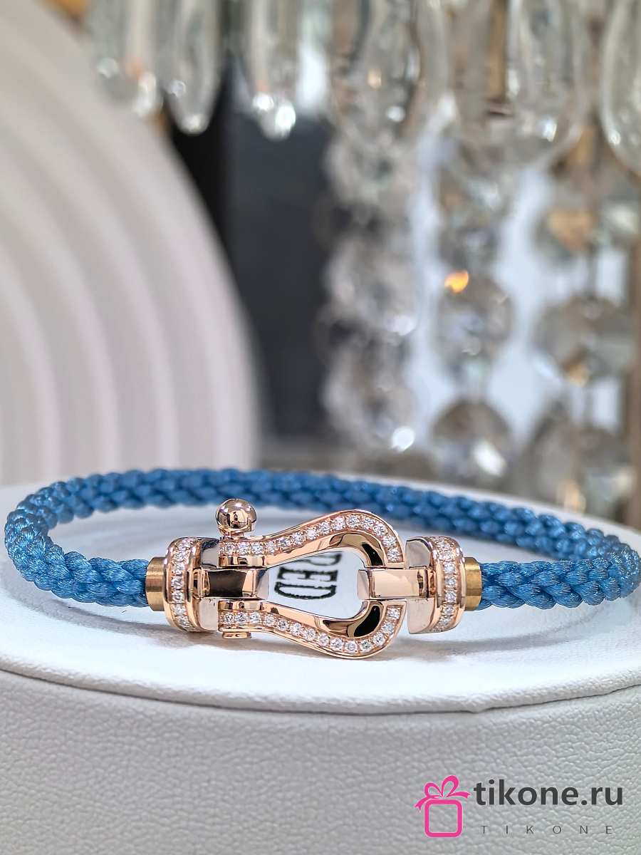 Fred Force 10 Bracelet 18k Rose Gold and Diamonds Large Model Blue
