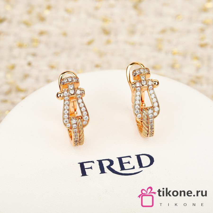 Fred Force 10 Rise Earrings Large Model 18k Rose Gold Diamond Full Paved 8B0343