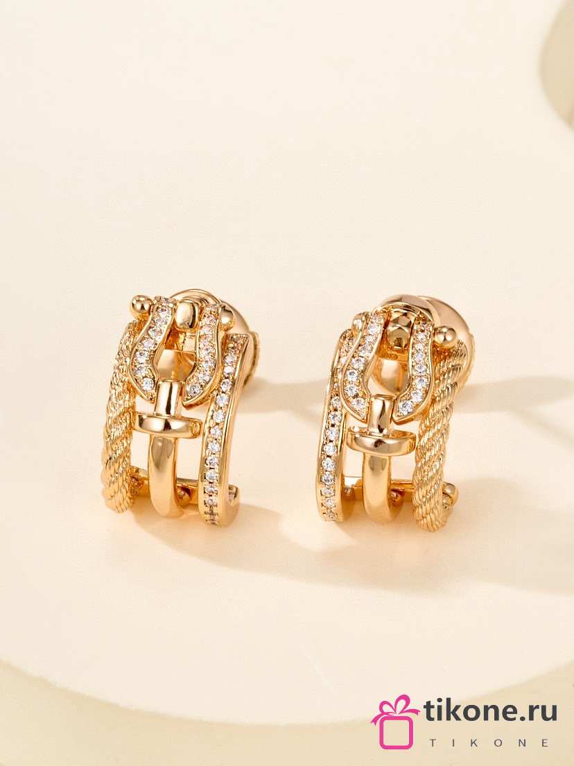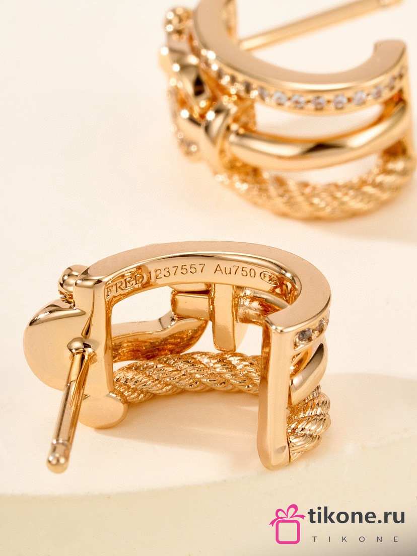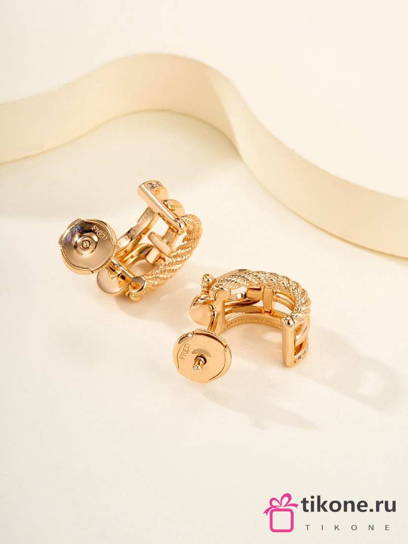 Fred Force 10 Rise Earrings Small Model 18k Rose Gold Diamonds Half Paved 8B0341