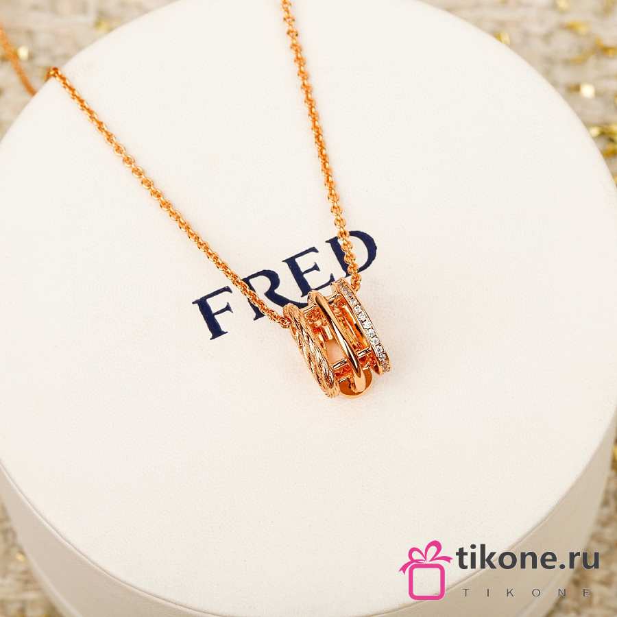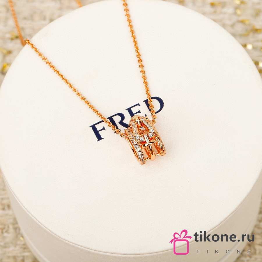 Fred Force 10 Rise Necklace 18k Rose Gold Diamonds Half Paved 3B0312