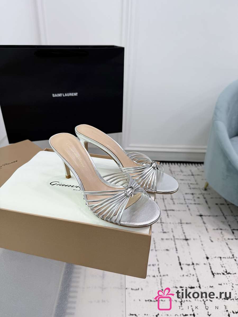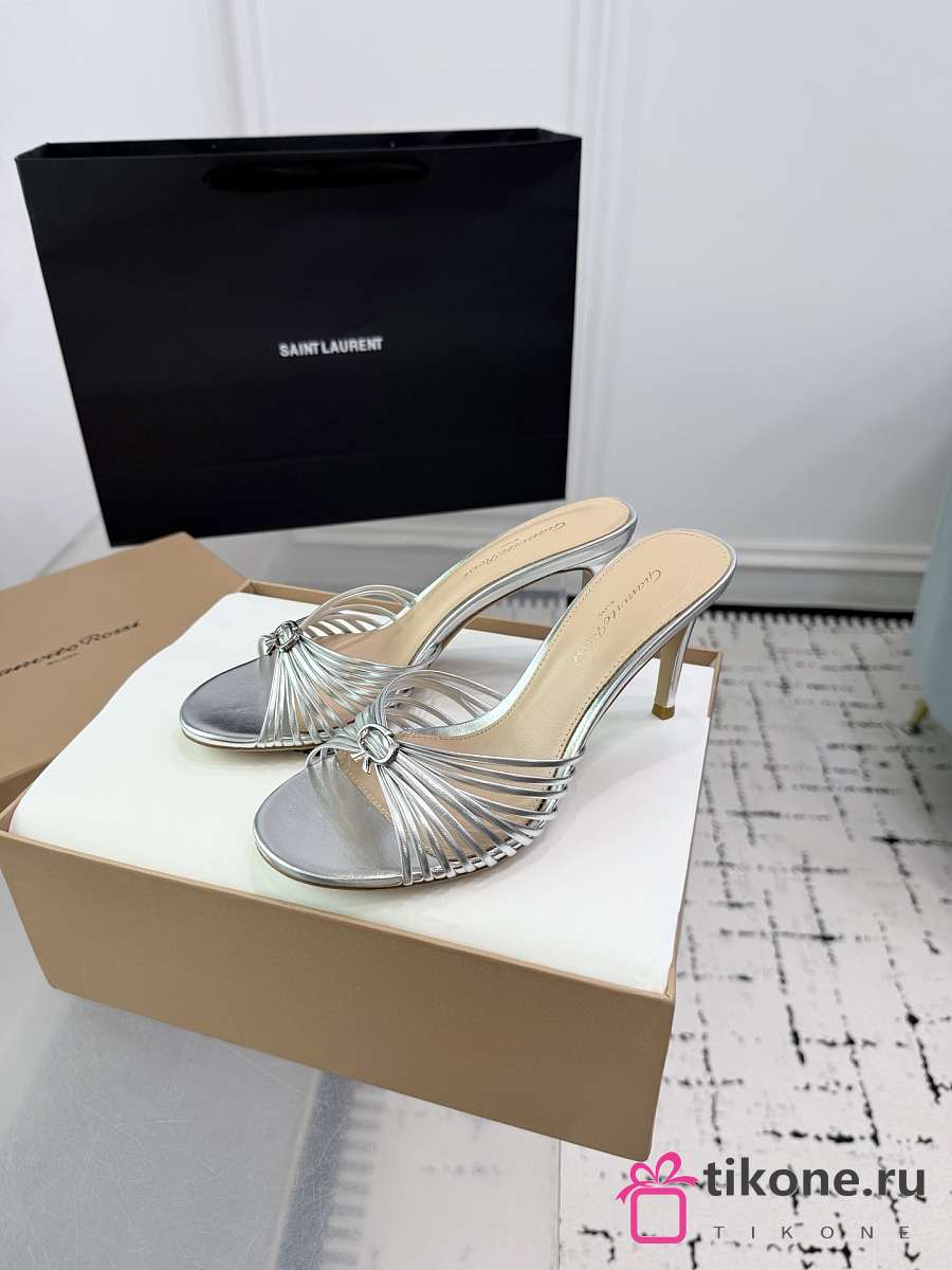 Loewe Petal Sandal In Metallic Calfskin Silver 4.5cm