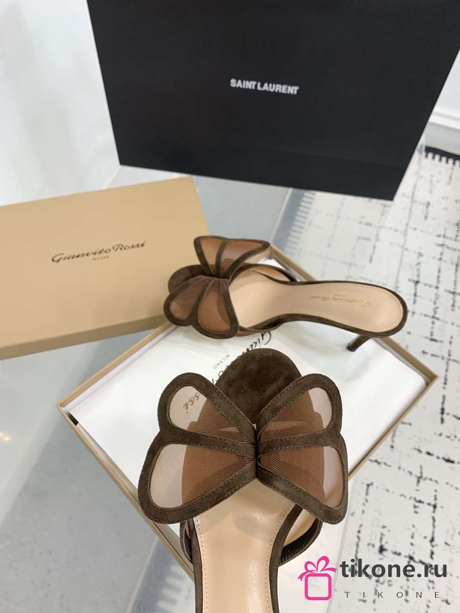 Gianvito Rossi Ilia 75 Mesh Trimmed Suede Sandals Brown