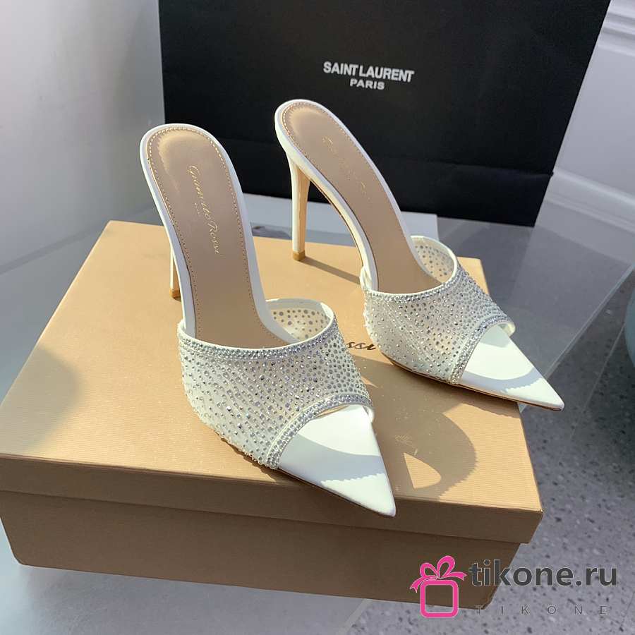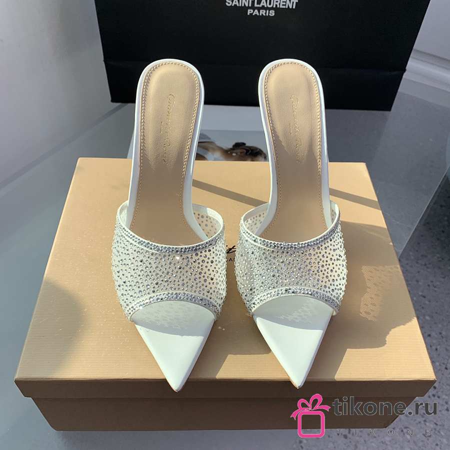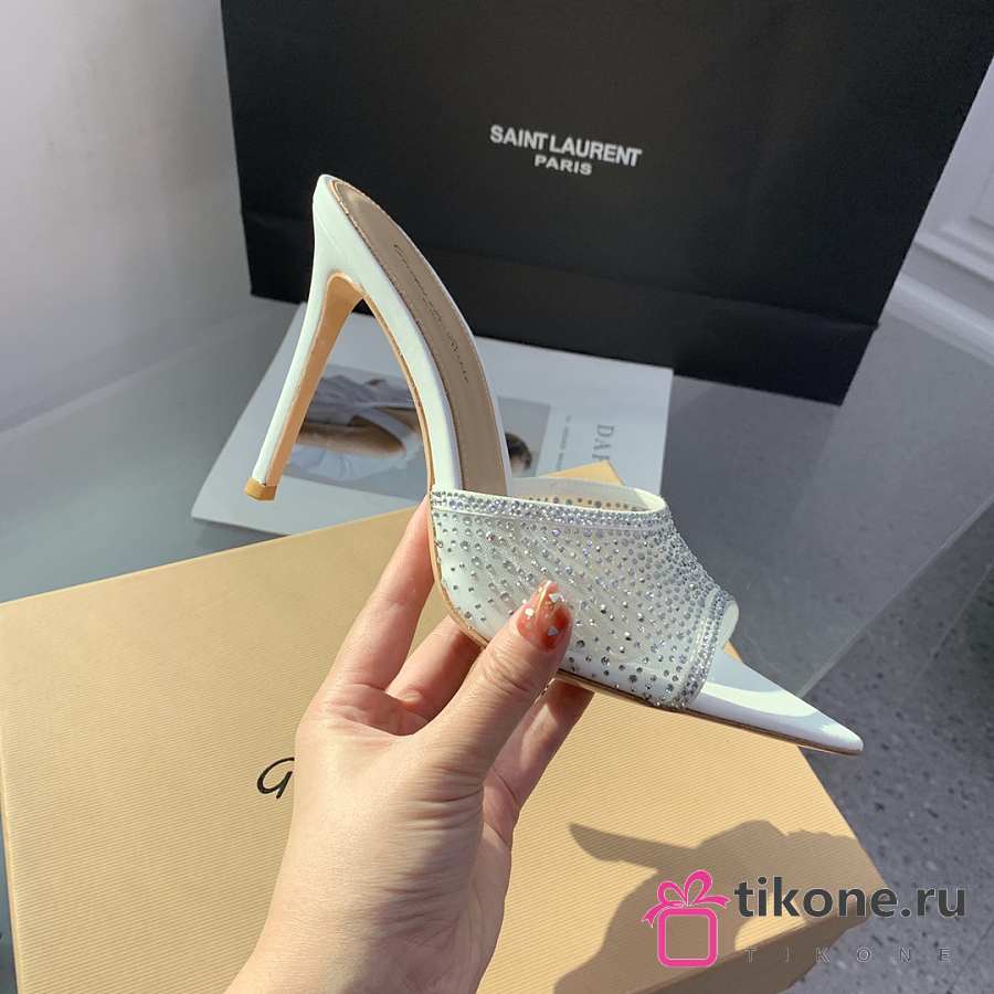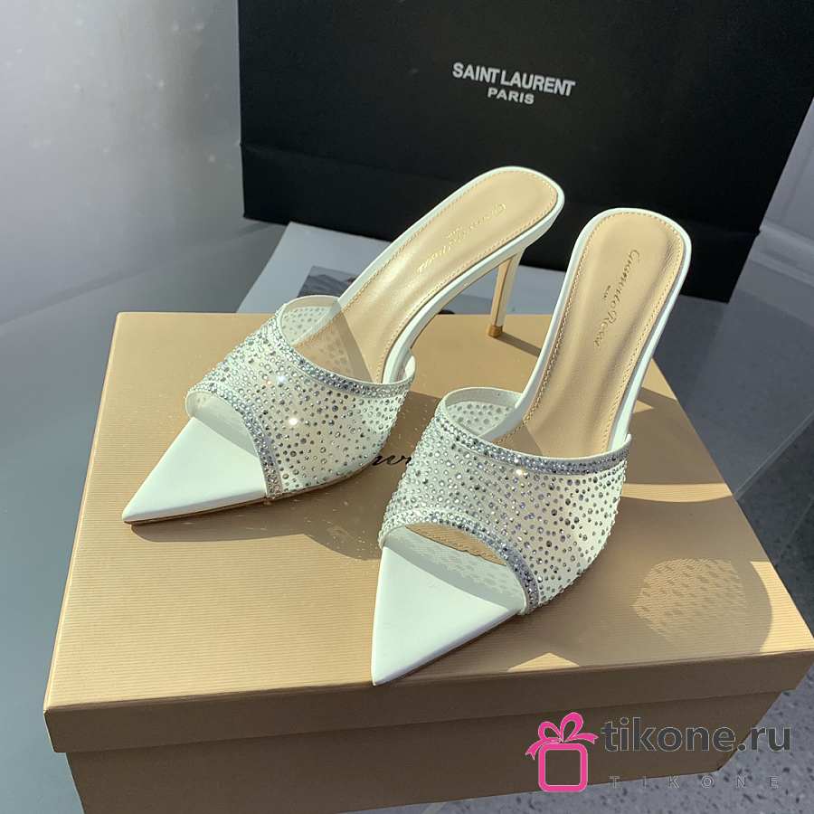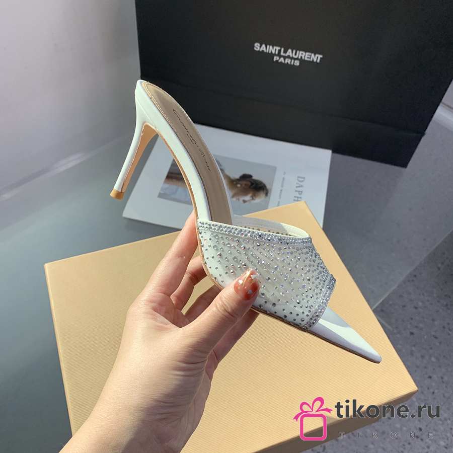 Chanel Calfskin Studded Slingback Clog Sandals White