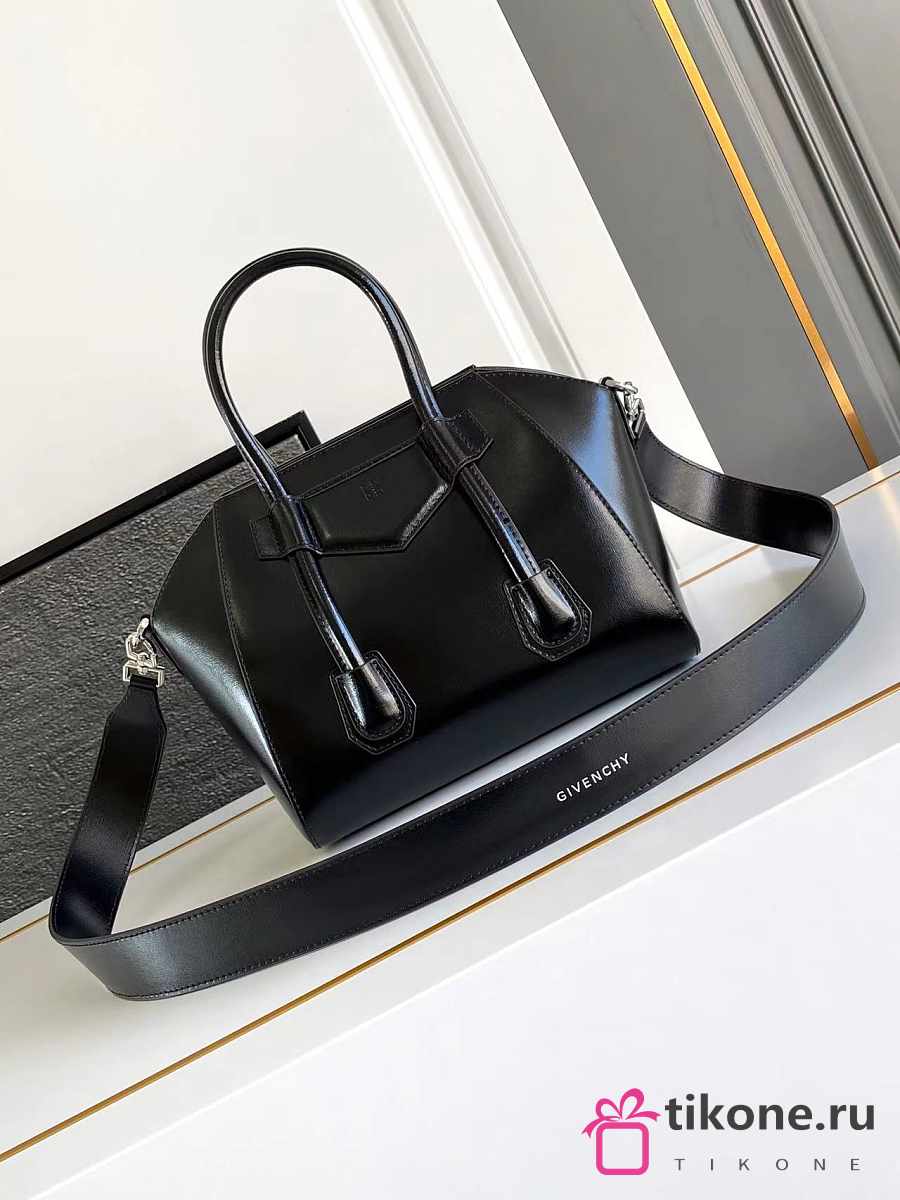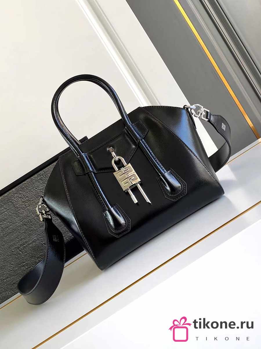 Givenchy Mini Antigona Lock Bag In Box Leather Black Silver - 22x18x13cm