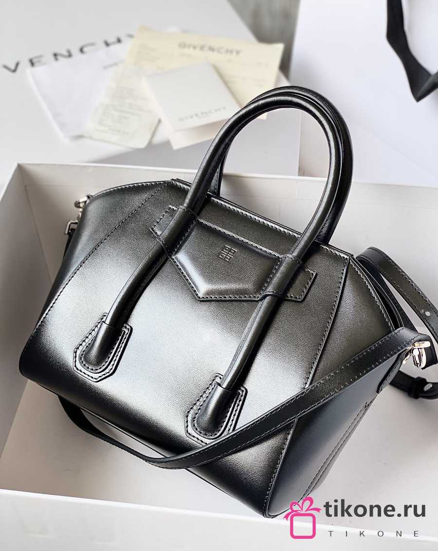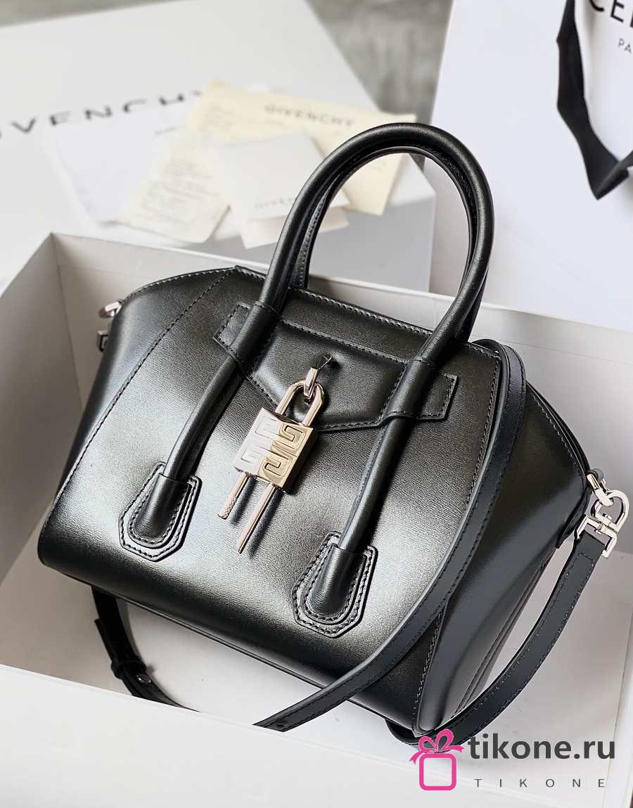 Givenchy Mini Antigona Lock Bag In Box Leather Black Silver - 29x20x13cm