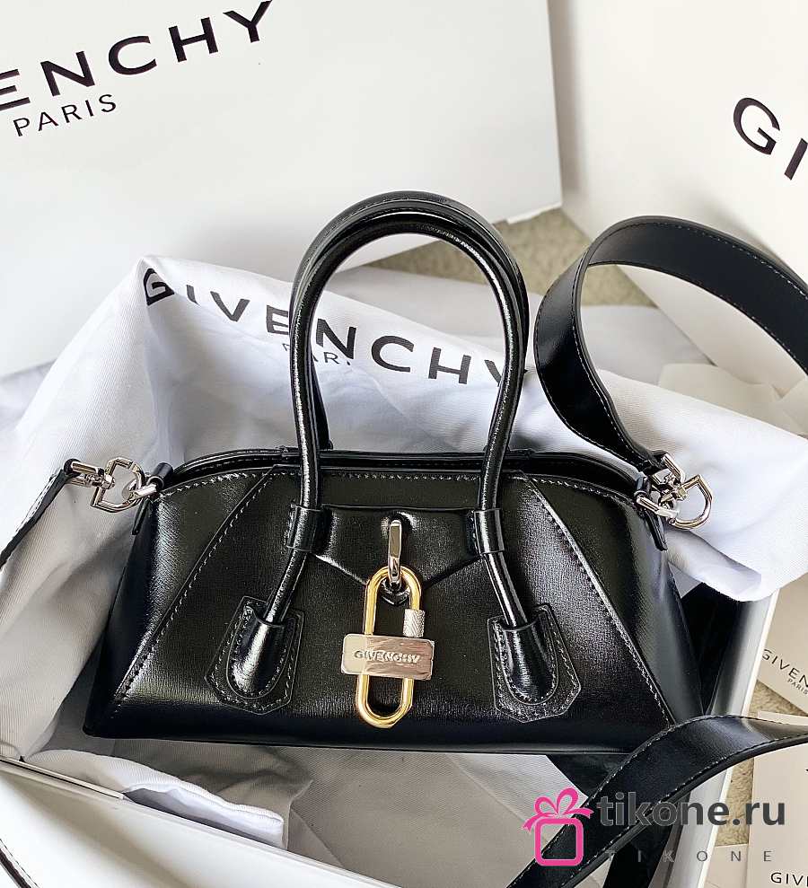 Givenchy Mini Antigona Lock Stretch In Box Leather Black - 22x12x8cm