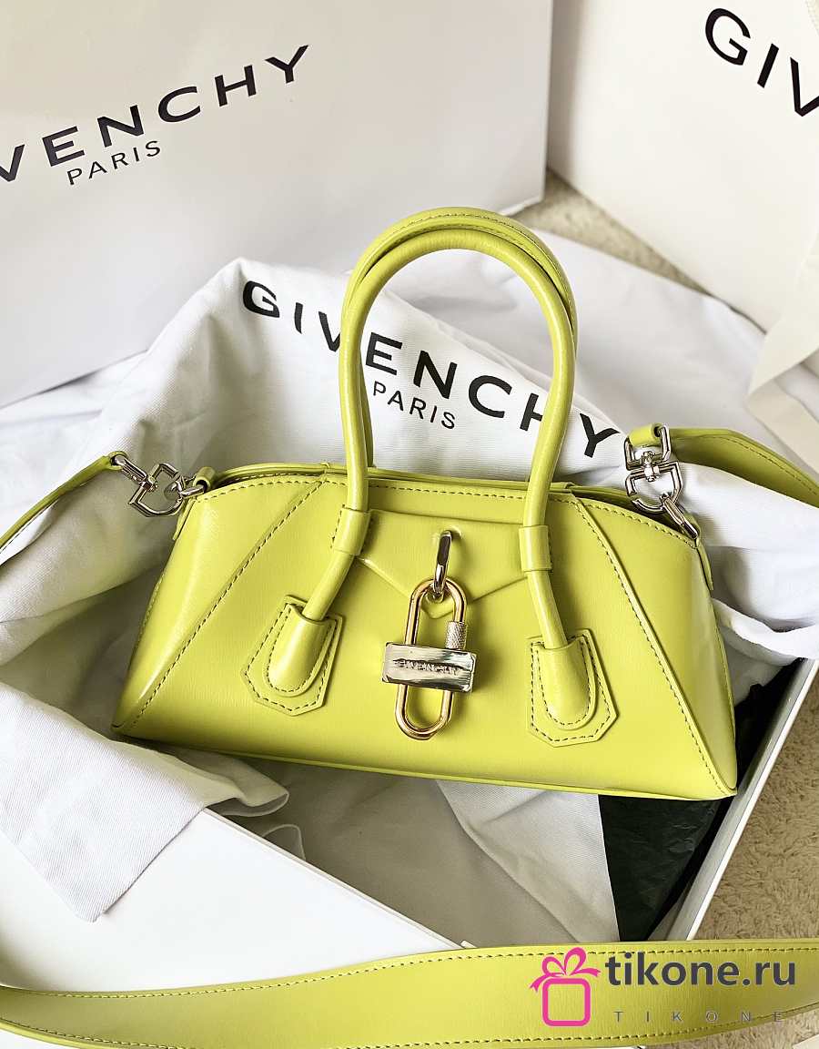 Givenchy Mini Antigona Lock Stretch In Box Leather Green - 22x12x8cm