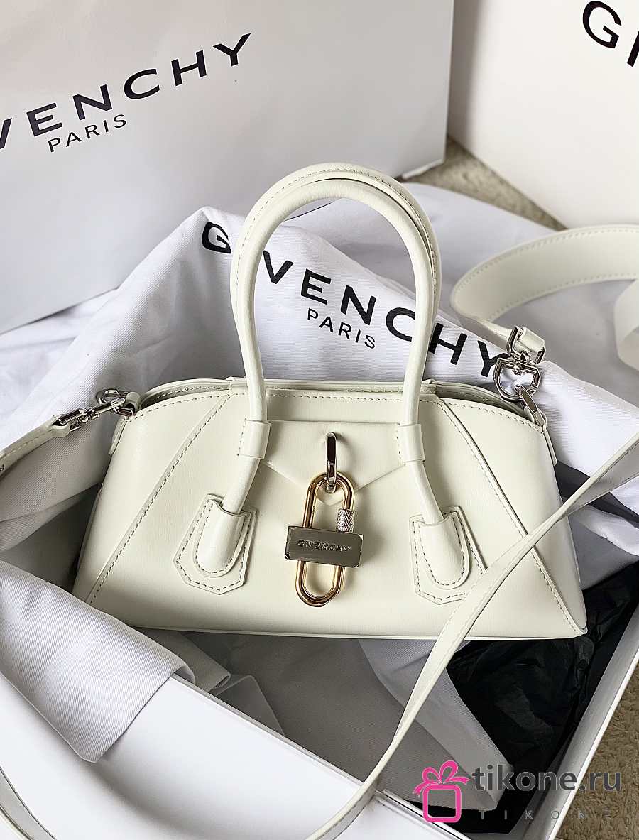Givenchy Mini Antigona Lock Stretch In Box Leather White - 22x12x8cm