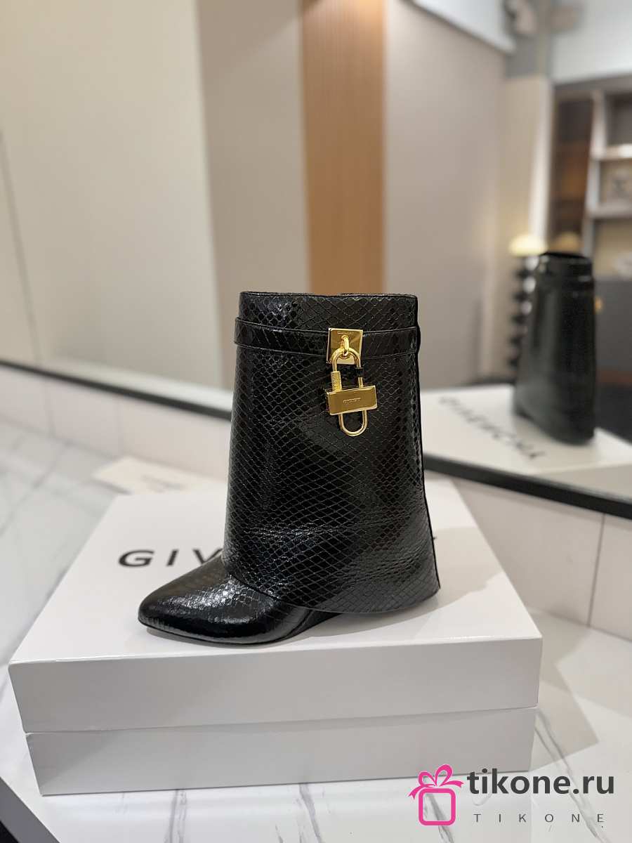 Givenchy Shark Lock Ankle Boots In Snake Effect Leather Black