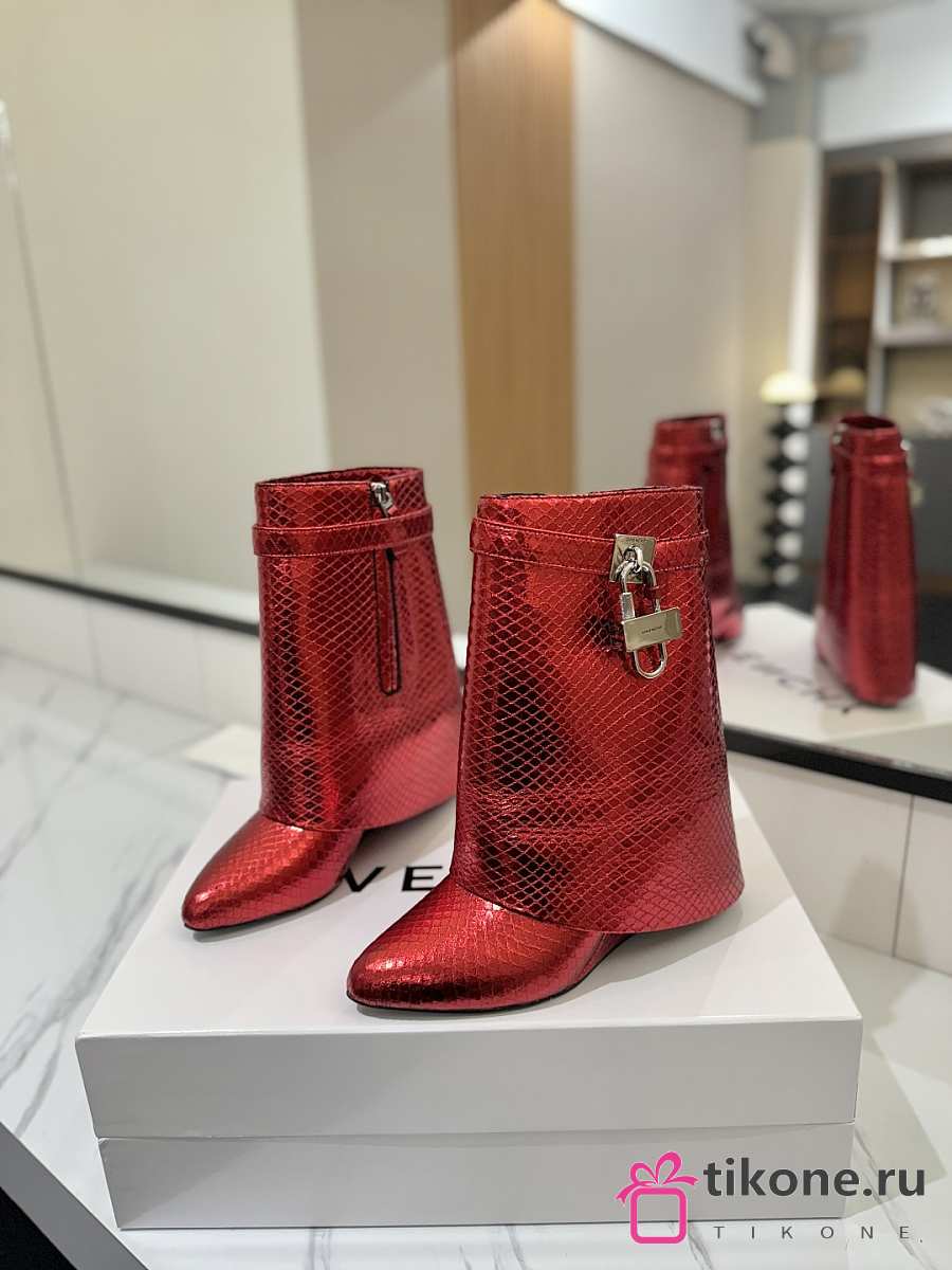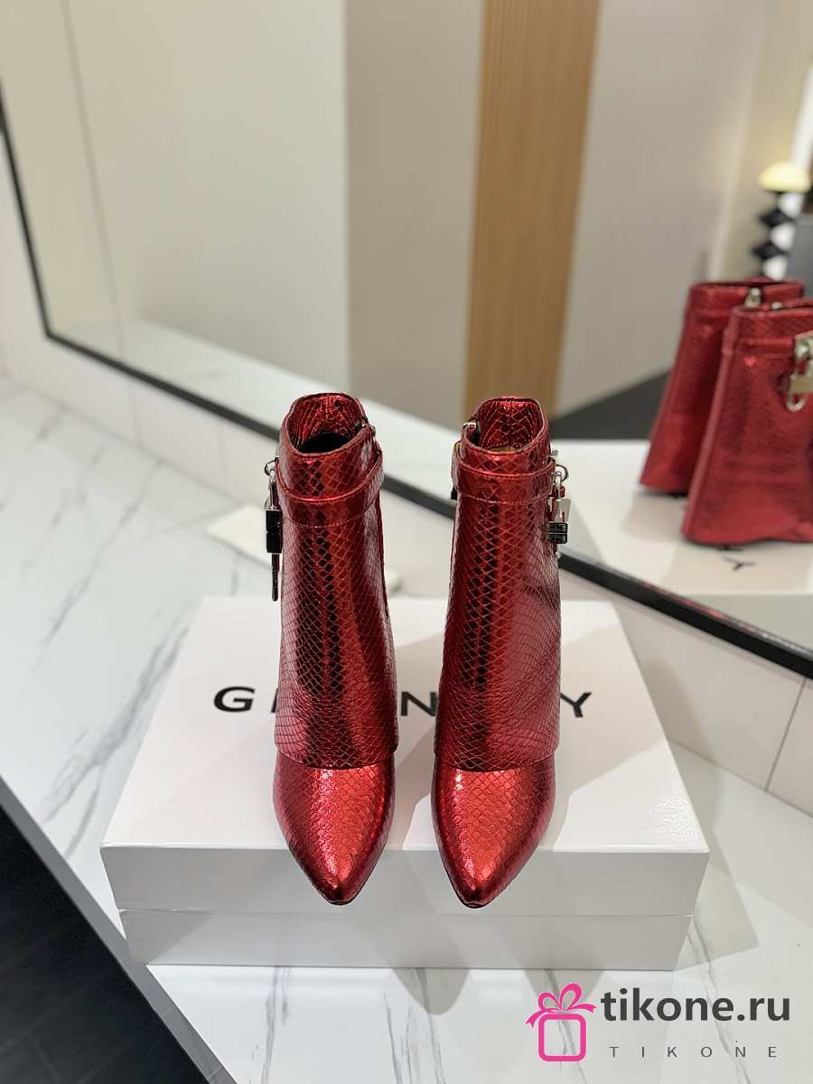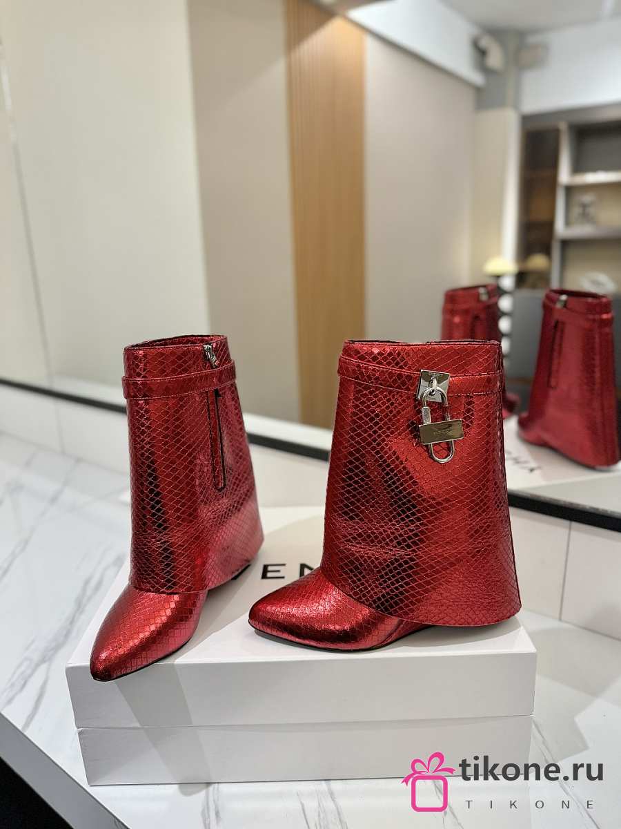 Givenchy Shark Lock Ankle Boots In Snake Effect Leather Red