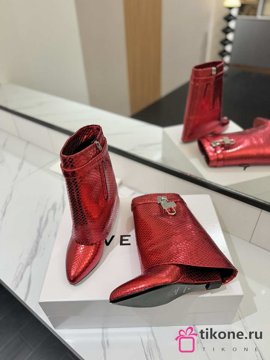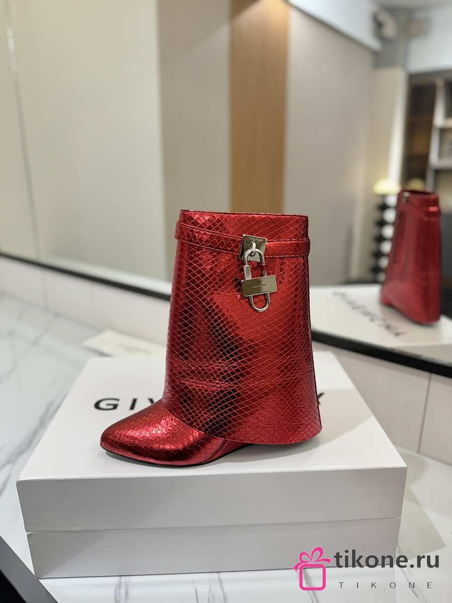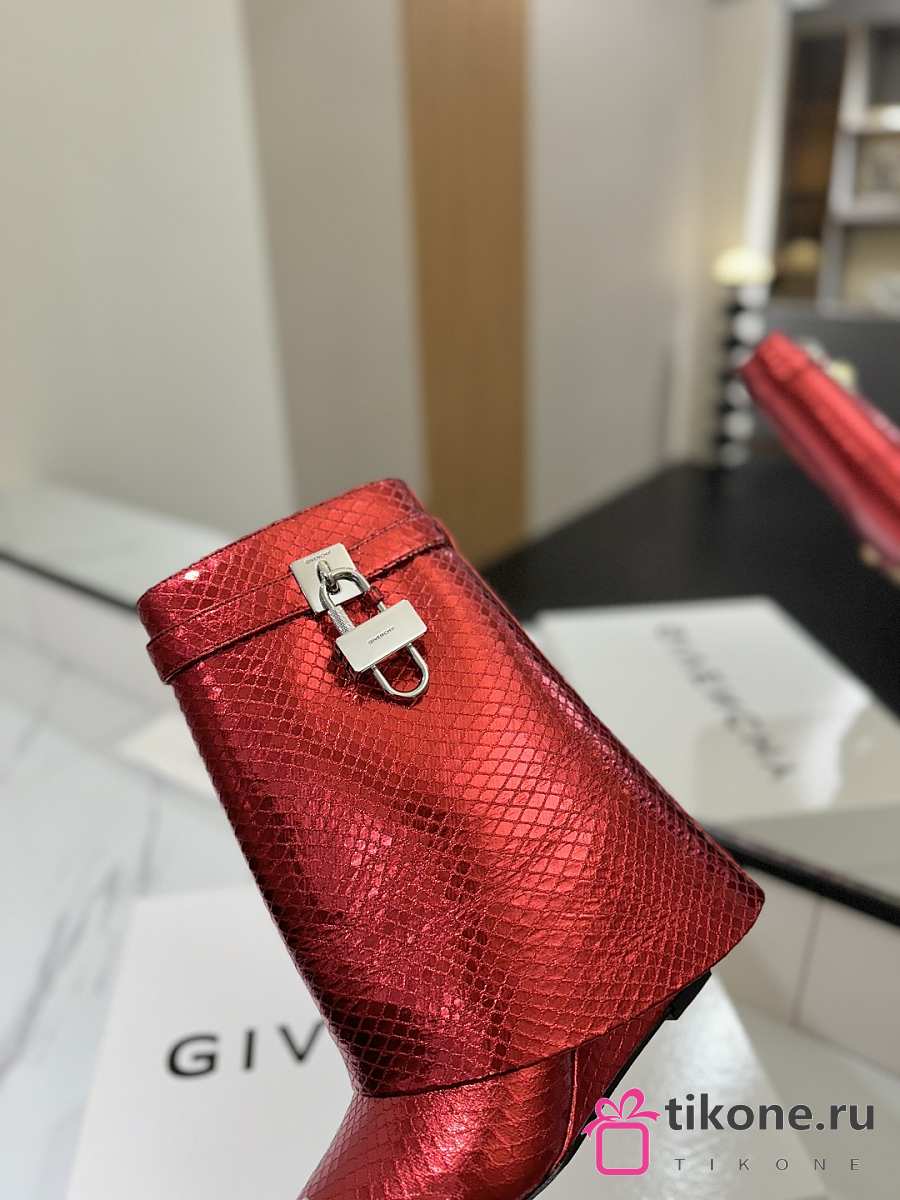 Givenchy Shark Lock Ankle Boots In Snake Effect Leather Red