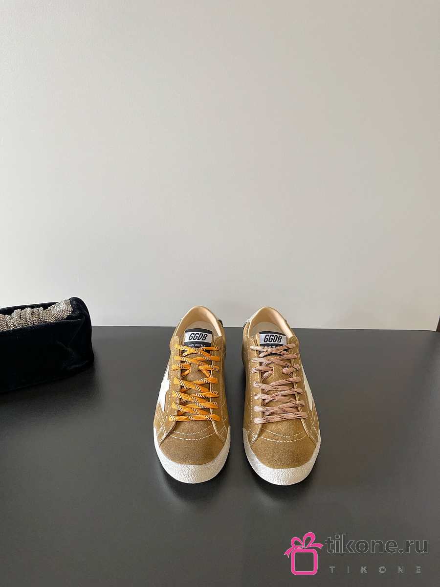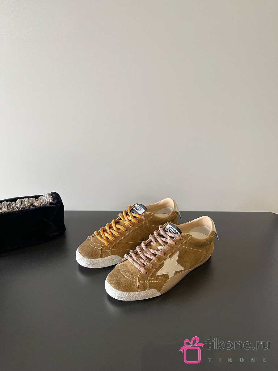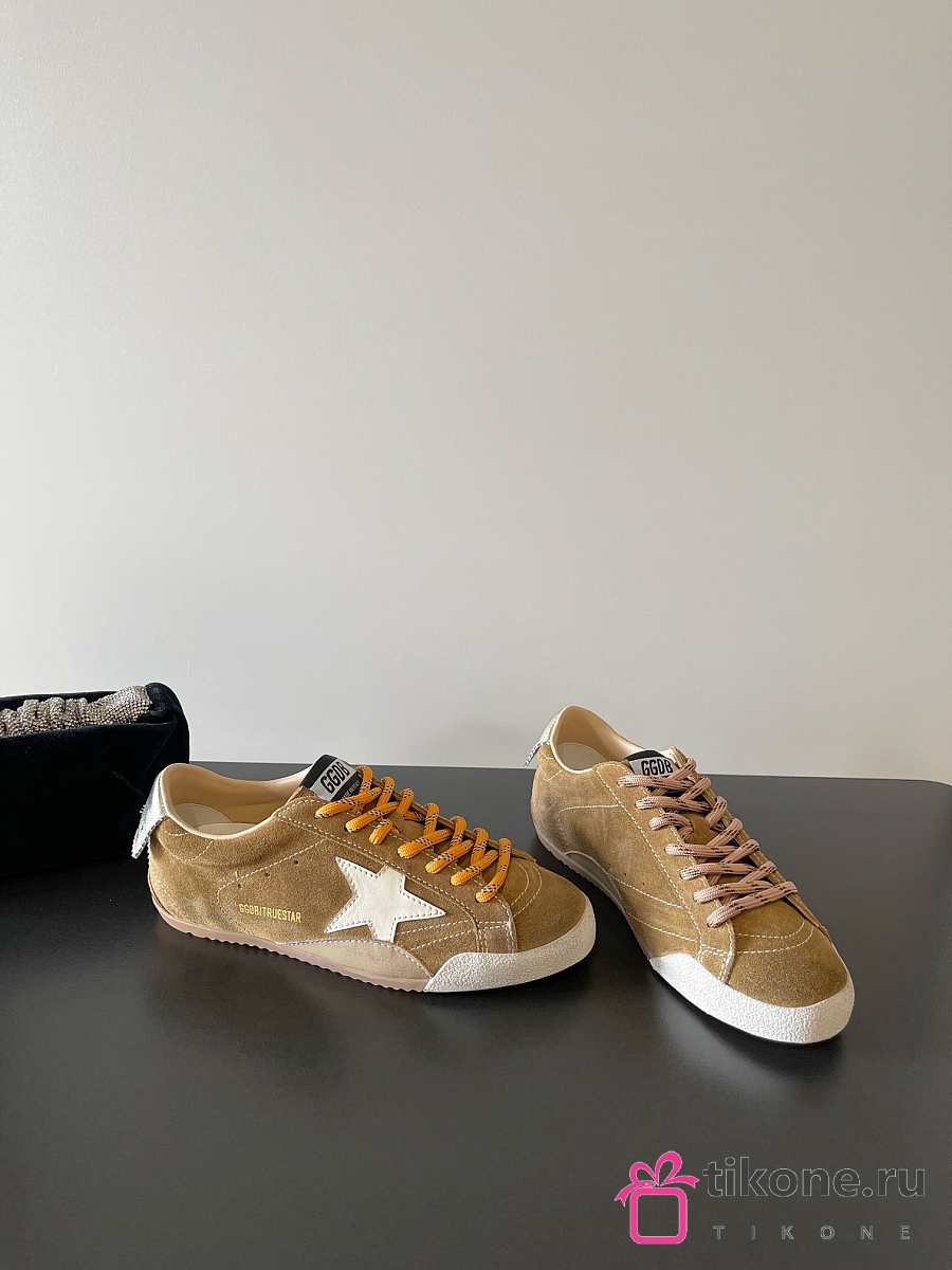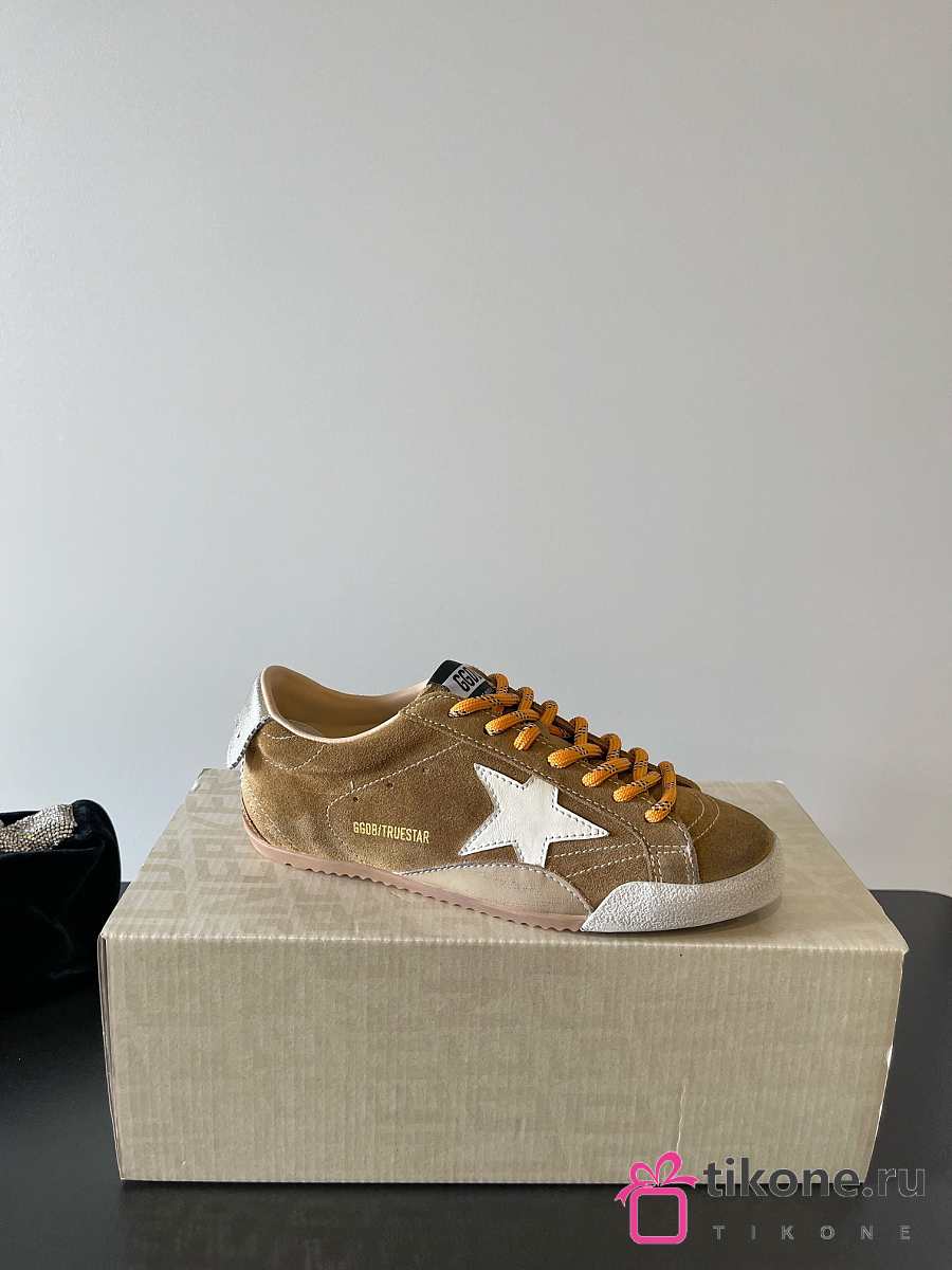 Golden Goose True Star In Tobacco Colored Suede With White Star And Platinum Heel Tab