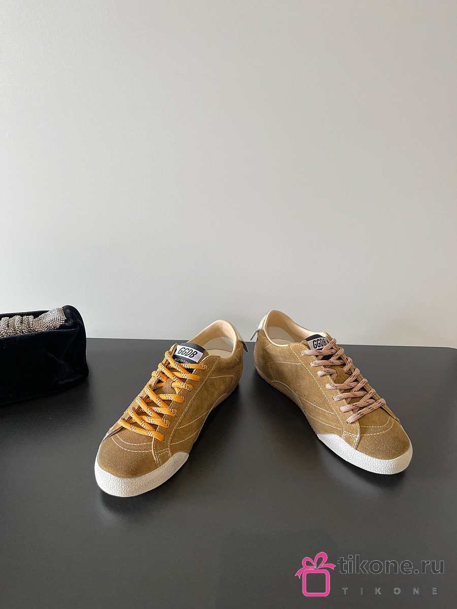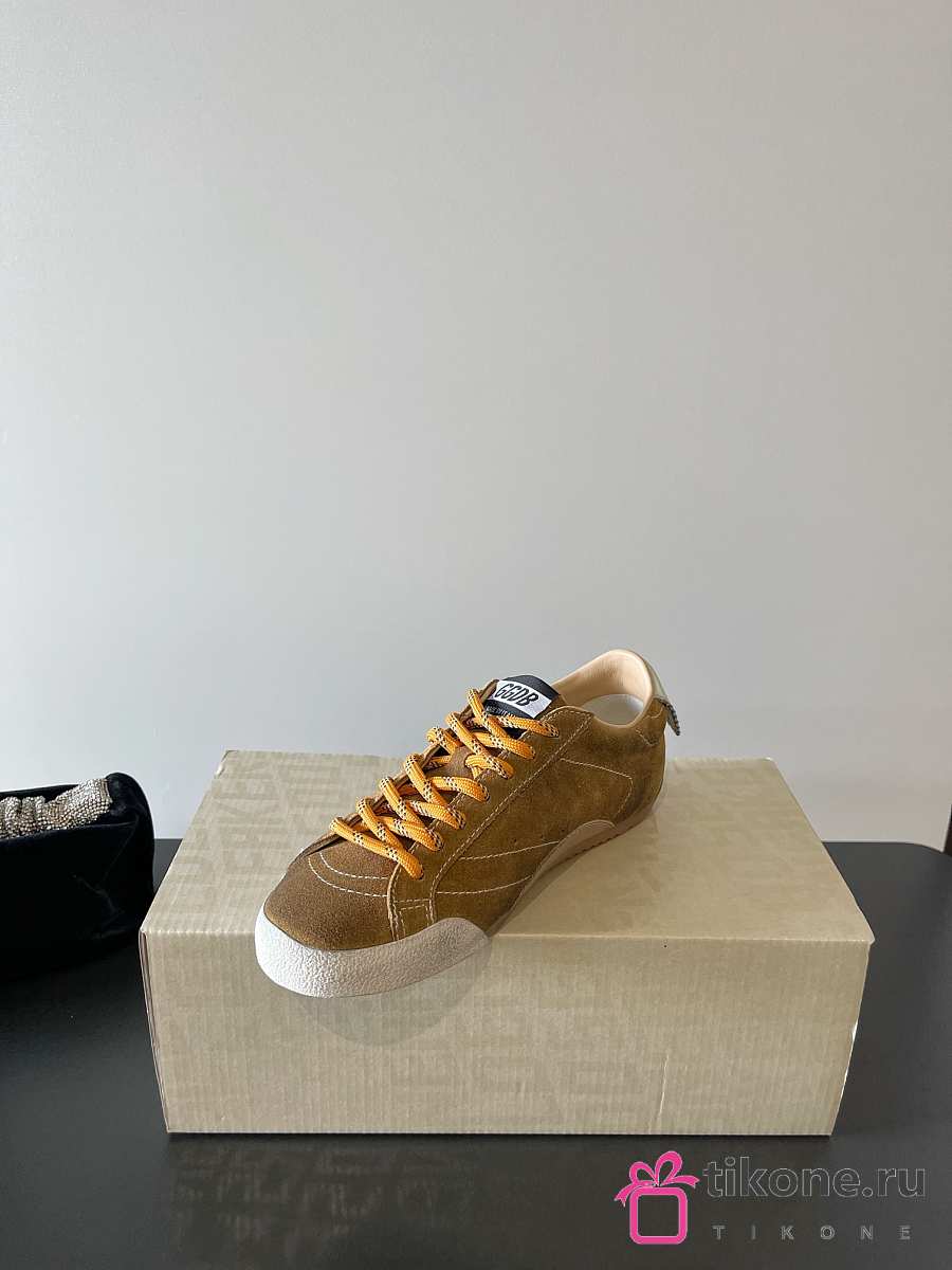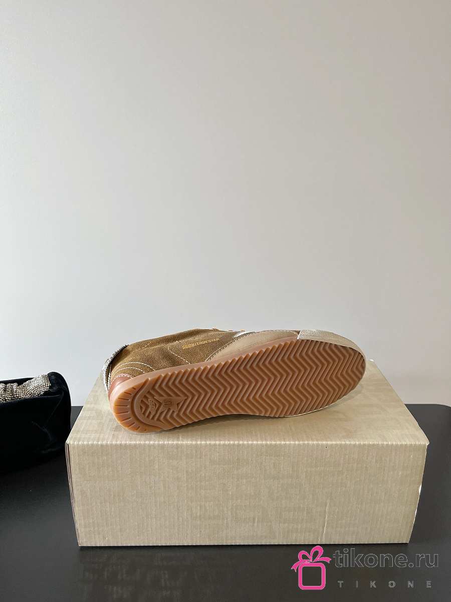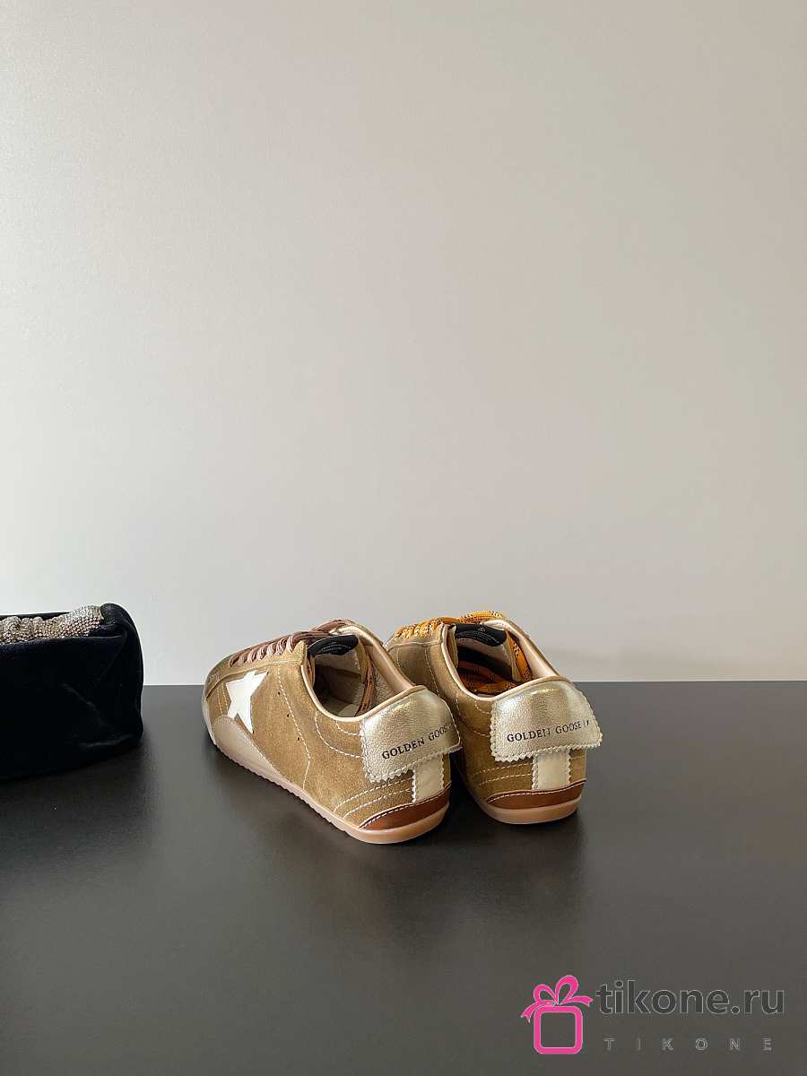 Golden Goose True Star In Tobacco Colored Suede With White Star And Platinum Heel Tab