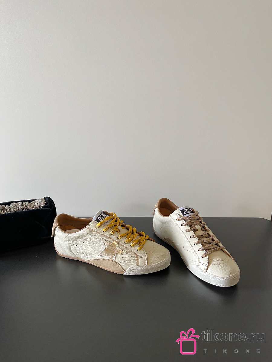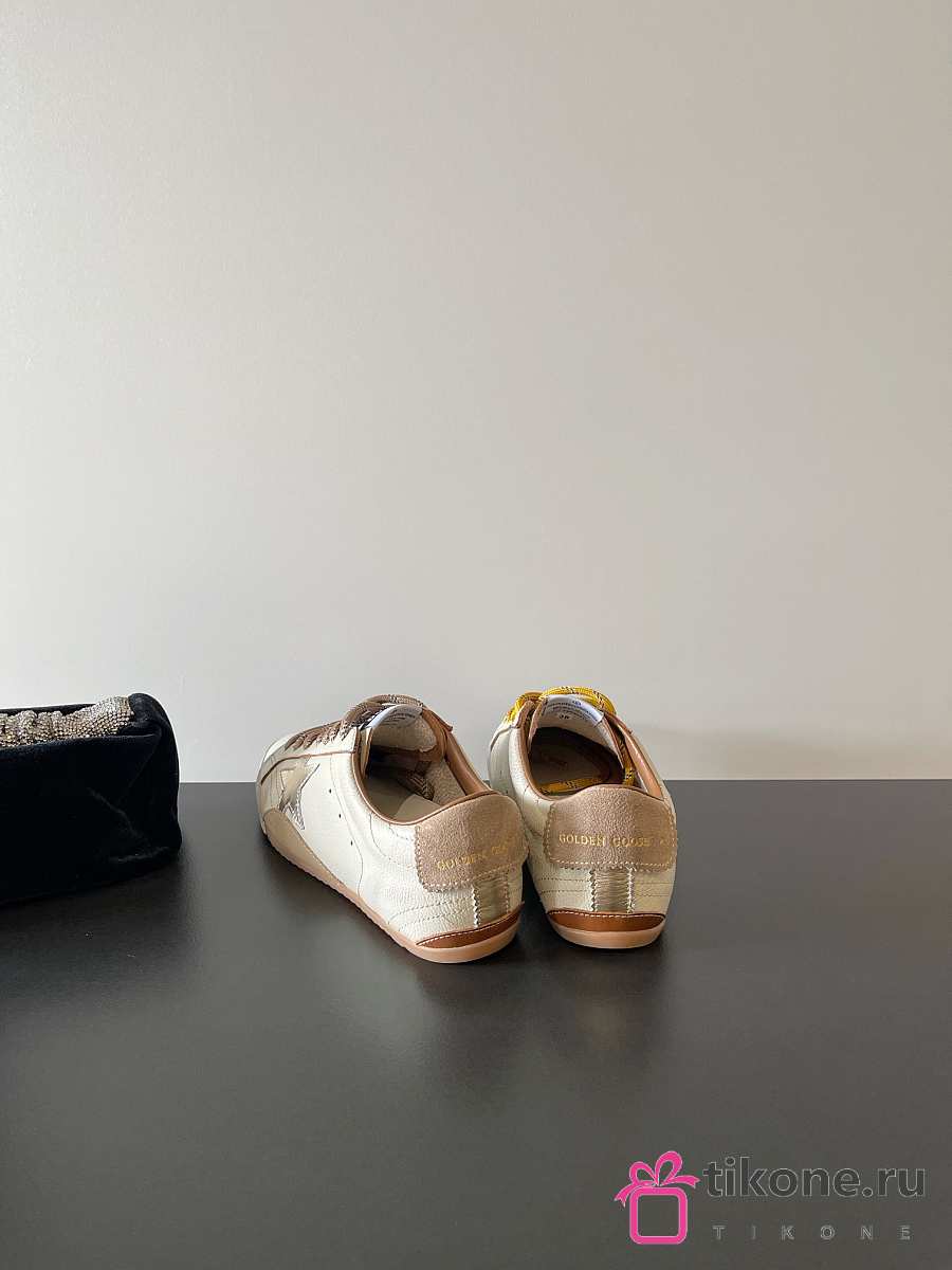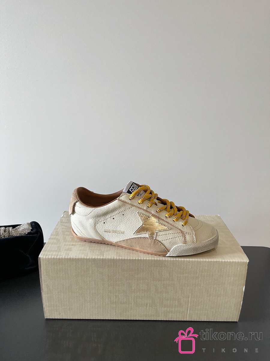 Golden Goose True Star In White Nappa Leather With Gold Star And Beige Suede Heel Tab