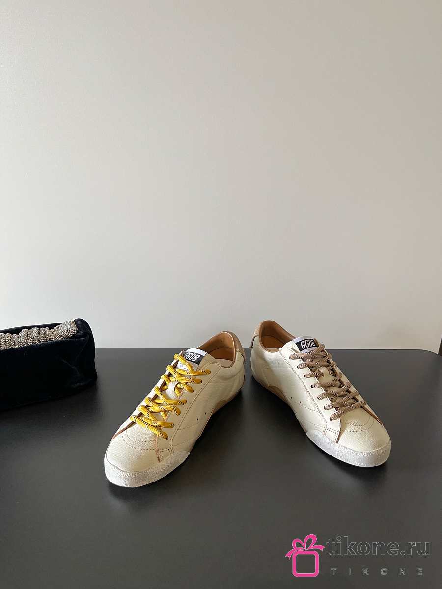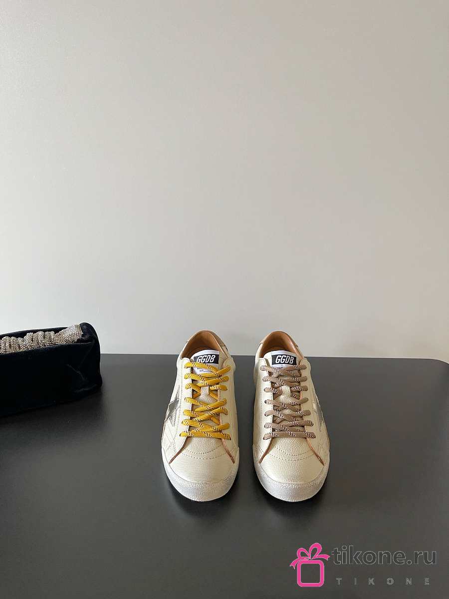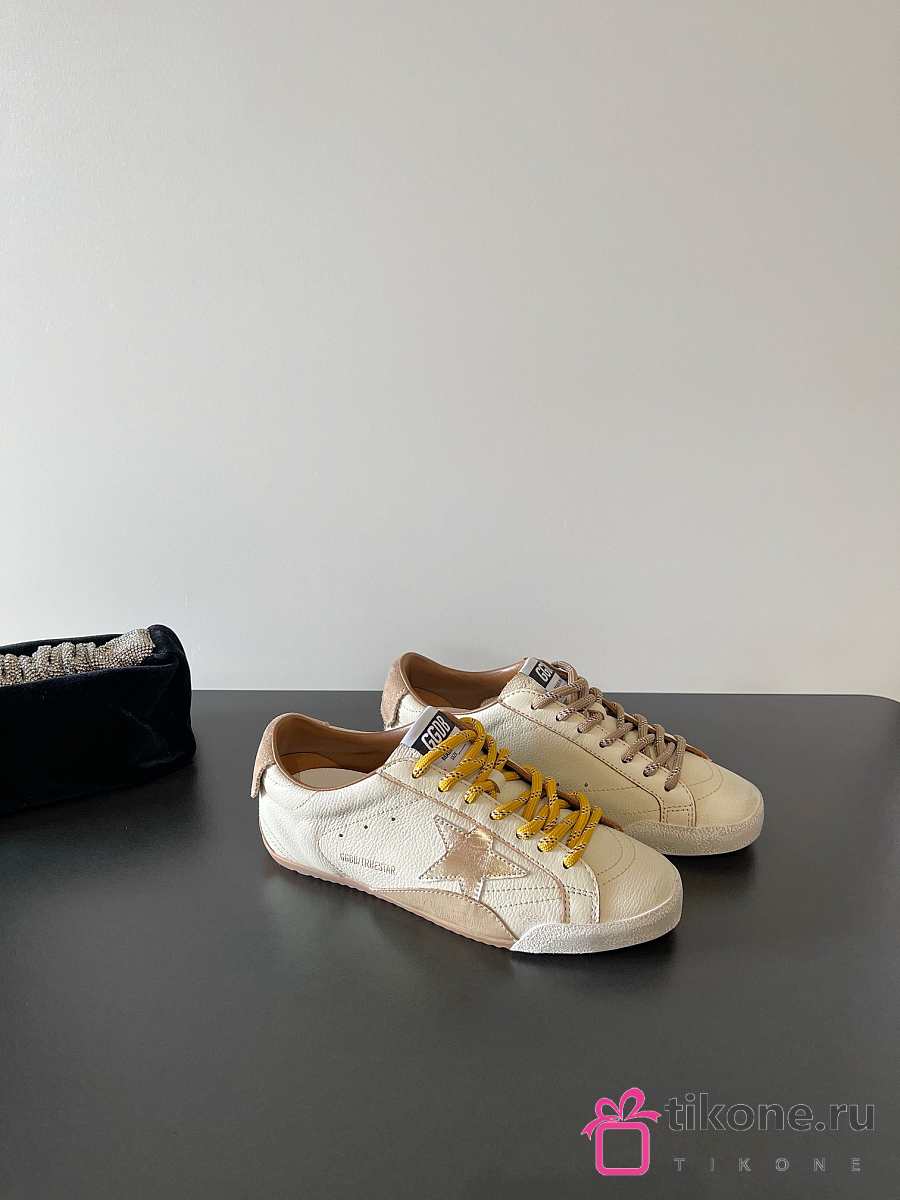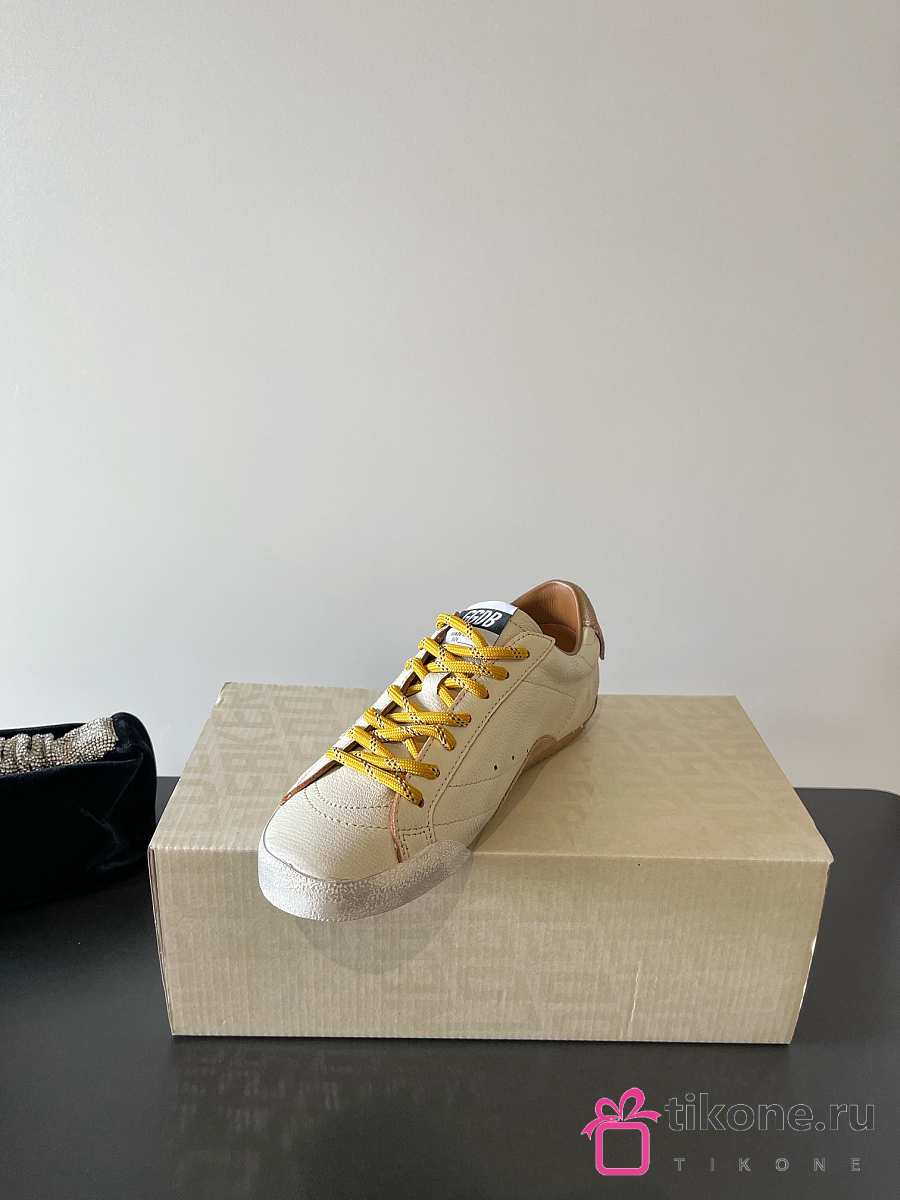 Golden Goose True Star In White Nappa Leather With Gold Star And Beige Suede Heel Tab