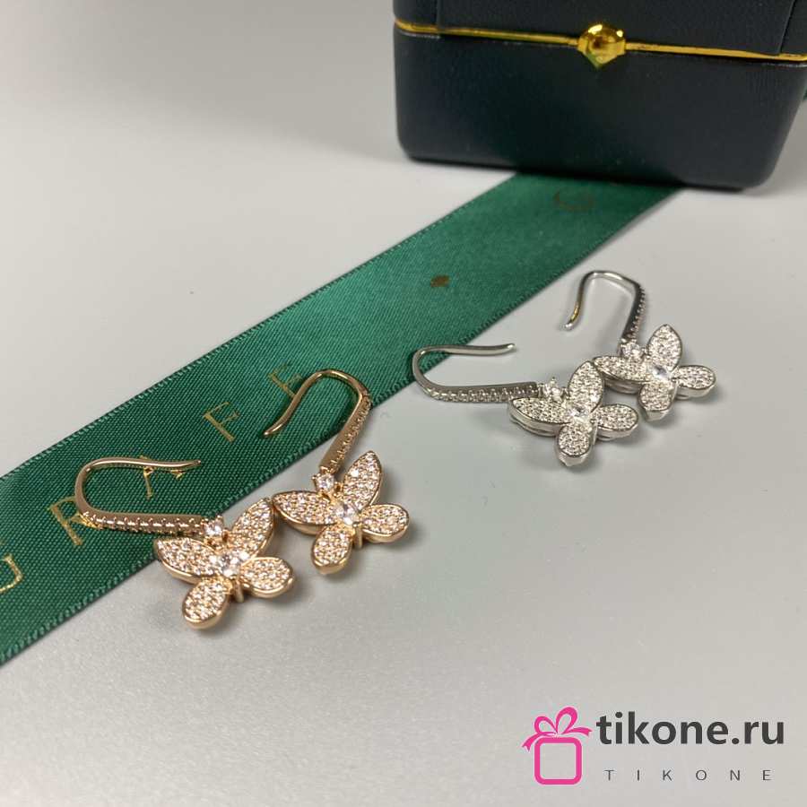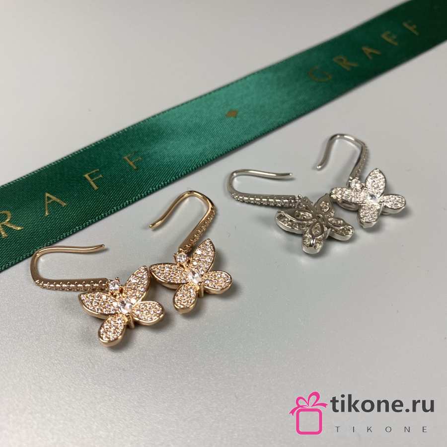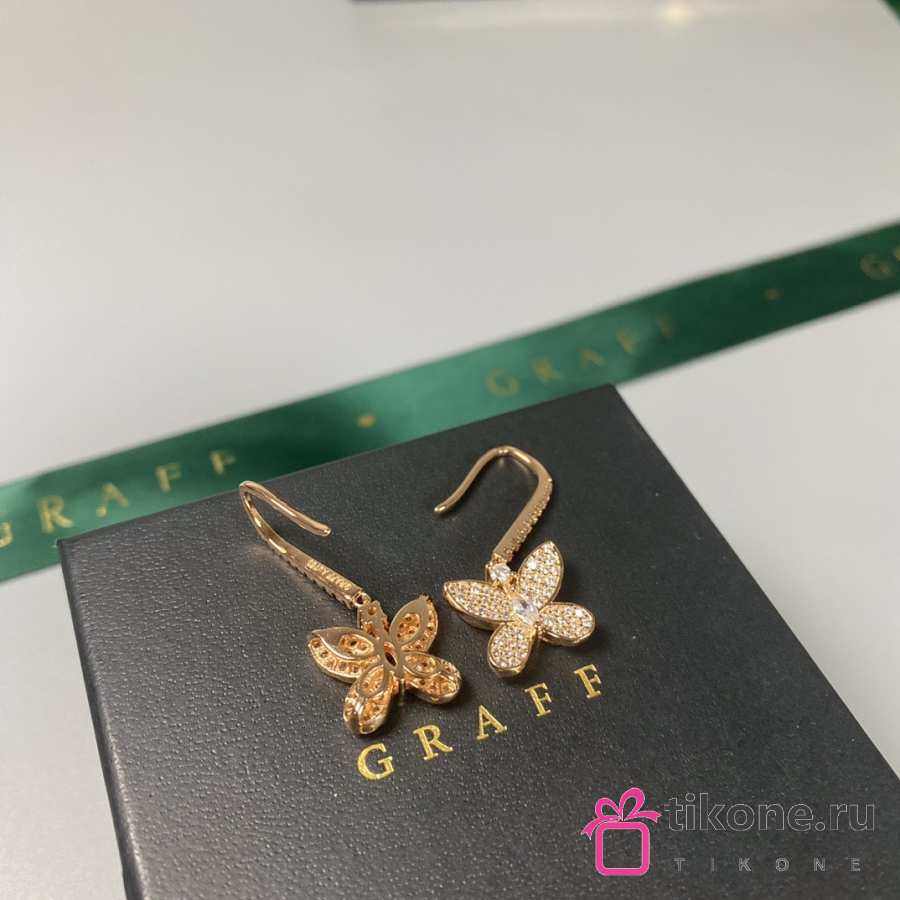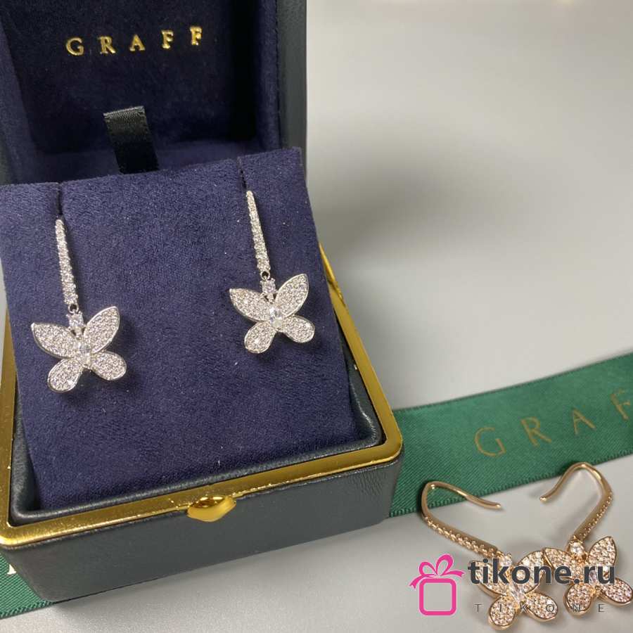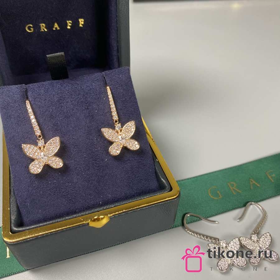 Graff Pave Butterfly Diamond Drop Earrings White/ Rose Gold