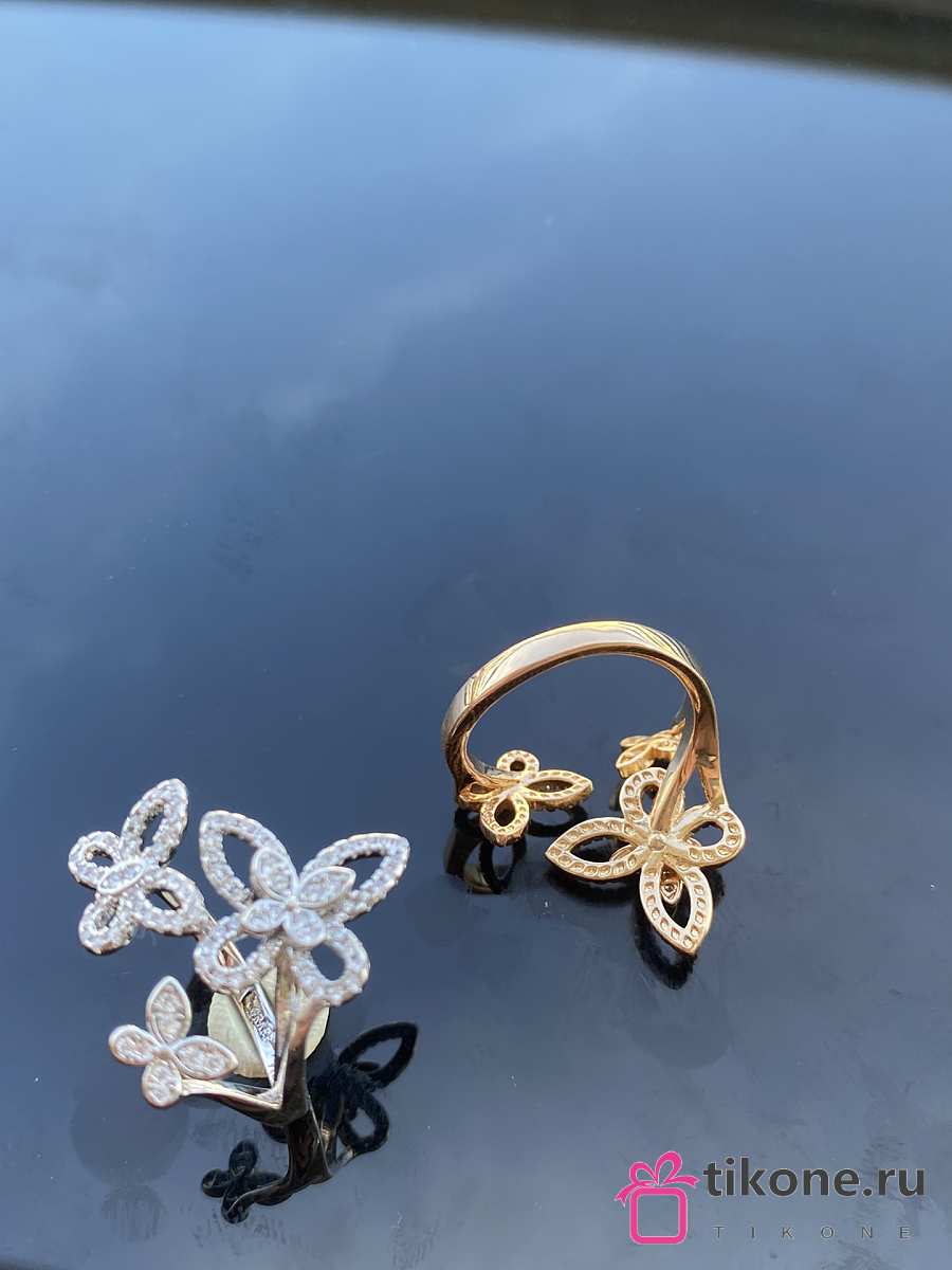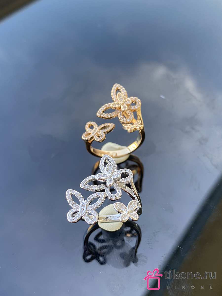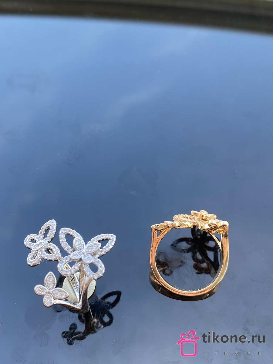 Graff Triple Butterfly Silhouette Diamond Ring White/ Rose Gold