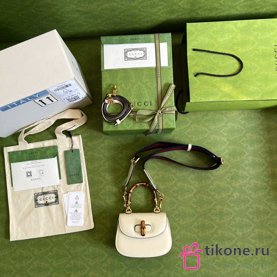 Gucci Bamboo 1947 Mini Bag White Leather - 17x12x7.5cm