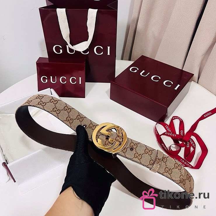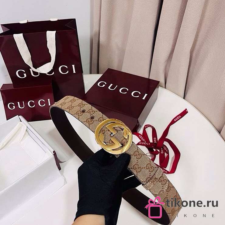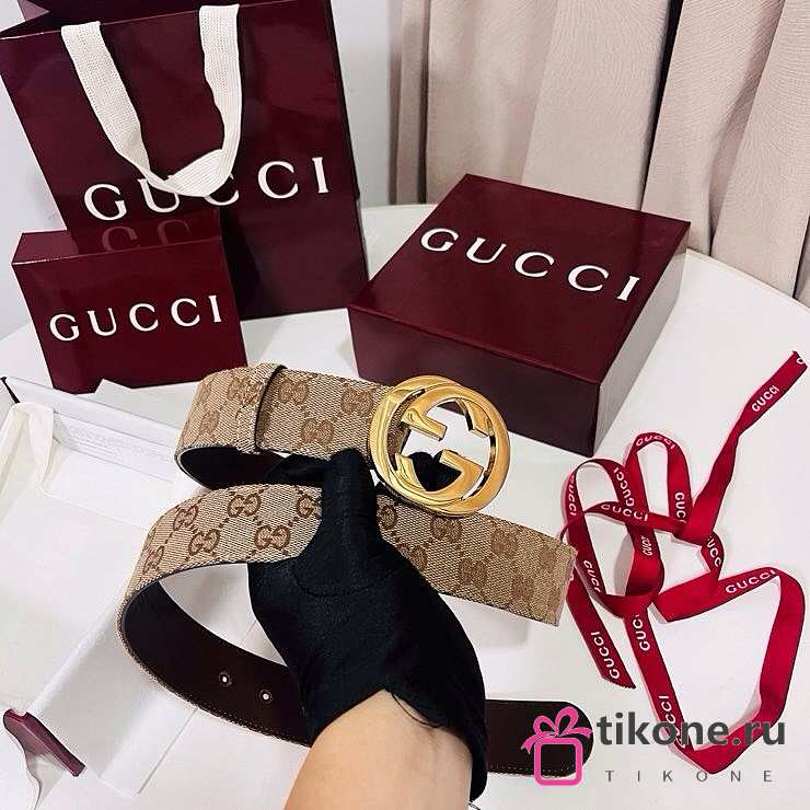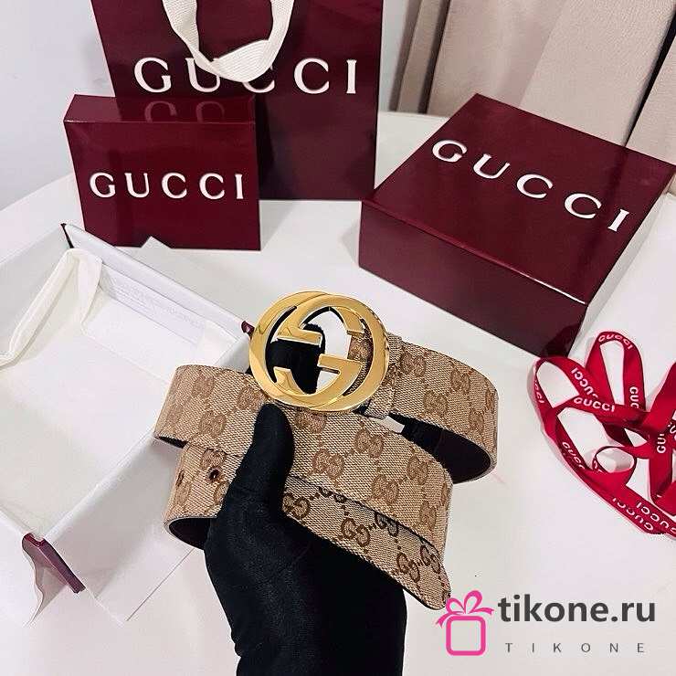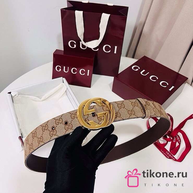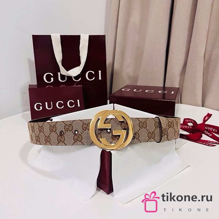 Gucci Belt with Interlocking G Buckle Beige GG Canvas 3.8cm