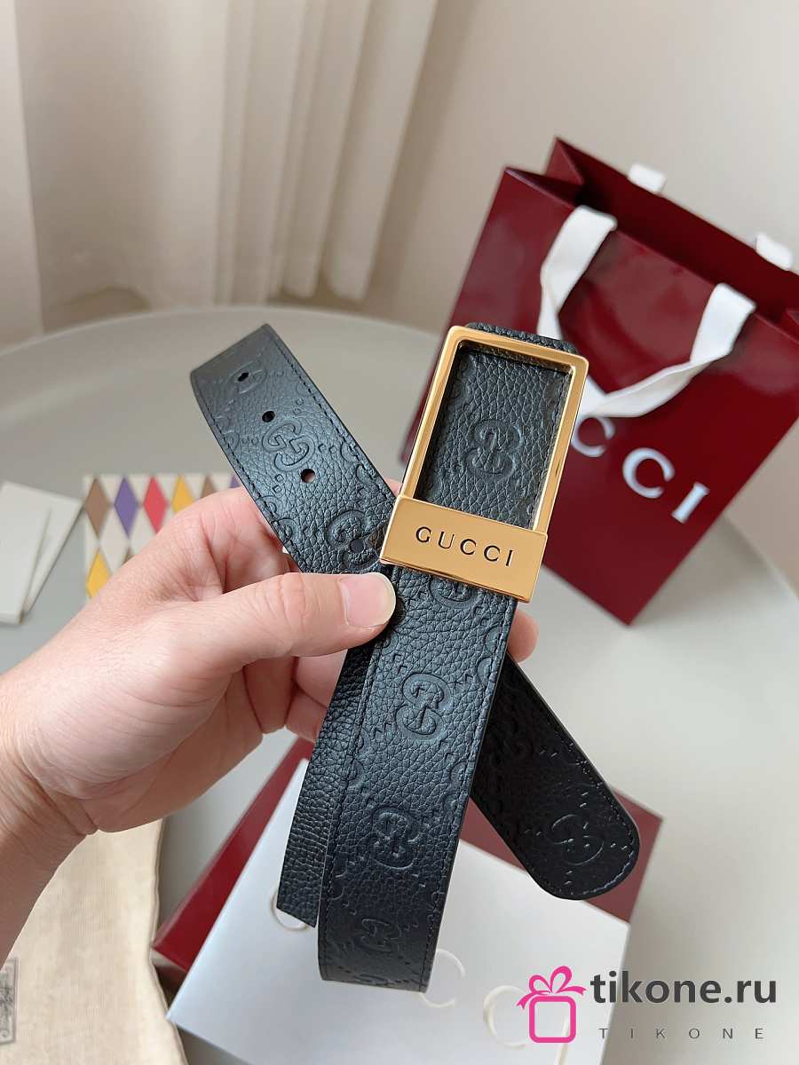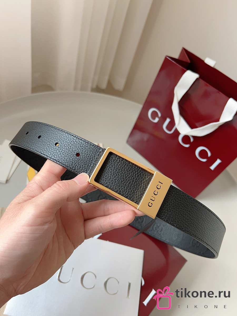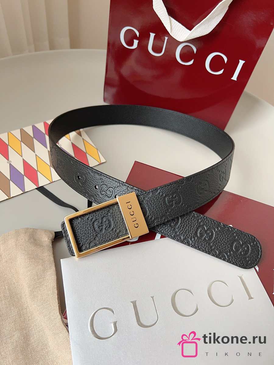 Gucci GG Belt With Rectangular Buckle Black Gold 3.5cm