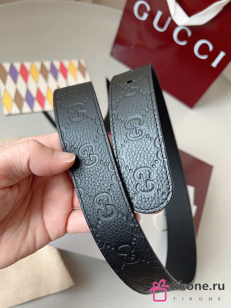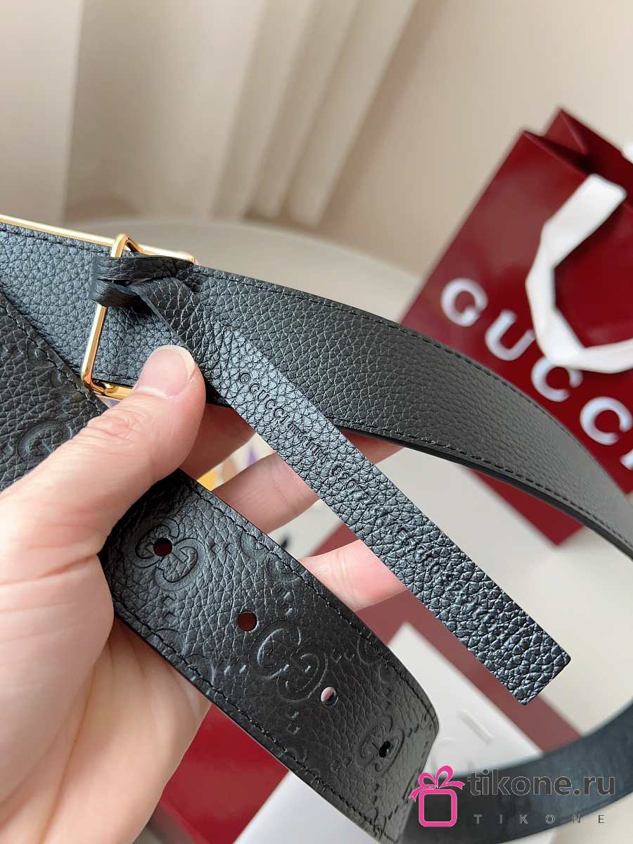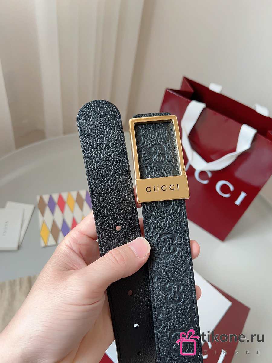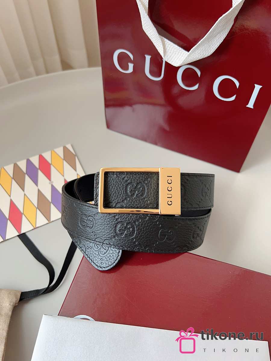 Gucci GG Belt With Rectangular Buckle Black Gold 3.5cm